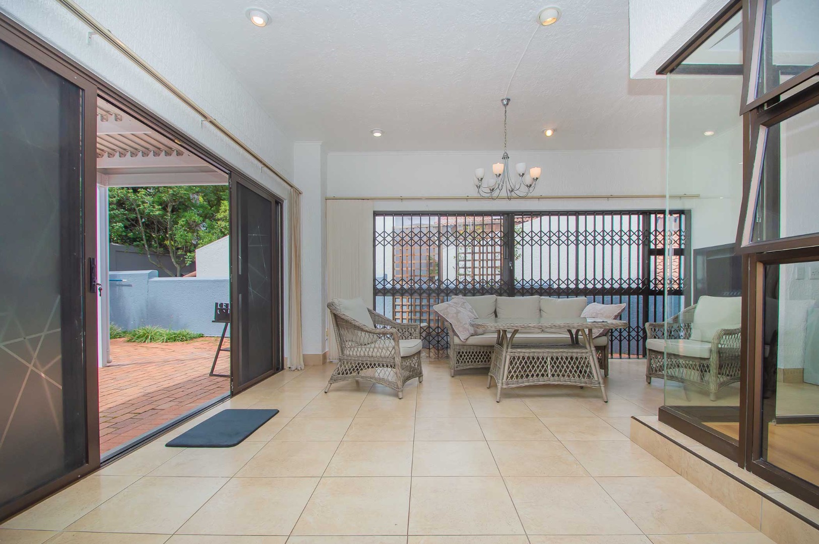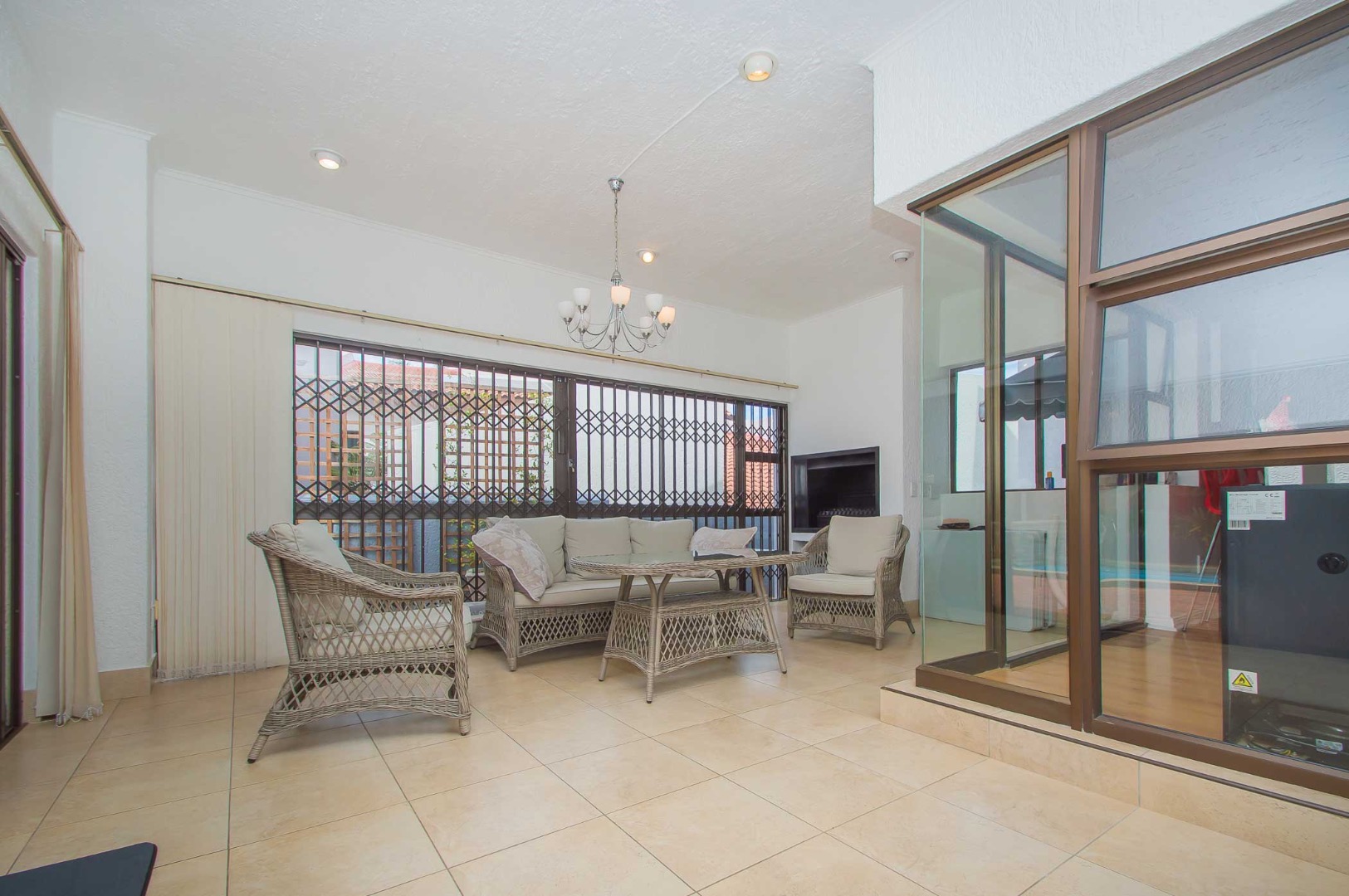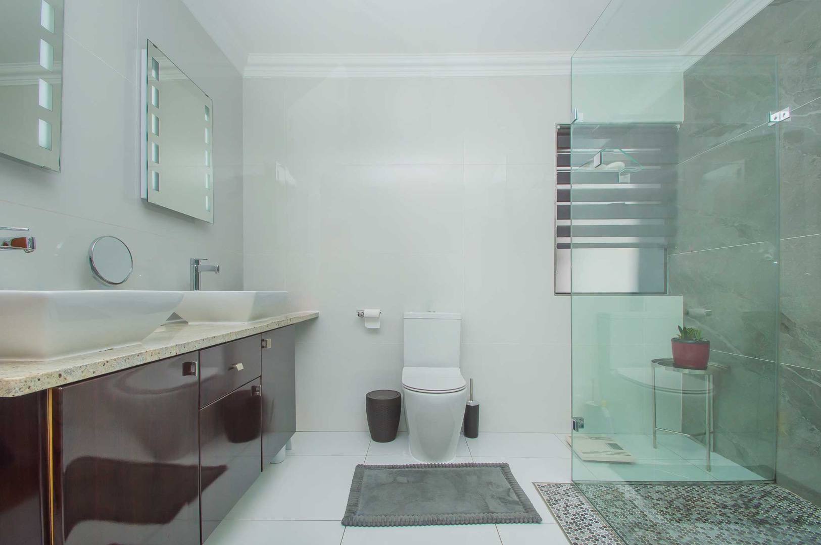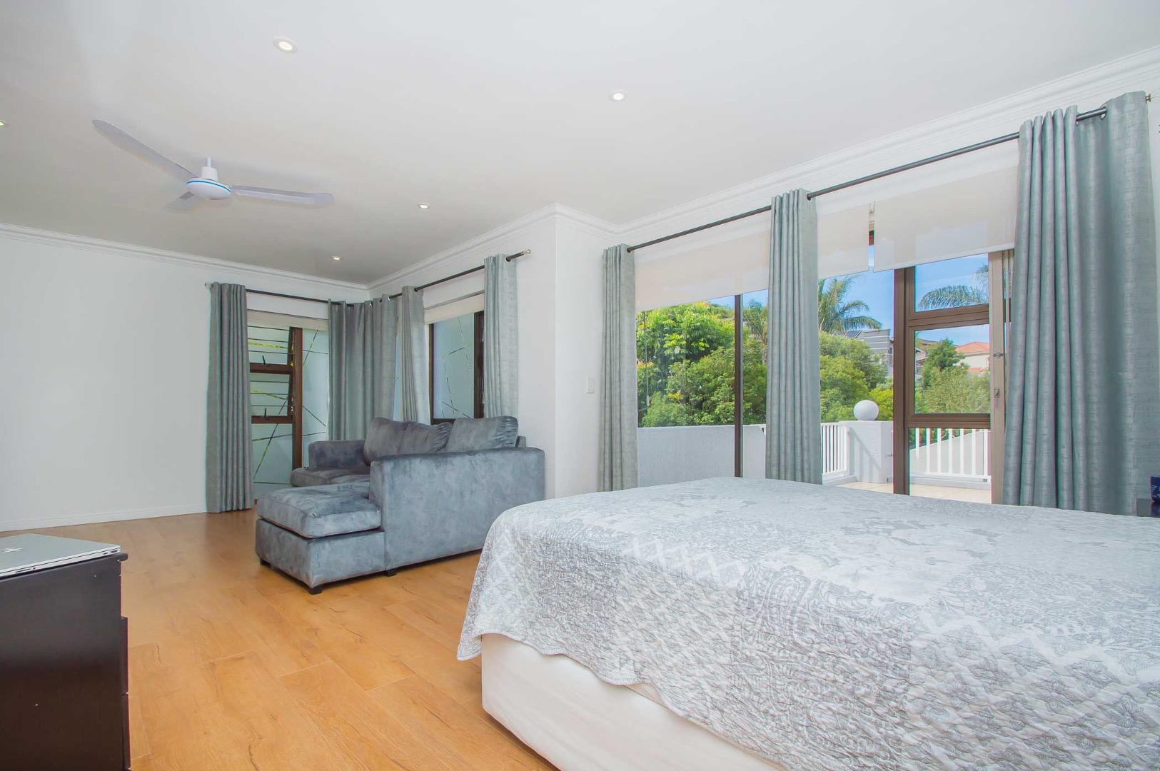 4 large, modern bedrooms, each featuring downlighting, contemporary cornices and trim, and built-in cupboards (main features walk-in closet). Upstairs, the double-volume retreat awaits complete with a pajama lounge, space for a king-sized bed, and access to a secluded balcony fitted with a retractable awning offering stunning views.