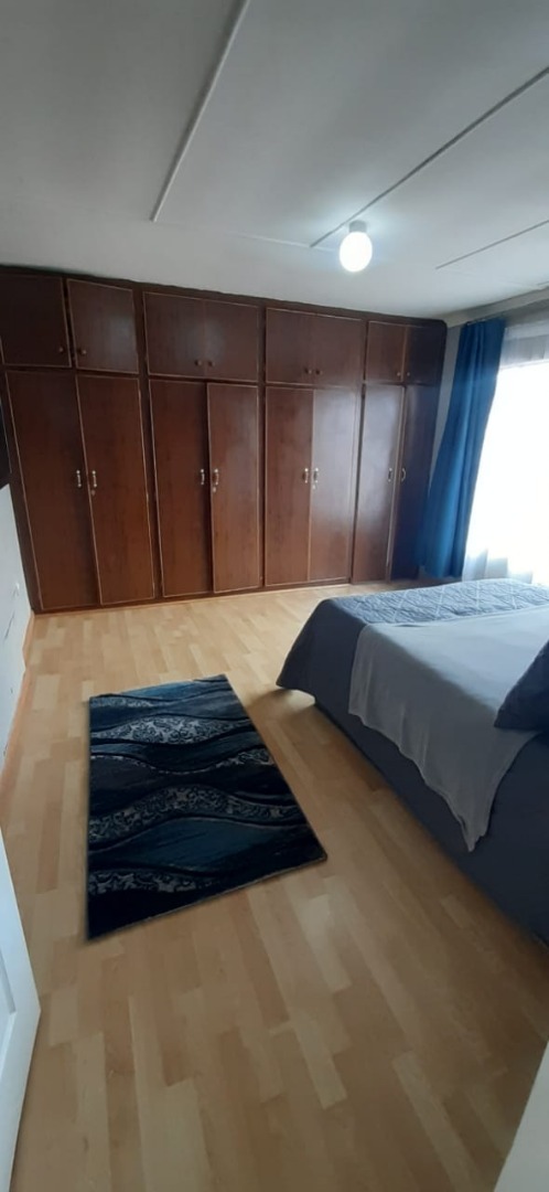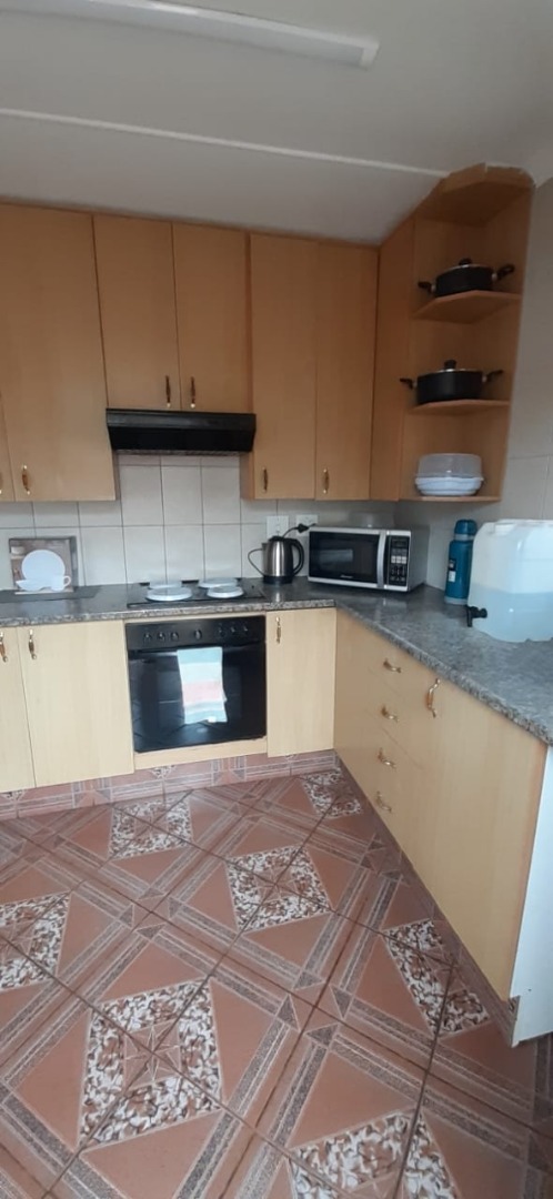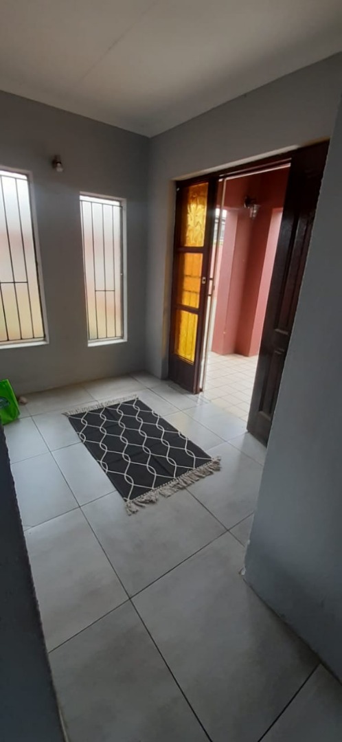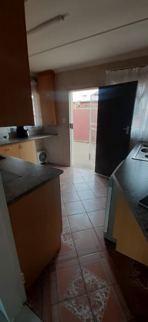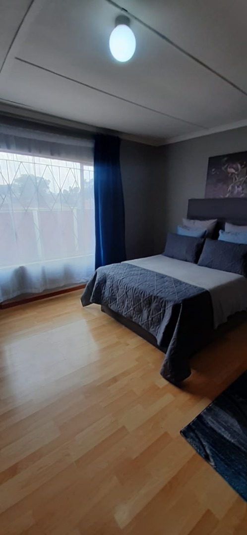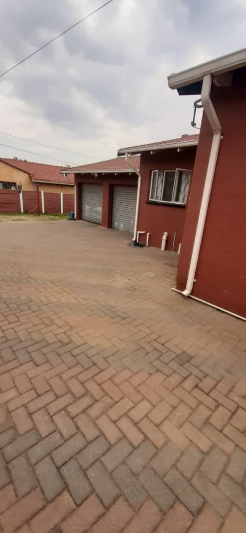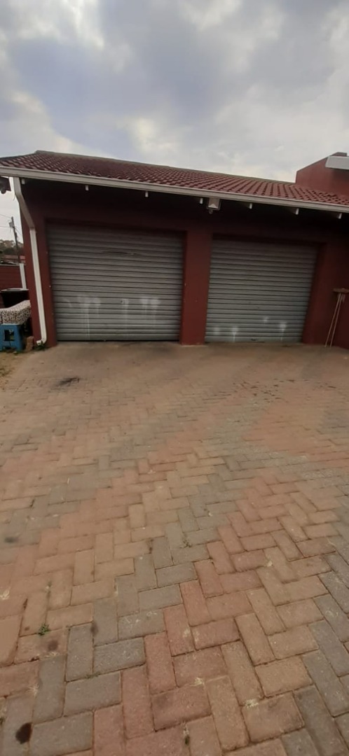 Outdoor living is well catered for with a private patio, ideal for relaxation. The property boasts a double garage with roll-up doors and an expansive paved driveway, providing ample secure parking for up to six vehicles. While the garden offers a canvas for your landscaping vision, it provides a green space for pets, as the property is pet-friendly. Security is a priority, with an access gate, security gate, and burglar bars on windows.