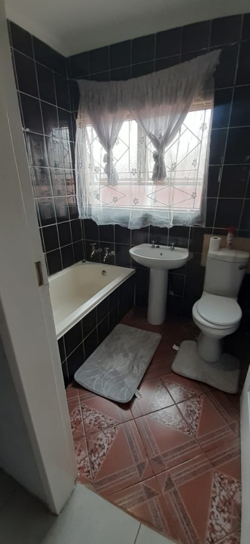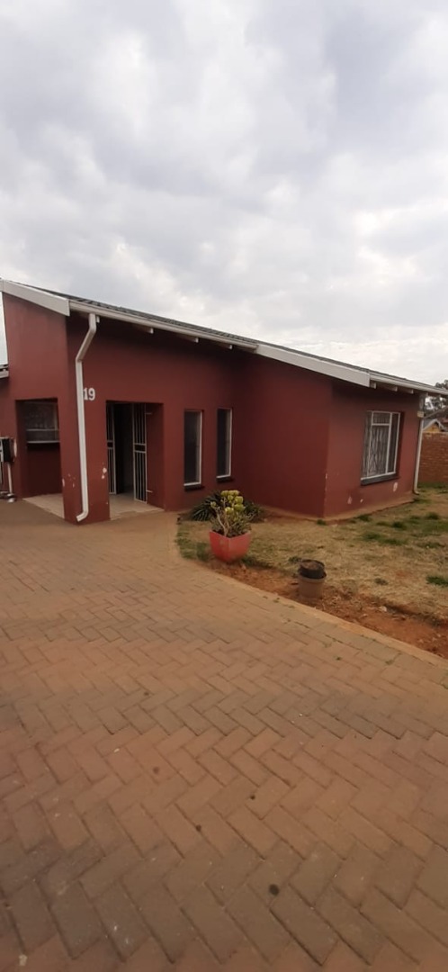 Discover this inviting 3-bedroom, 2-bathroom family home located in the suburban heart of Davidsonville, Roodepoort. Presenting a distinctive reddish-brown facade and a modern slanted roofline, this property offers immediate kerb appeal. The well-maintained paved driveway, featuring interlocking bricks, leads to a secure entrance with a security gate and visible house number 19, ensuring a welcoming first impression.