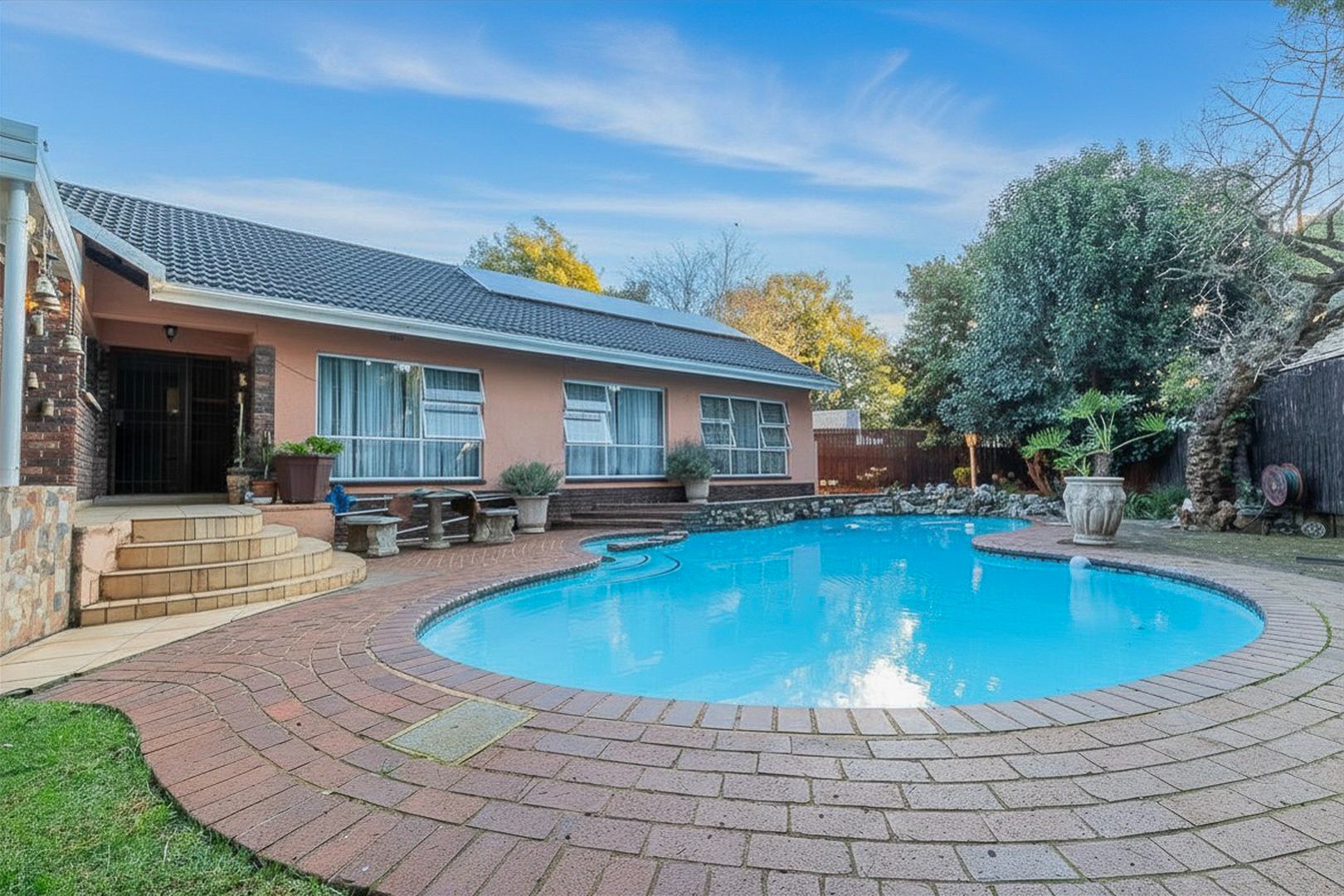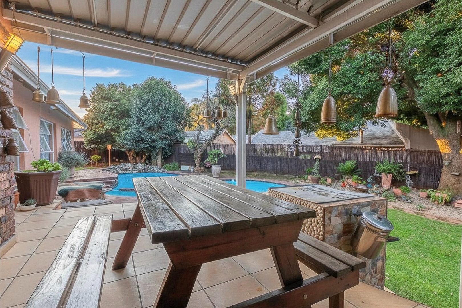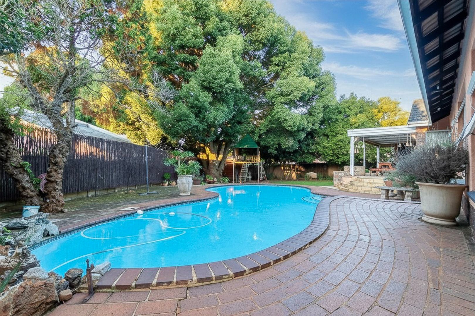 Outside, the property truly shines with a private sparkling blue swimming pool, ideal for cooling off during warmer months, and a built-in braai area for social gatherings. The established garden is fully fenced and totally walled, ensuring privacy and security. Additional practical features include domestic room with outside toilet and a Wendy house for extra storage. The property benefits from a borehole, solar panels, and a battery inverter, promoting energy efficiency and self-sufficiency. Security is enhanced with an alarm system, electric fencing, and CCTV. A double automated garage and additional parking space are provided. Fibre connectivity is also available.