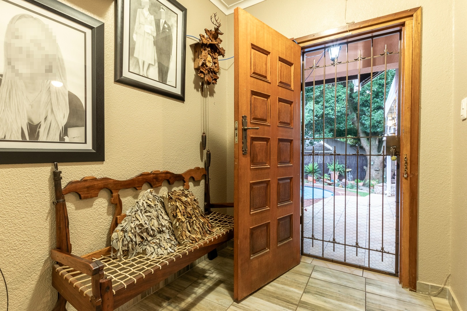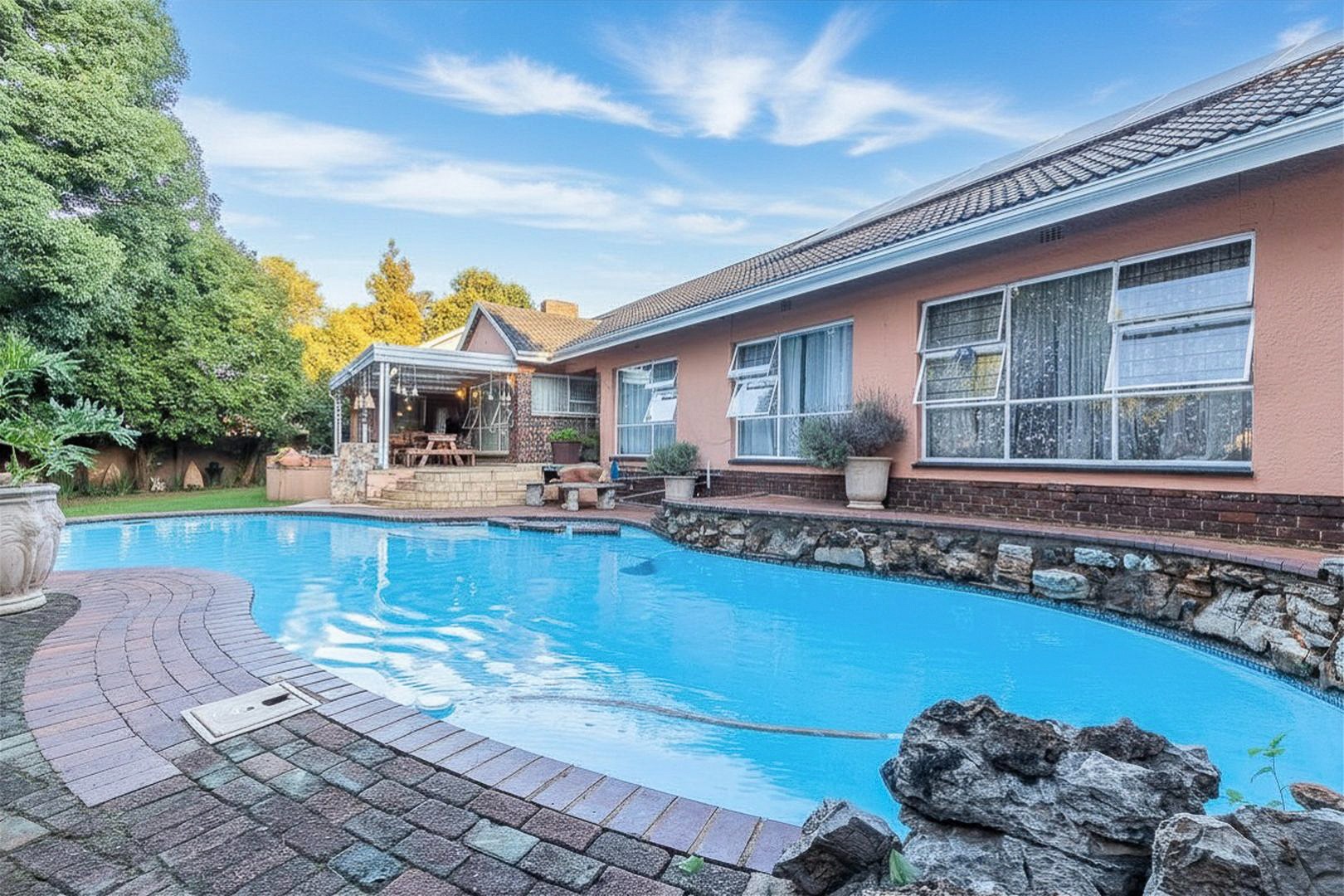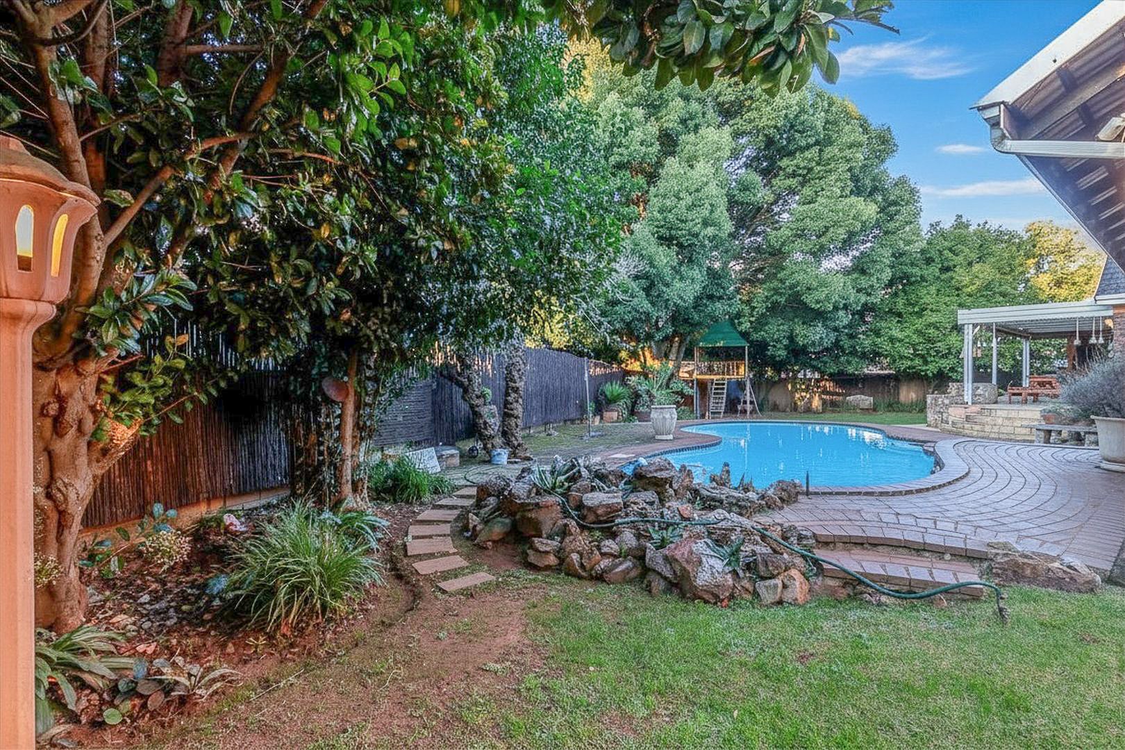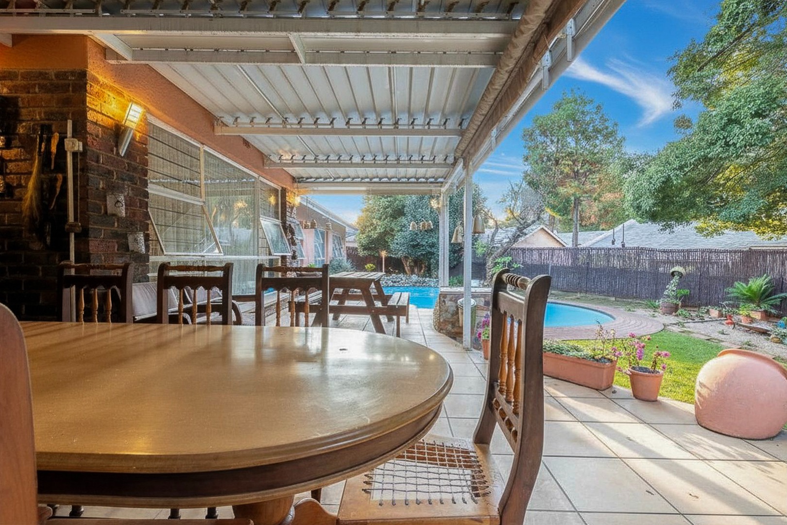 Outside, the property truly shines with a private sparkling blue swimming pool, ideal for cooling off during warmer months, and a built-in braai area for social gatherings. The established garden is fully fenced and totally walled, ensuring privacy and security. Additional practical features include domestic room with outside toilet and a Wendy house for extra storage. The property benefits from a borehole, solar panels, and a battery inverter, promoting energy efficiency and self-sufficiency. Security is enhanced with an alarm system, electric fencing, and CCTV. A double automated garage and additional parking space are provided. Fibre connectivity is also available.