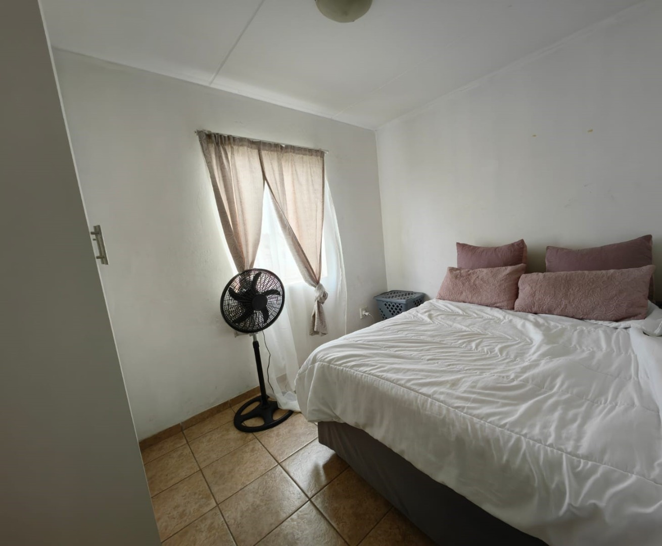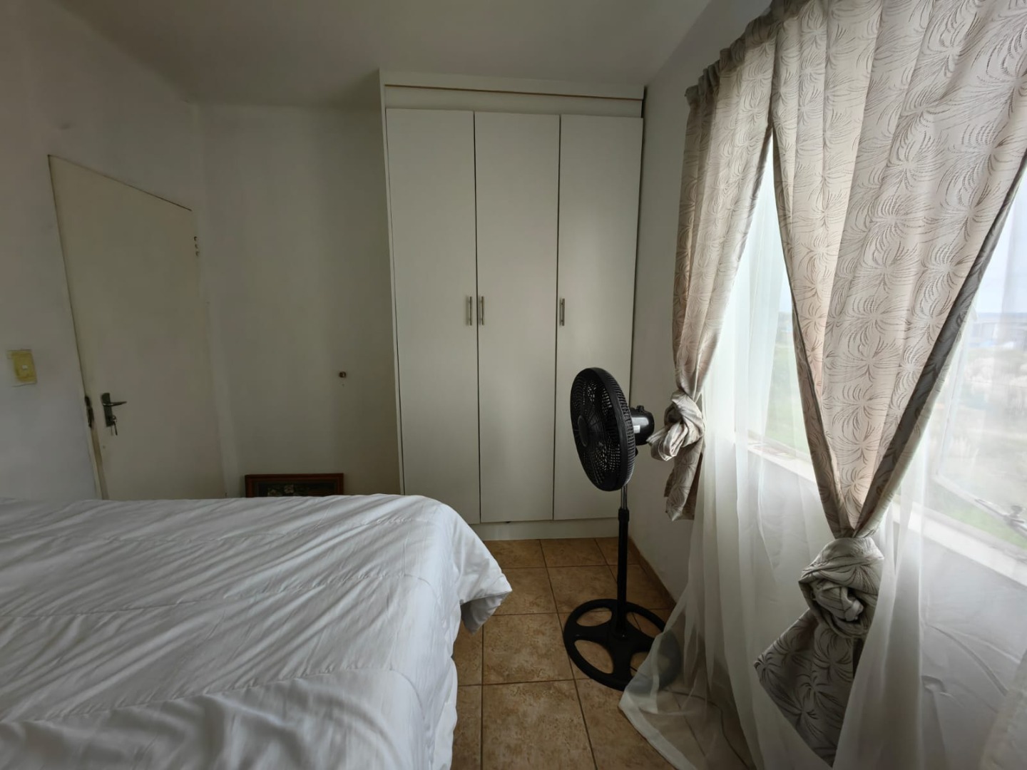 There are two bedrooms, the bigger one with built in cupboards. The bedrooms are cozy and can accommodate a