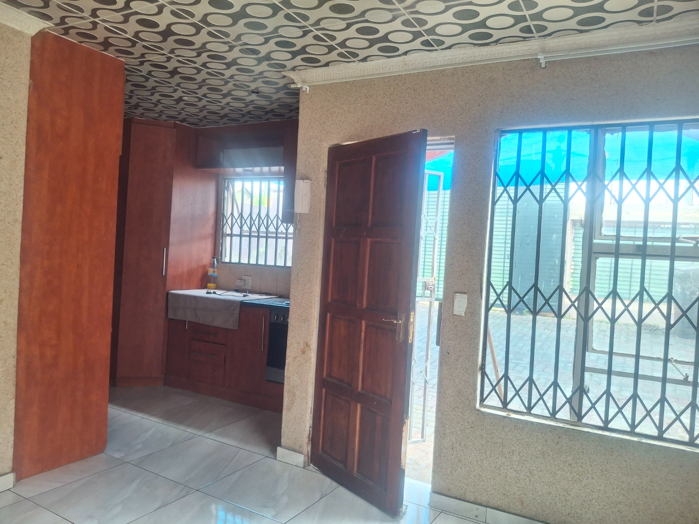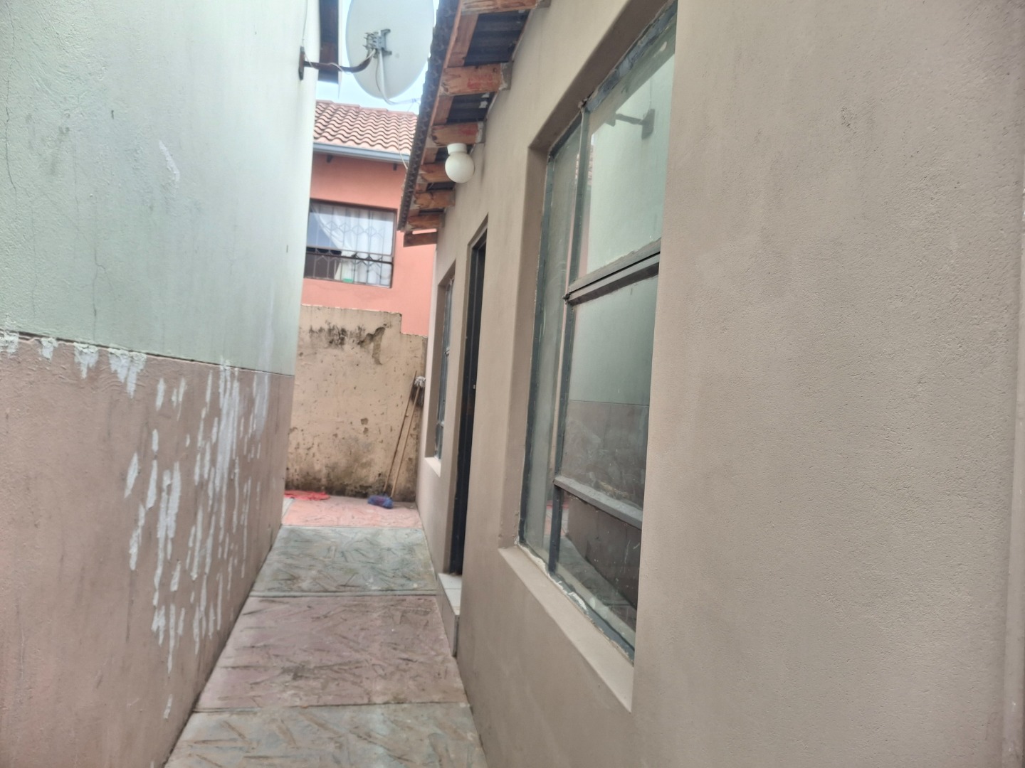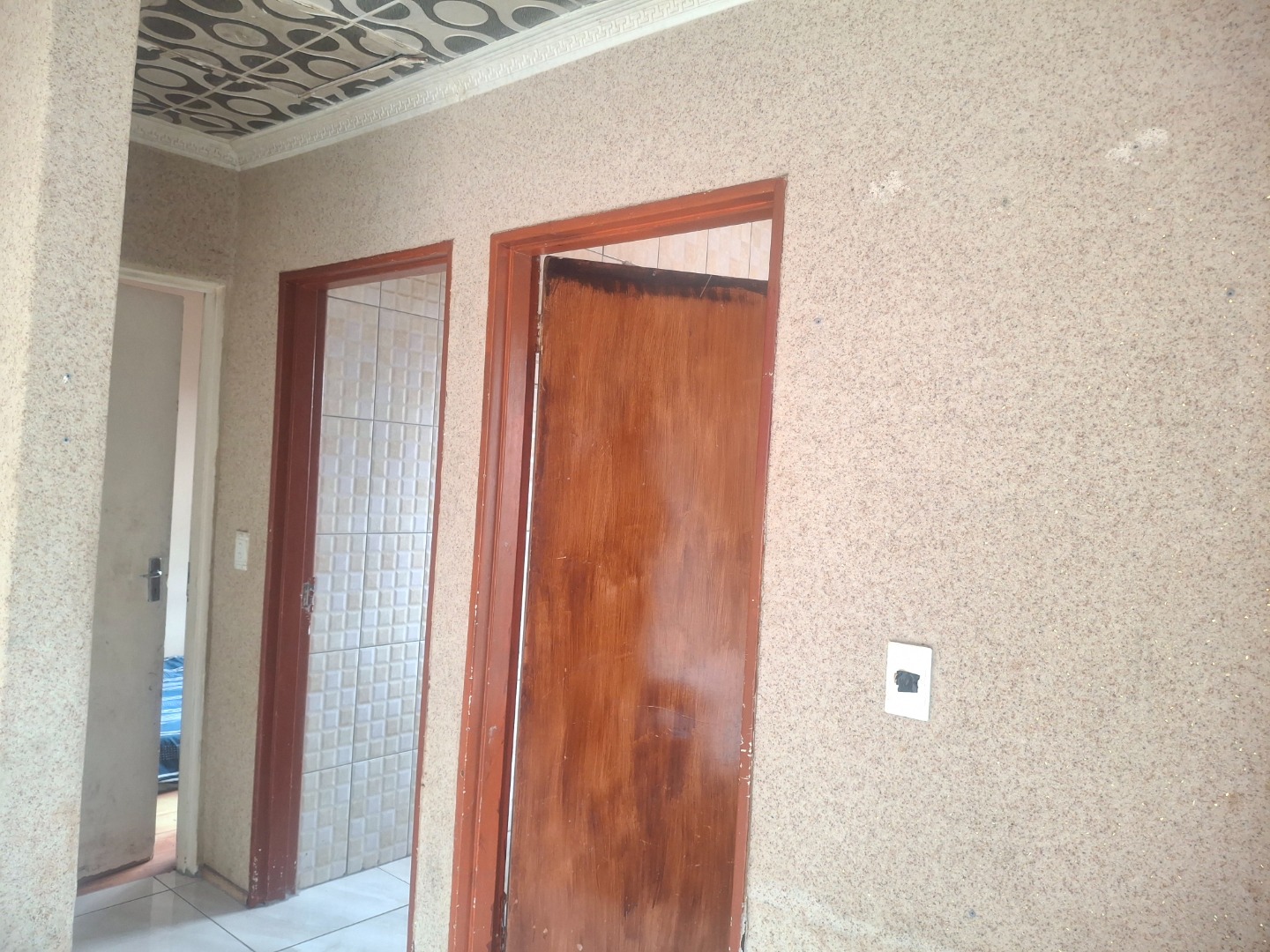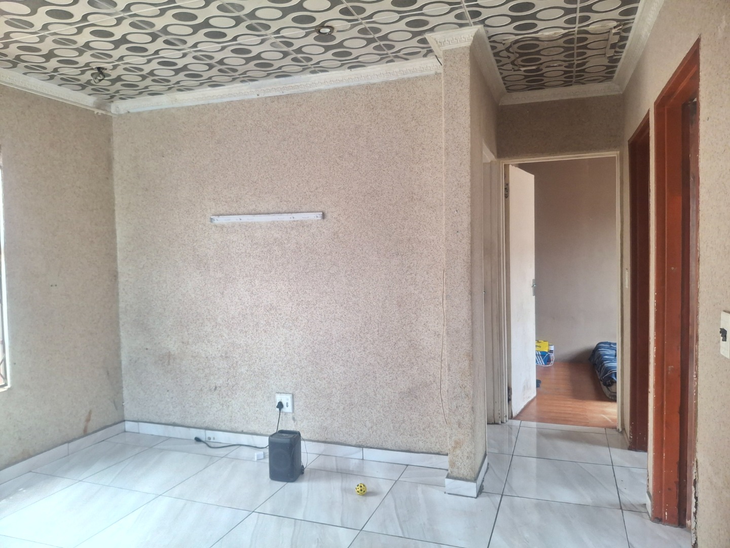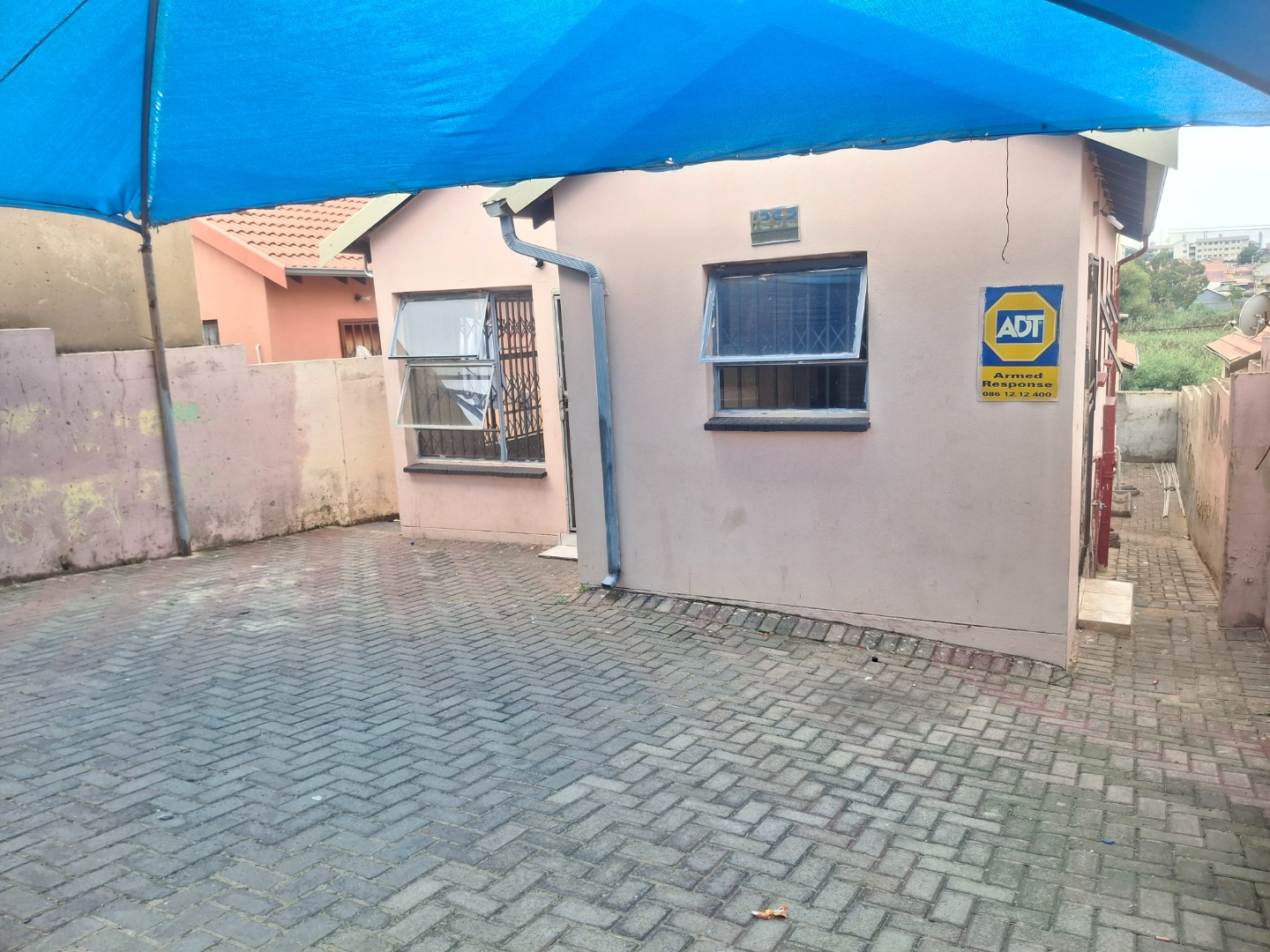 This property in Fleurhof, Roodepoort, offers a practical and secure living environment, ideal for those seeking a well-located suburban home. The exterior features a paved forecourt, providing convenient parking for one vehicle, partially covered by an overhead shade net. Security is a key focus, with a large main gate, solid perimeter walls, and additional security gates and burglar bars on windows, further enhanced by an ADT armed response sign for peace of mind.