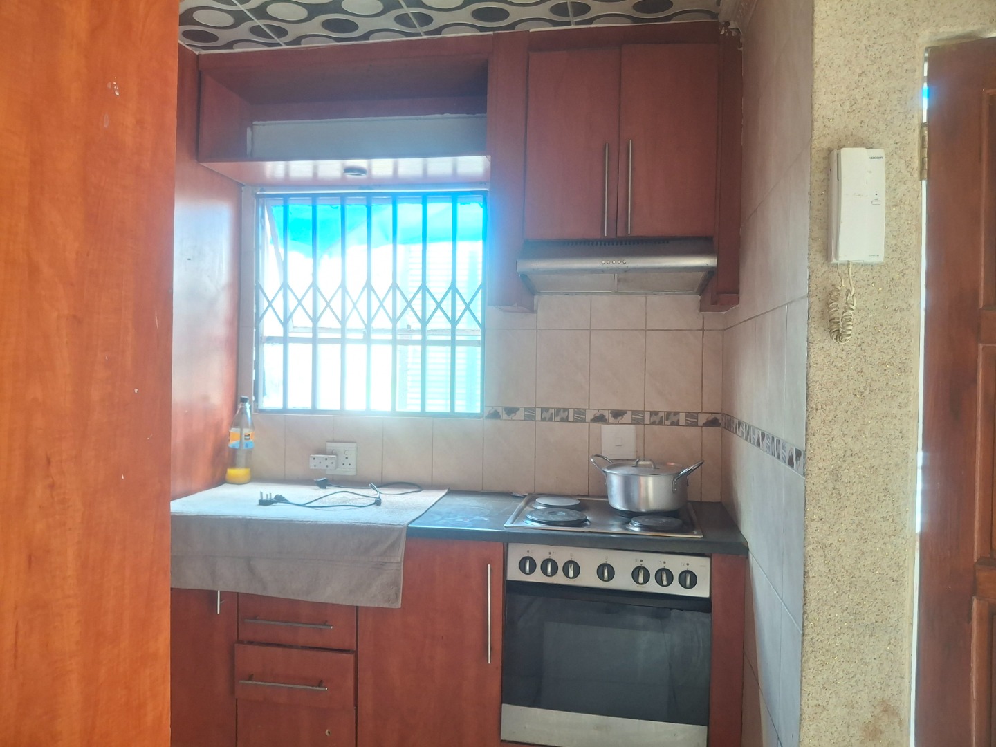 Inside, the residence comprises two comfortable bedrooms and a single bathroom, catering to essential living needs. The layout includes a dedicated lounge area and a functional kitchen, both benefiting from durable tiled flooring throughout. While some interior finishes, such as textured walls and patterned ceilings, reflect a classic style, they offer a solid foundation for future personalization.