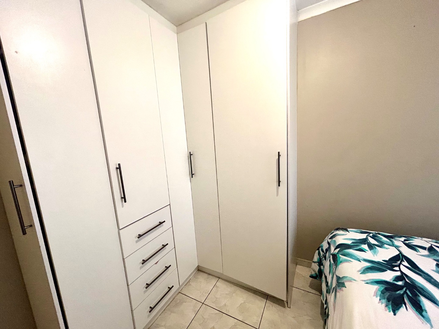 The two bedrooms boast with modern cupboards and is neatly tiled with a bathroom that consist of a bath, toilet and basin.