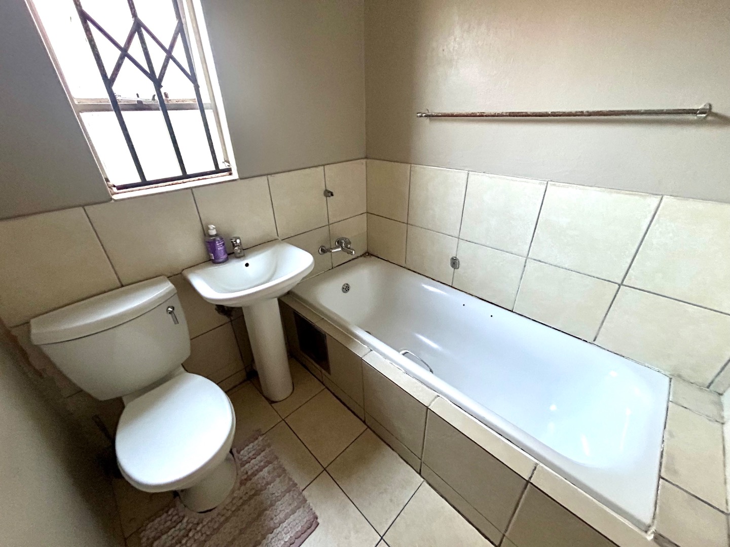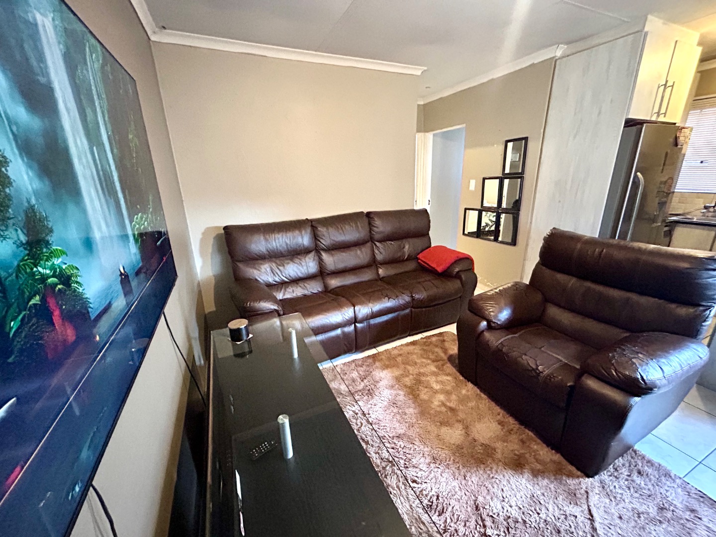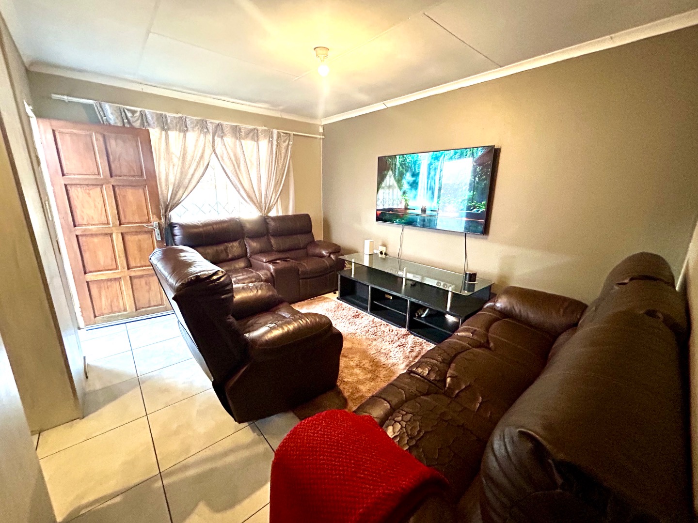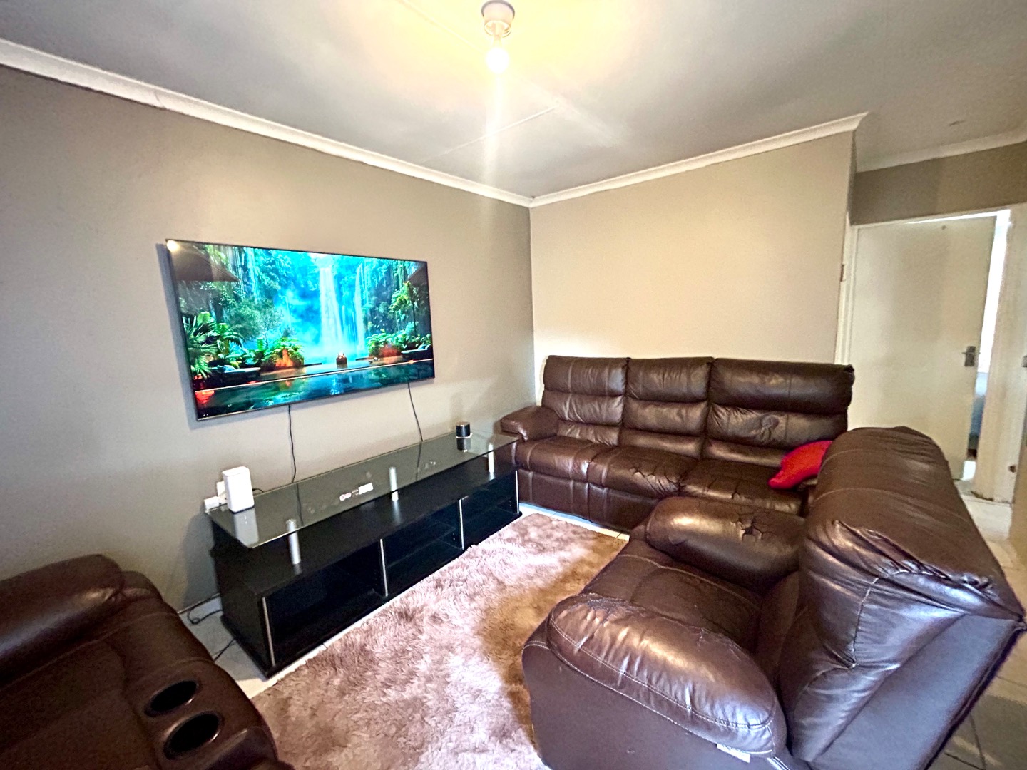 The lounge is welcoming and spacious and the whole house is secured with trellis burglar bars.