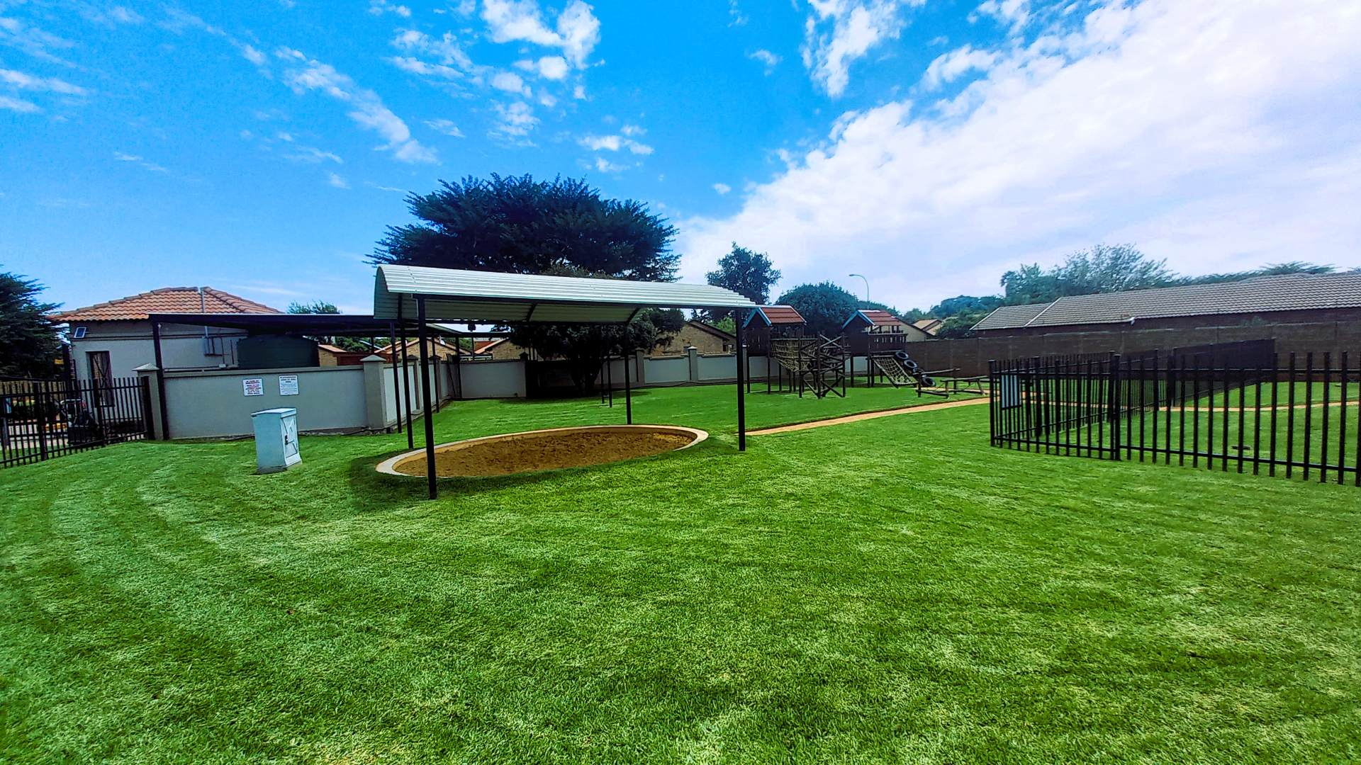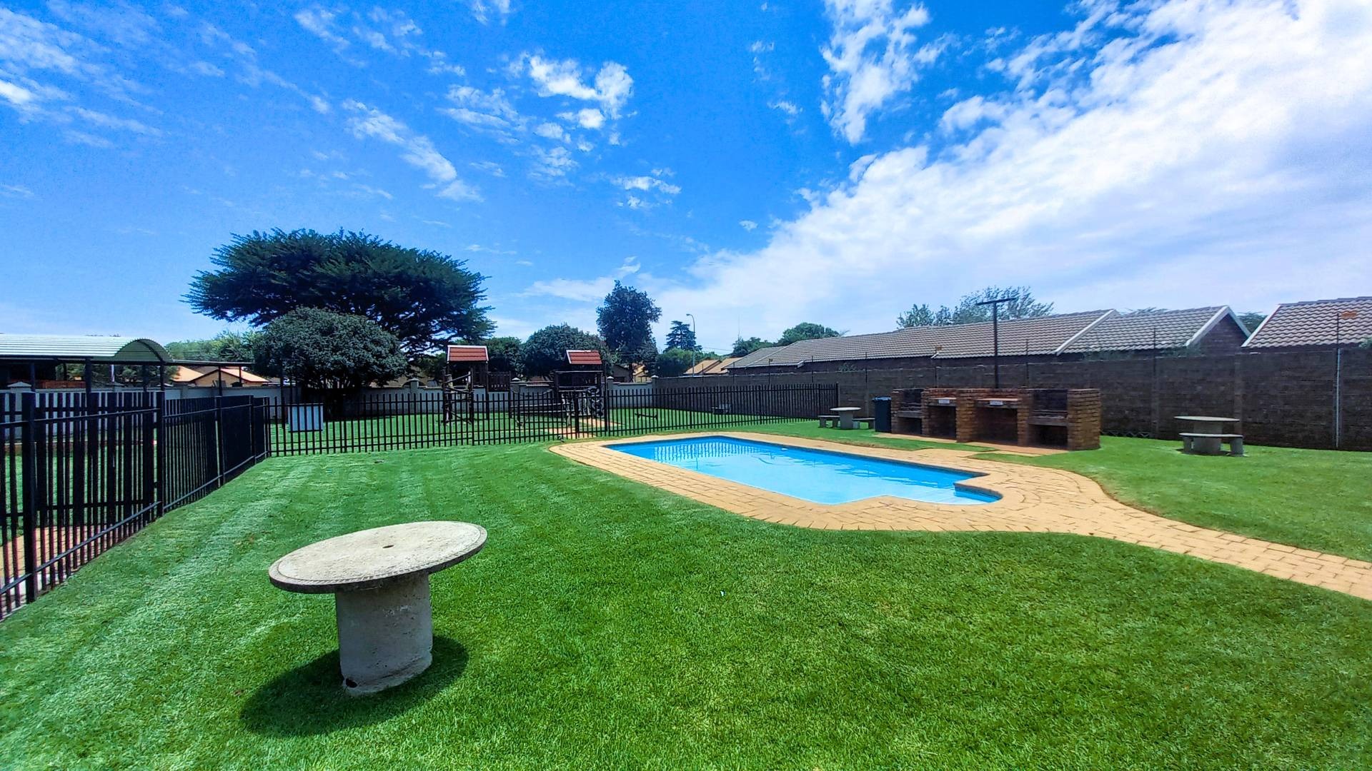Residents can enjoy a range of communal facilities, including a sparkling pool, a dedicated children's playground with jungle gyms and a covered sandpit, an entertainment boma, various braai areas, and a clubhouse—perfect for social gatherings and relaxation.