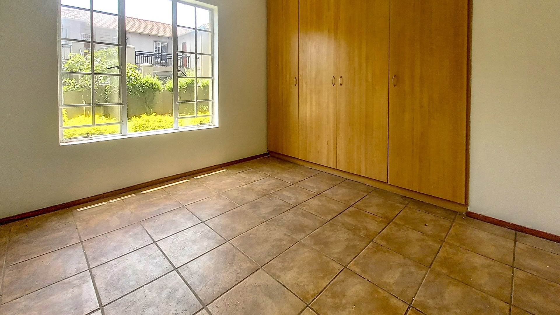 The unit comprises three tiled bedrooms with built-in cupboards, serviced by two modern bathrooms. The main en-suite offers a shower, basin and toilet, while the family bathroom includes a bath, basin and toilet.