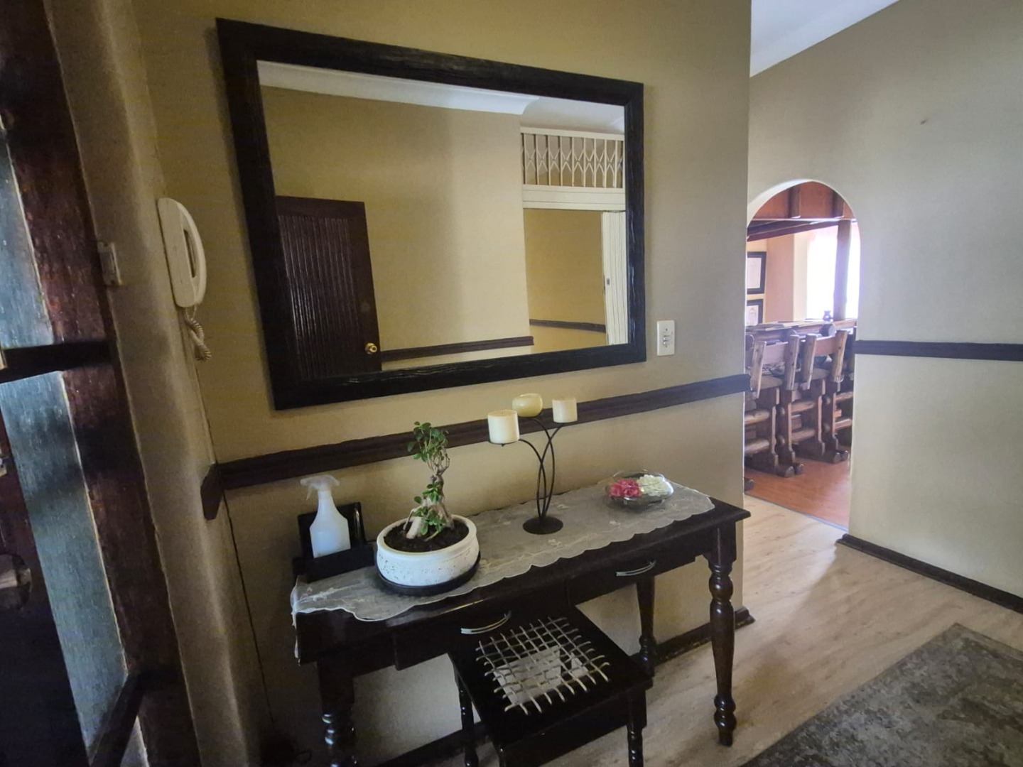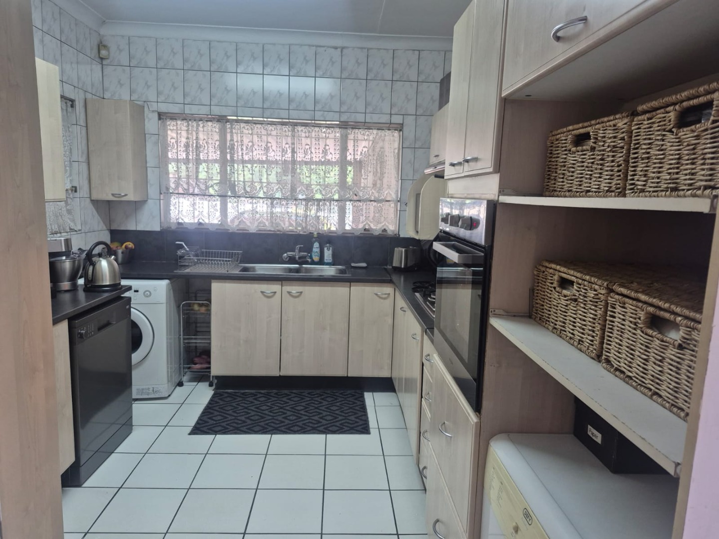 Discover this inviting 4-bedroom, 3-bathroom family home situated on a generous 991 sqm erf in the established suburban area of Florida Glen, Roodepoort, South Africa. Boasting a comfortable floor size of 262 sqm, this single-story residence presents a welcoming kerb appeal with its well-maintained front lawn, paved driveway, and ample covered parking, ensuring convenience for residents and guests alike. Step inside to an entrance hall that leads into thoughtfully designed living spaces. The interior features a spacious lounge, a dedicated dining room, and a family TV room, all complemented by architectural details such as arched doorways and hardwood flooring. The main living area is further enhanced by a vaulted wood-paneled ceiling, adding character and warmth. A custom-built wooden bar with integrated shelving provides an ideal setting for entertaining. The functional kitchen is equipped with light wood-toned cabinetry, dark countertops, a built-in oven, and white tiled floors and walls, offering a practical space for culinary endeavours. The home provides four comfortable bedrooms and three bathrooms, including a guest toilet, catering to the needs of a growing family. Outdoor living is a highlight, featuring a clean swimming pool surrounded by a lush, well-maintained garden with mature landscaping and an irrigation system. A winding brick pathway leads to an outdoor seating area, perfect for relaxation. The property also includes a single garage, five additional parking spaces, domestic rooms, and water tanks for added utility. Security is prioritised with electric fencing along the boundary wall and window bars, providing peace of mind. The home is also fibre-ready, ensuring modern connectivity. Florida Glen is a well-regarded suburban neighbourhood in Roodepoort, known for its family-friendly environment and convenient access to local amenities. Key Features: * 4 Bedrooms, 3 Bathrooms * Spacious Lounge, Dining Room & Family TV Room * Custom-Built Wooden Bar * Private Swimming Pool & Lush Garden * Single Garage & 5 Parking Spaces * Electric Fencing & Security Features * Fibre-Ready Connectivity * Domestic Rooms & Water Tanks * 991 sqm Erf, 262 sqm Floor Size * Paved Driveway & Irrigation System