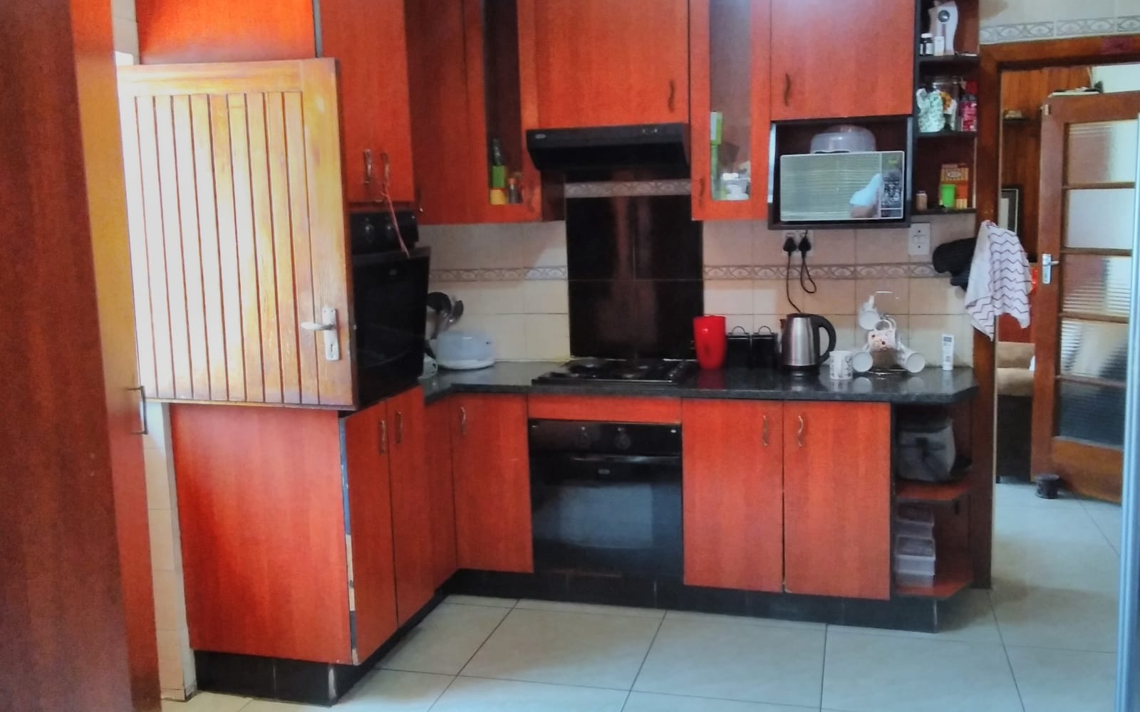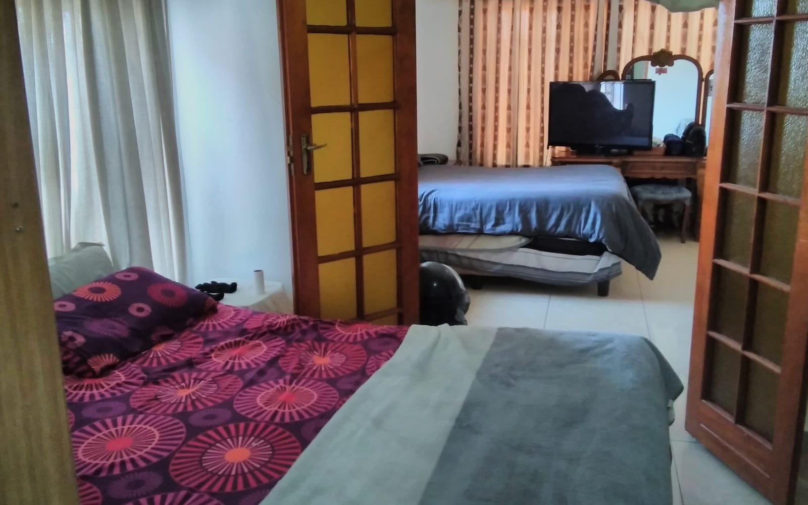 The main bedroom boasts double-volume ceilings, built-in cupboards, and an en-suite bathroom. The second bedroom is well-sized with built-in cupboards, while the third double-volume bedroom provides enough space for a study or home office — ideal for those working remotely.