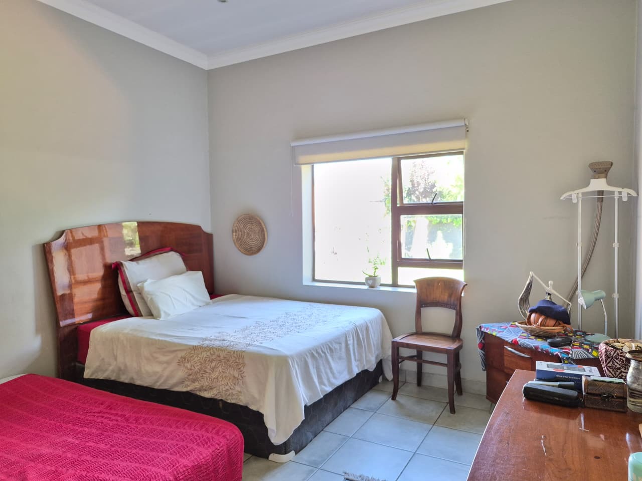 This home features a spacious cottage with 2 bedrooms with tiled flooring and built in wardrobes ,a bathroom with a basin ,toilet and a shower , a kitchen with built in cupboards and a dining area overlooking a pet friendly garden .