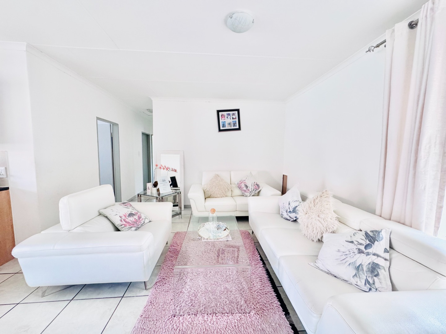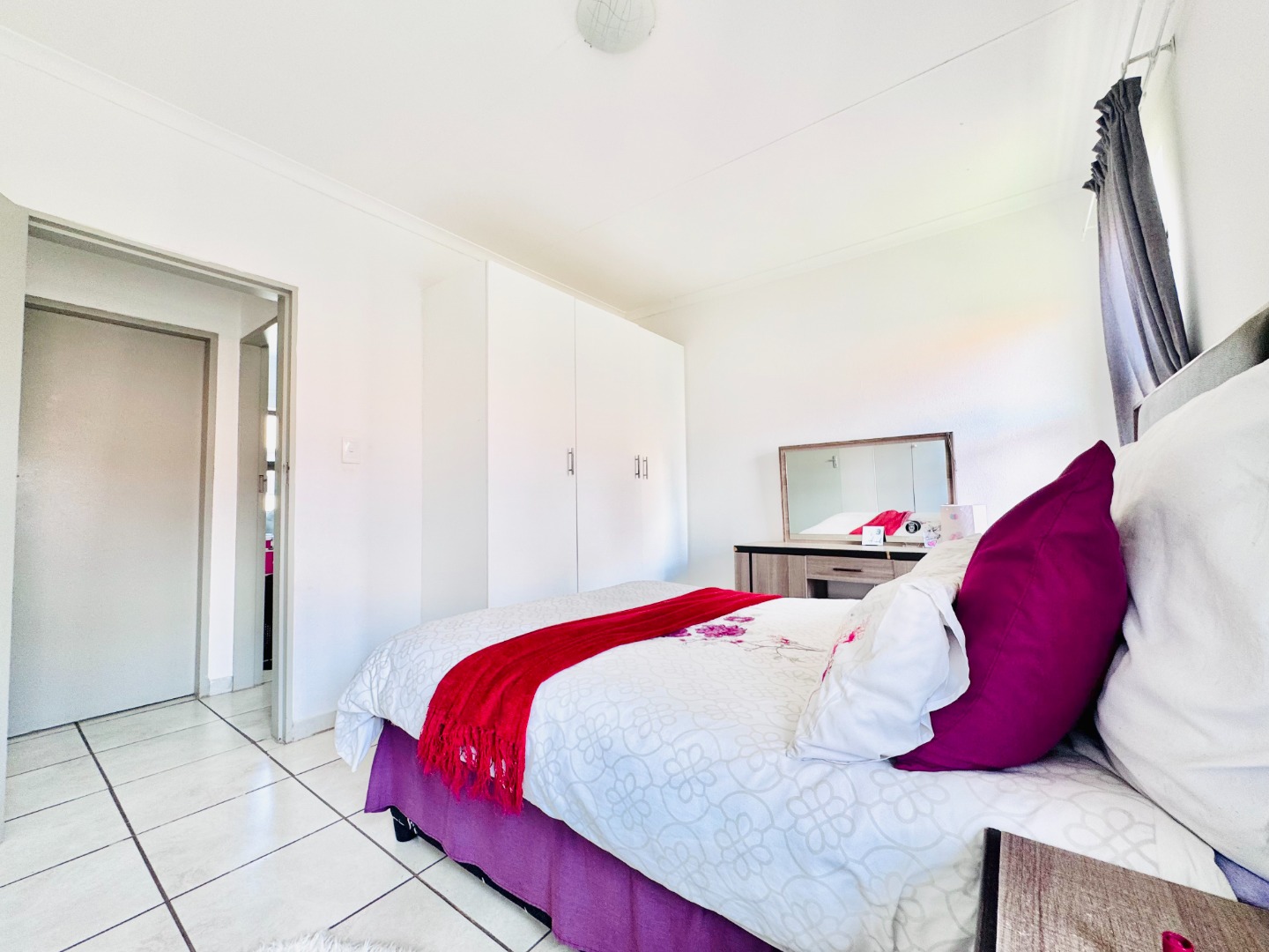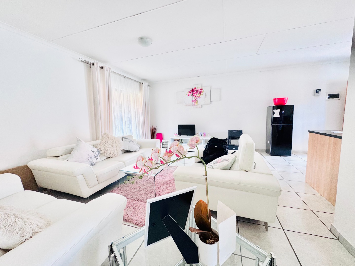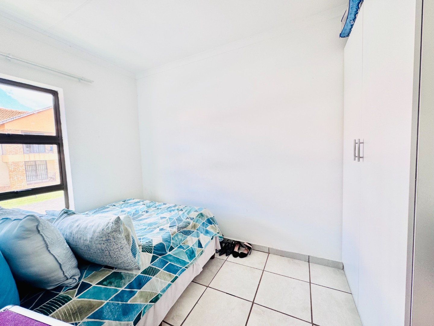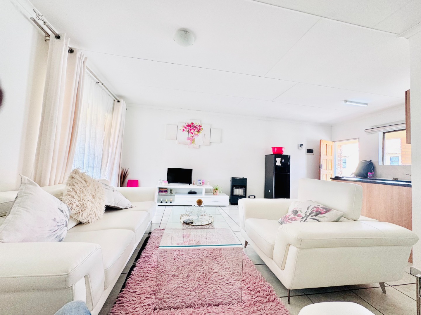 Discover this modern 3-bedroom, 2-bathroom apartment located in a secure complex in Groblerpark, Roodepoort. Spanning 79.00 sqm, this residence offers a bright and inviting open-plan living experience. The lounge area, characterized by clean white tiled flooring and freshly painted white walls, benefits from abundant natural light streaming through large windows and sliding door that lead to a private balcony, perfect for relaxation.
