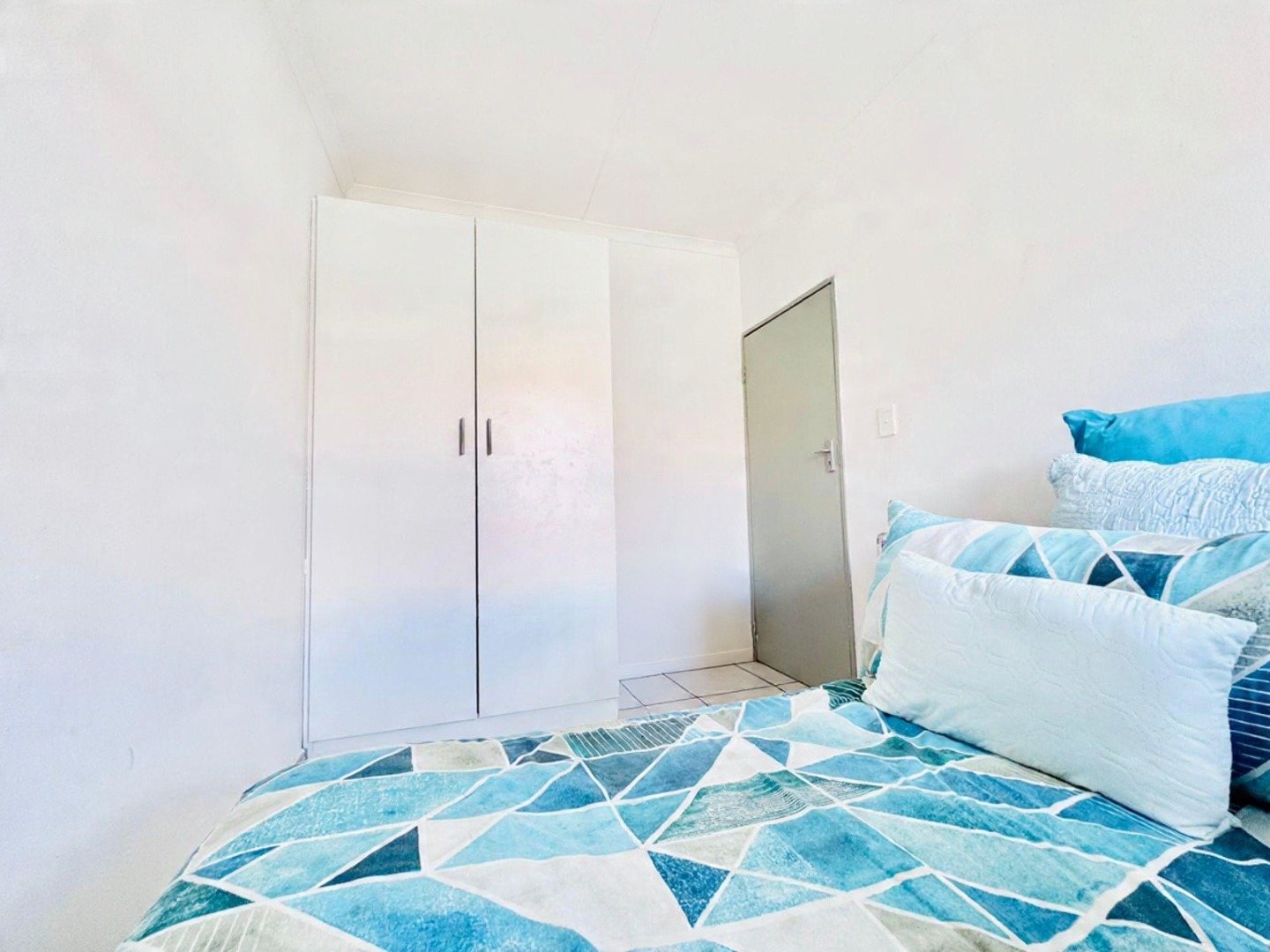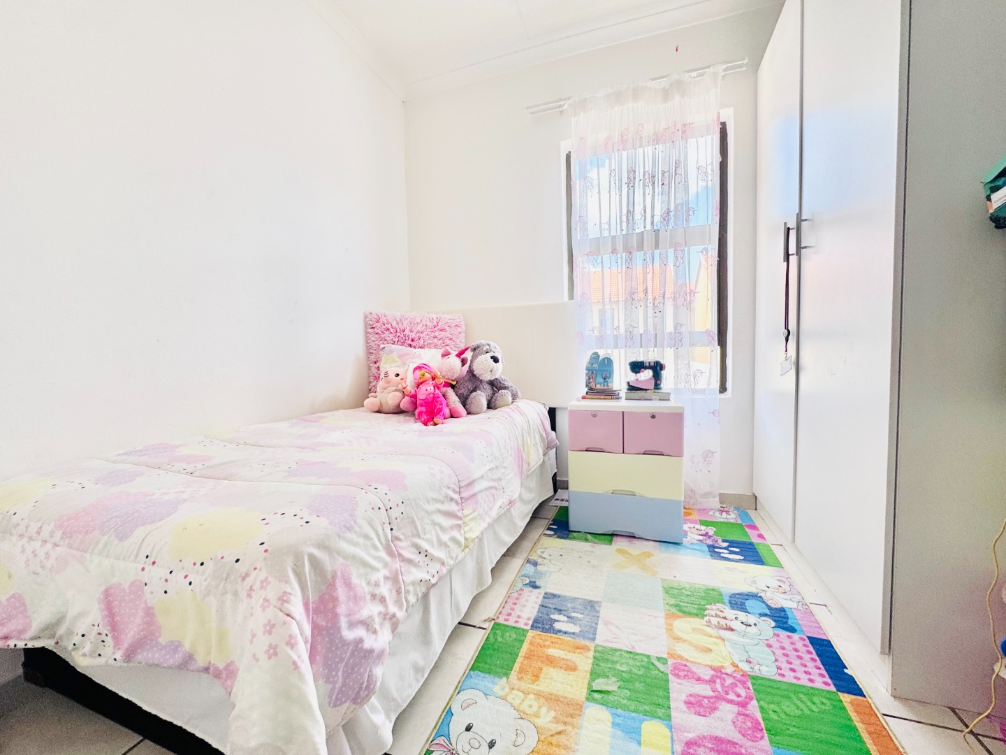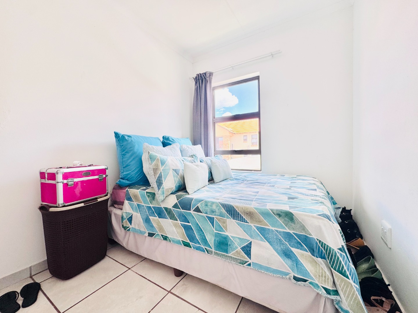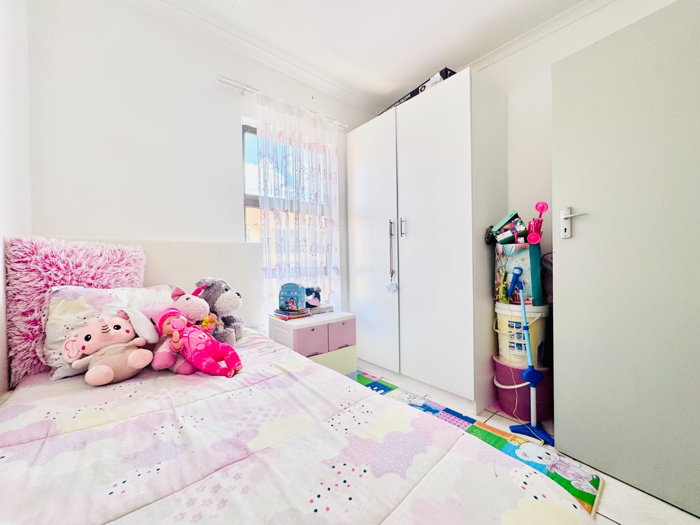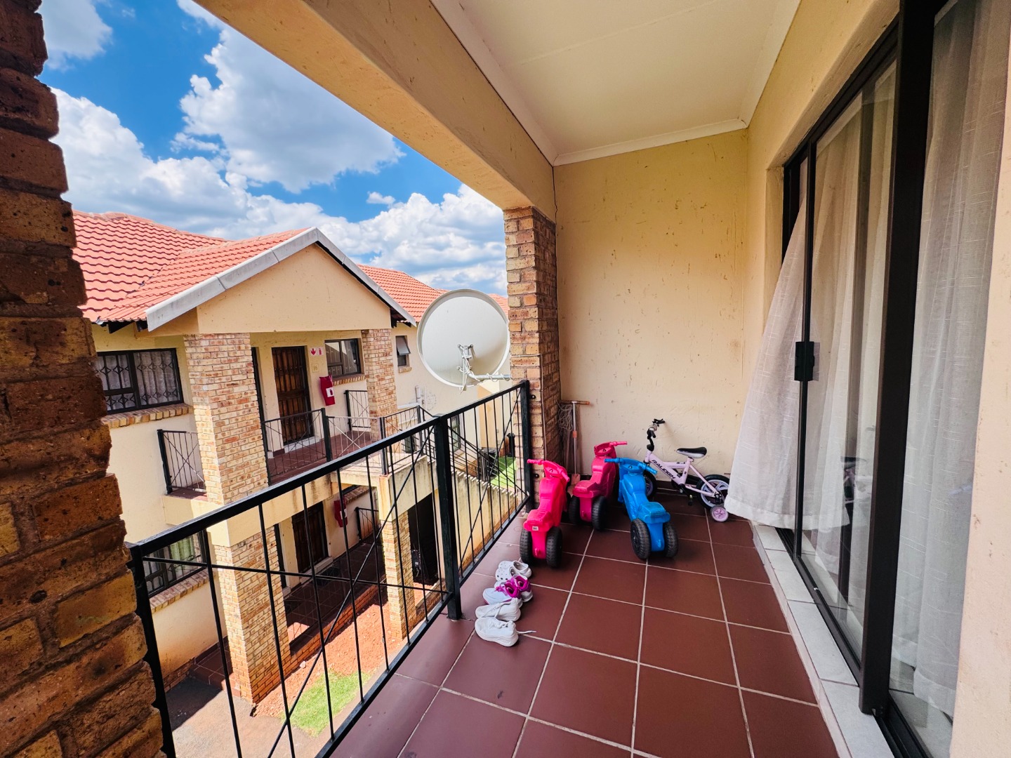 Discover this modern 3-bedroom, 2-bathroom apartment located in a secure complex in Groblerpark, Roodepoort. Spanning 79.00 sqm, this residence offers a bright and inviting open-plan living experience. The lounge area, characterized by clean white tiled flooring and freshly painted white walls, benefits from abundant natural light streaming through large windows and sliding door that lead to a private balcony, perfect for relaxation.