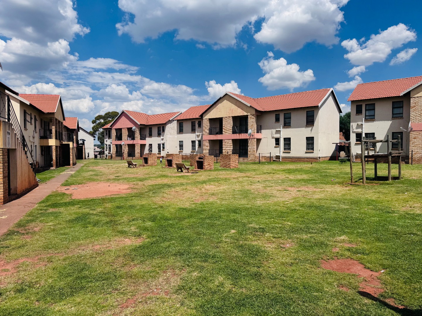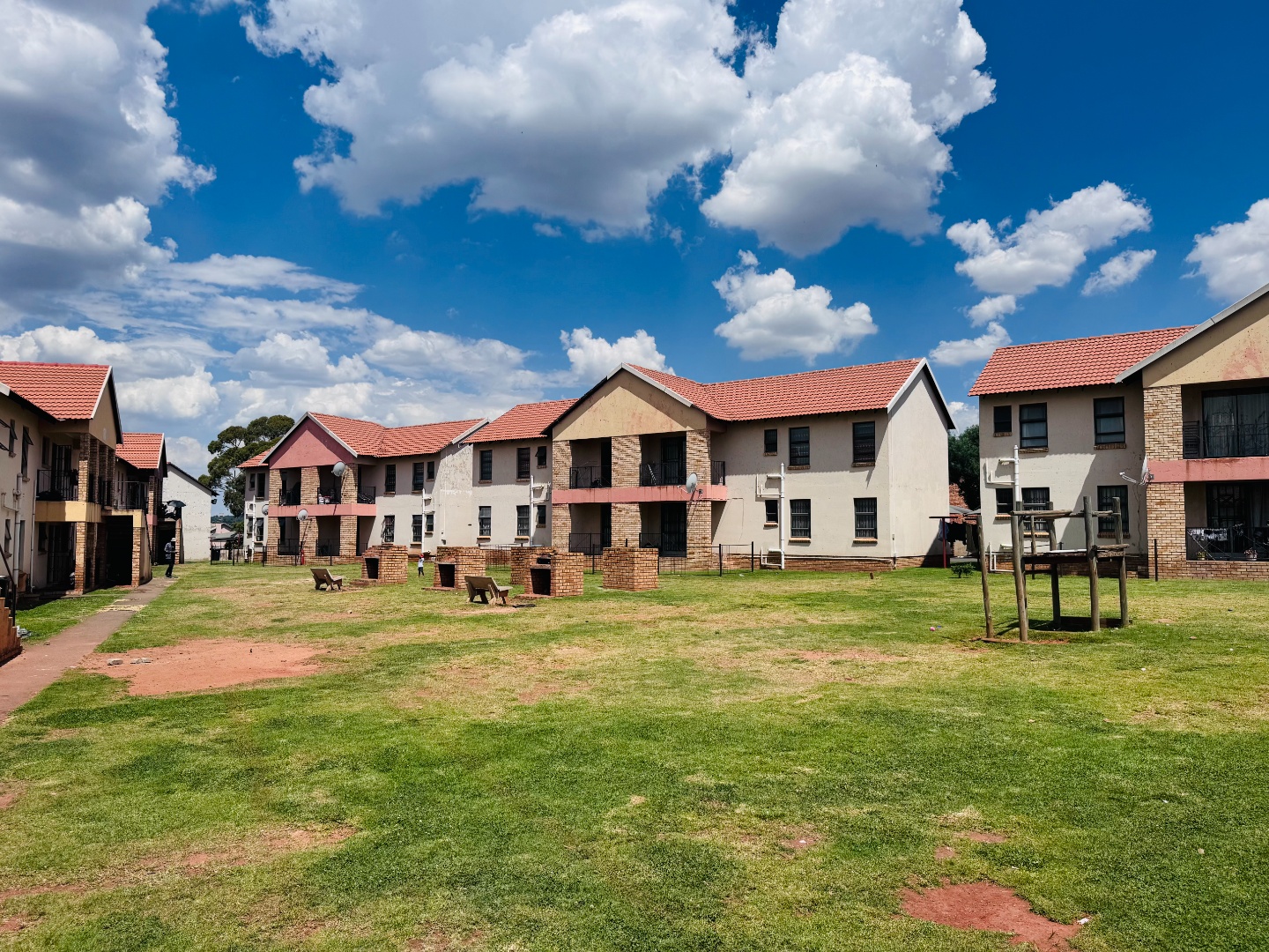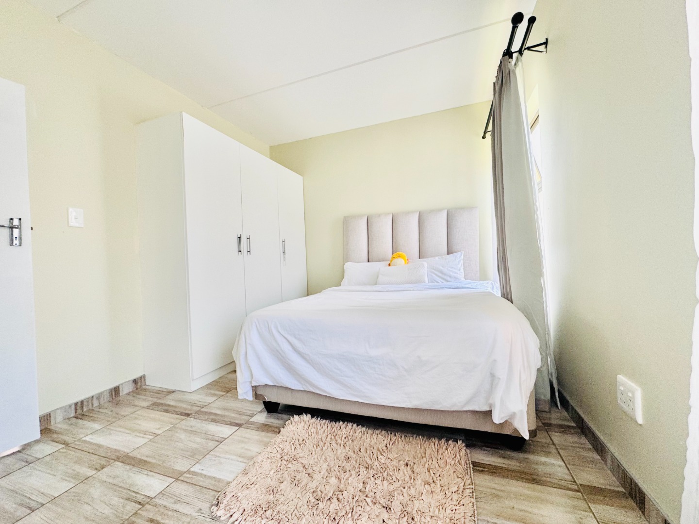 Outside, residents can enjoy a private garden space, perfect for relaxation or outdoor activities. The property includes two dedicated parking bays. Security is a priority within this complex, featuring an access gate and 24-hour security, providing peace of mind for all residents. This home presents a functional and appealing option for those seeking a secure and modern lifestyle in Groblerpark.