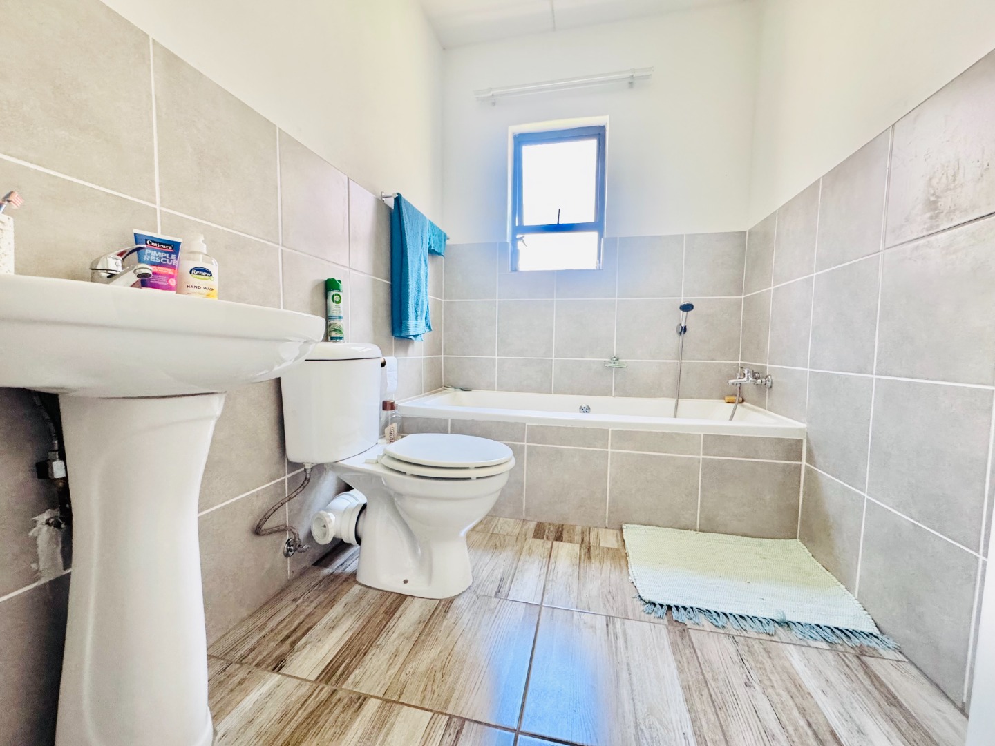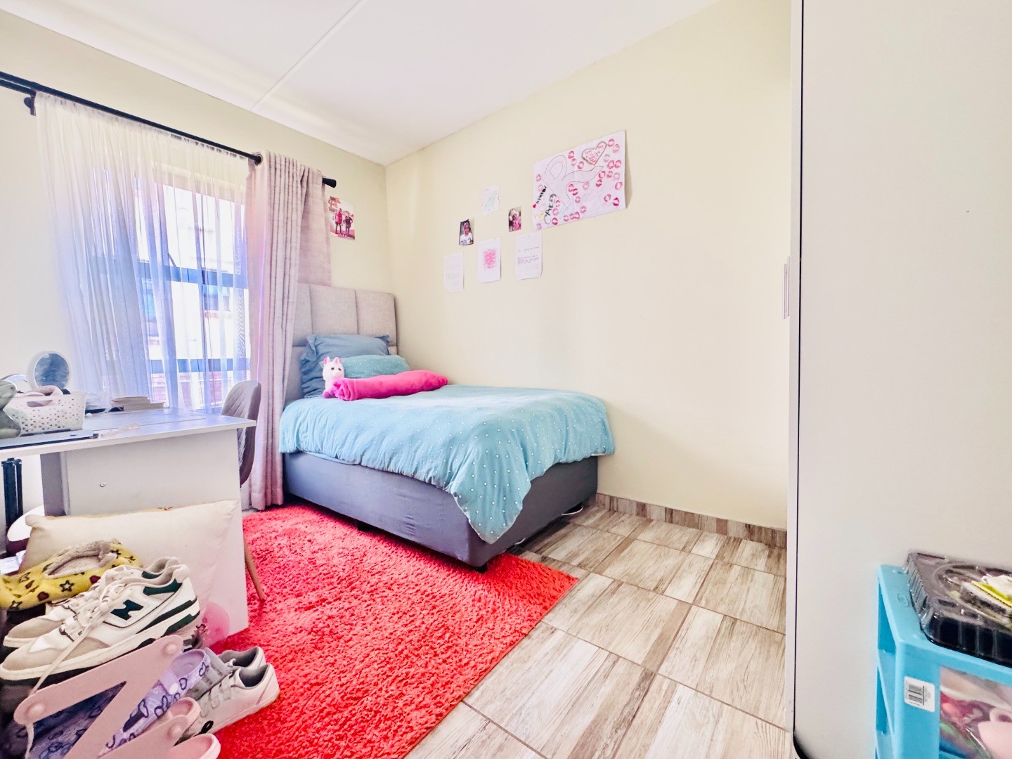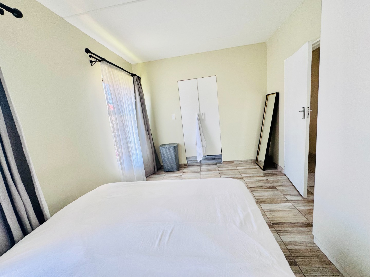 Outside, residents can enjoy a private garden space, perfect for relaxation or outdoor activities. The property includes two dedicated parking bays. Security is a priority within this complex, featuring an access gate and 24-hour security, providing peace of mind for all residents. This home presents a functional and appealing option for those seeking a secure and modern lifestyle in Groblerpark.