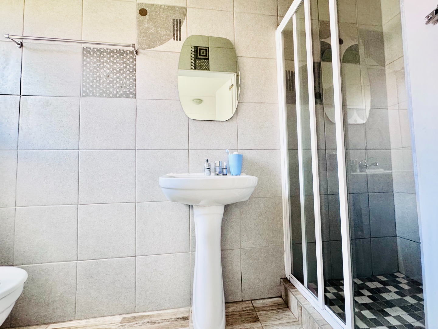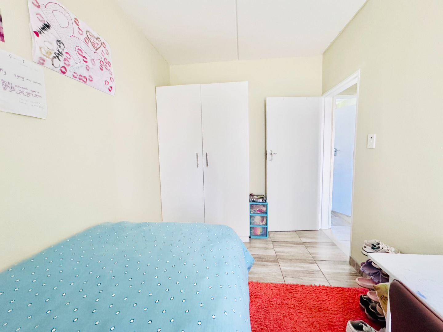 The property offers three well-proportioned bedrooms, each featuring neutral decor and tiled flooring for easy maintenance. The master bedroom benefits from an en-suite bathroom, providing privacy and convenience. A second bathroom serves the remaining bedrooms and guests, ensuring functionality for families or shared living arrangements. Built-in wardrobes in the bedrooms offer practical storage solutions.