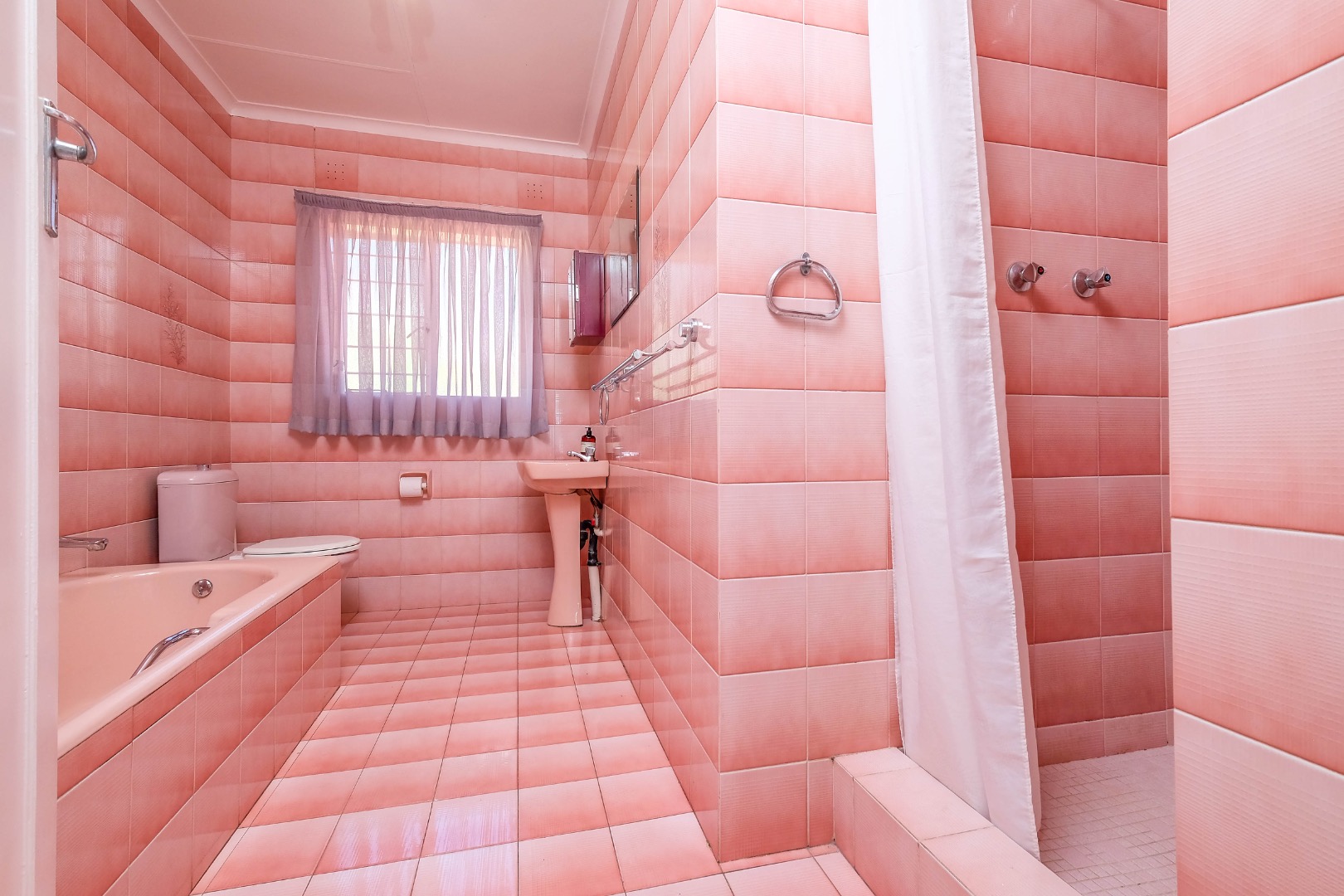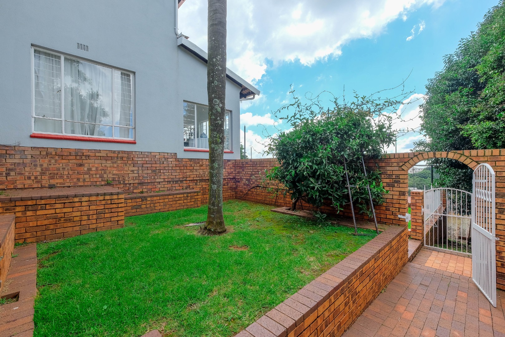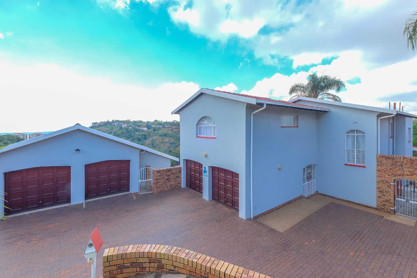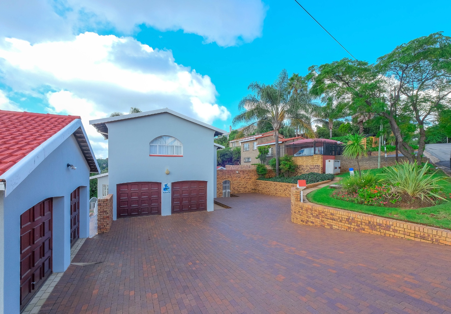 4 garages with wooden doors. The separate set of 2 garages could, with clever planning, be converted into a flatlet.