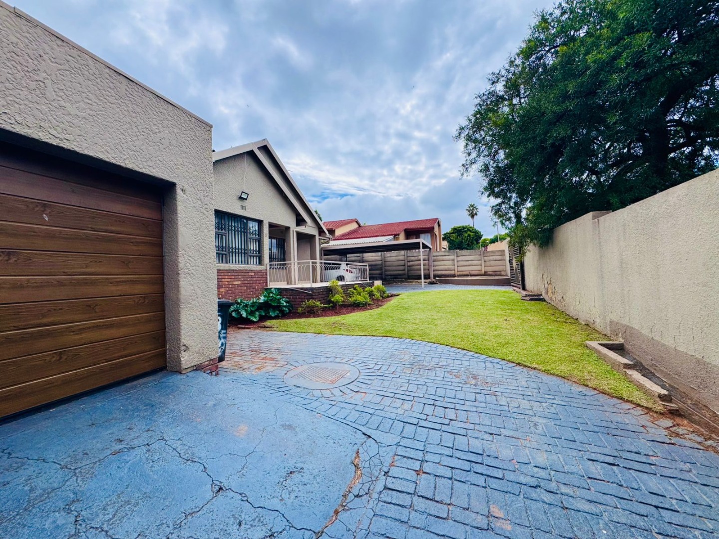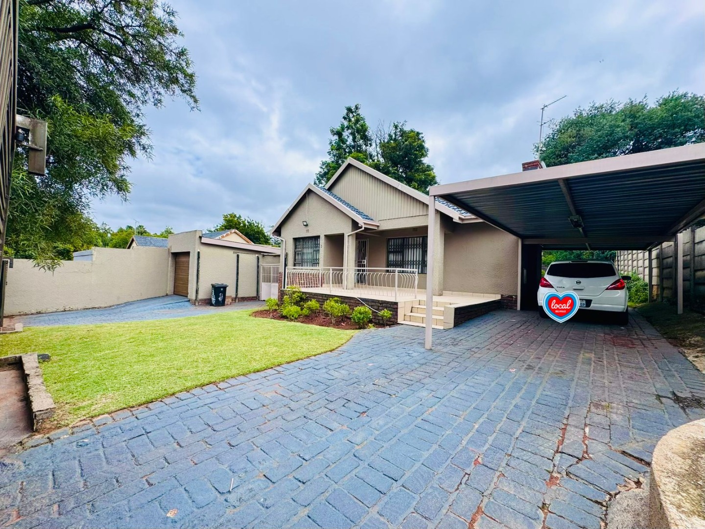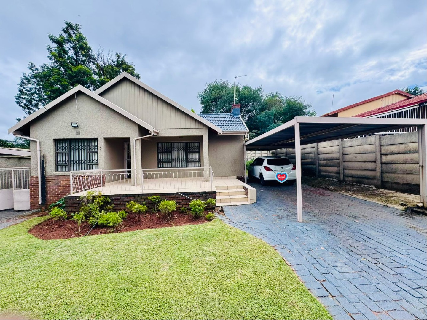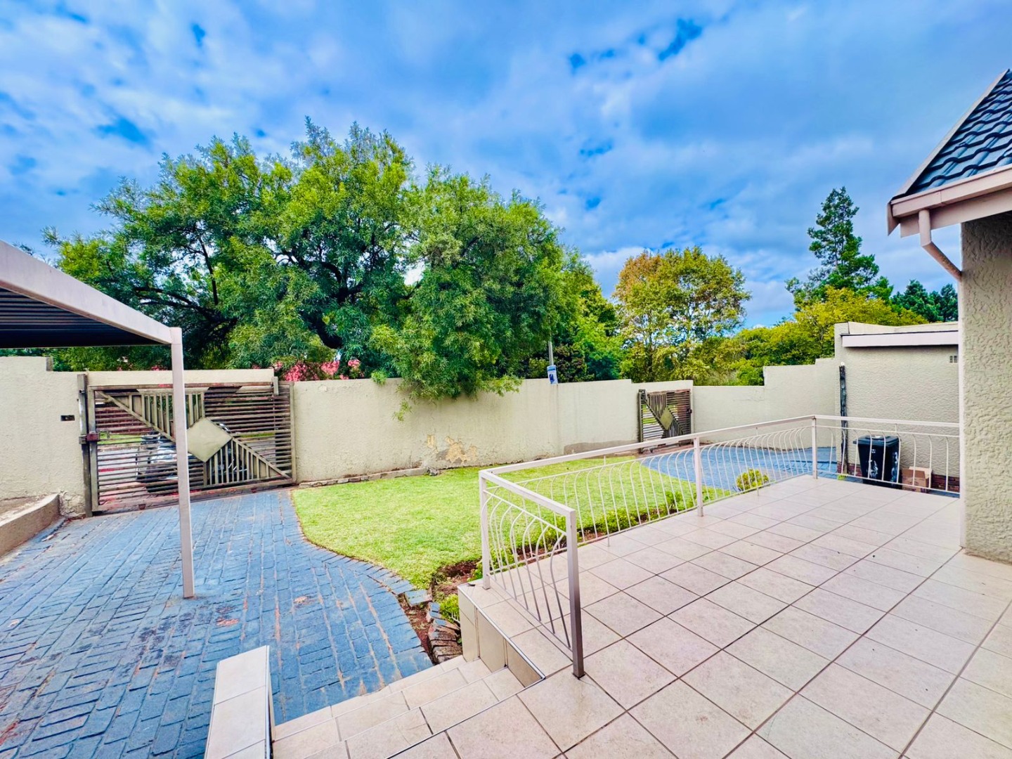 Parking is effortlessly accommodated with a secure automated garage and a covered carport for two vehicles, ensuring both convenience and peace of mind.