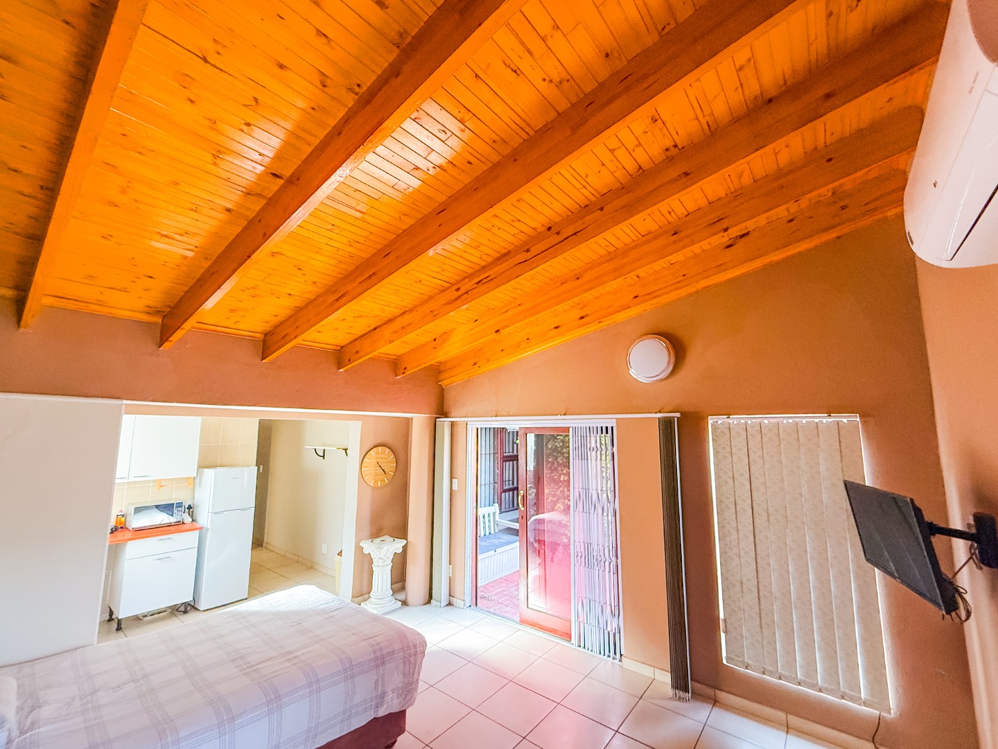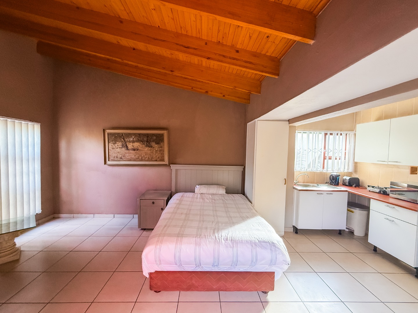 A large additional room, currently utilized as a flatlet or guest suite, offers versatile options for extended family, a home office, or even rental income potential. The kitchenette area and private access make it ideal for dual living arrangements or work-from-home setups.