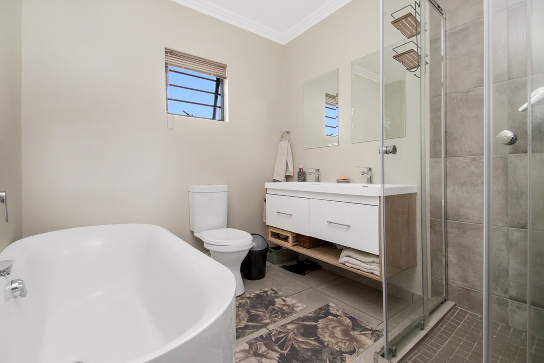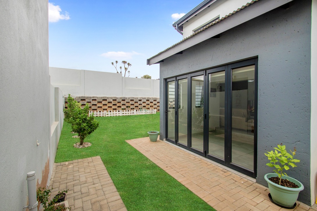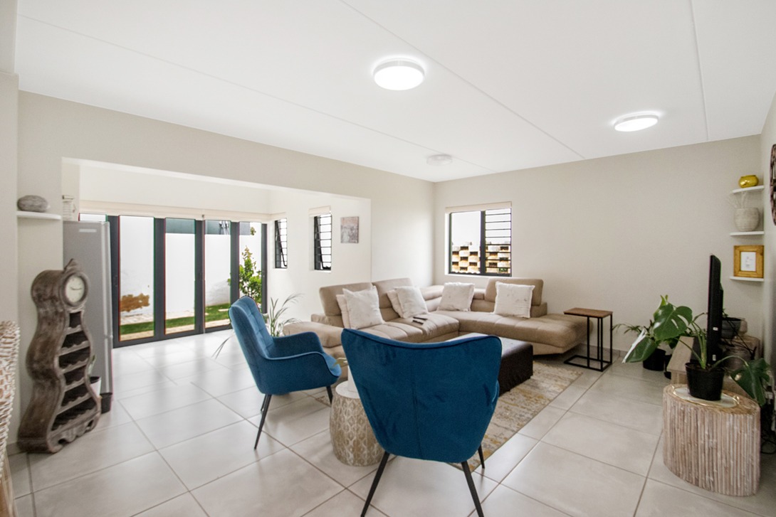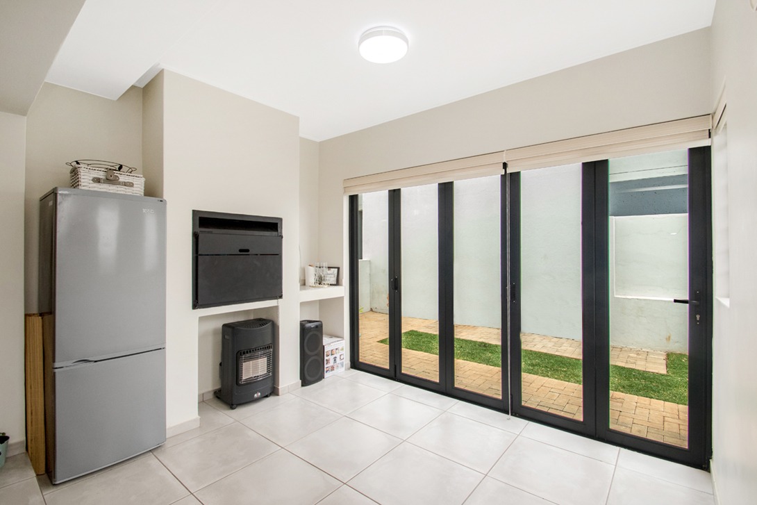 Step outside to your private, covered patio, an ideal space for alfresco dining and entertaining, complete with a built-in braai for year-round enjoyment. The expansive garden, accessible through stack doors, provides ample space for a sparkling pool (subject to complex approval), offering the perfect setting for relaxation and leisure.