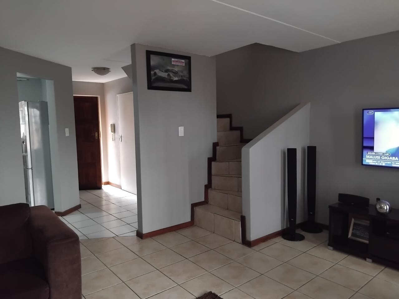 Outdoor living is enhanced by a private patio and garden, perfect for relaxation or entertaining. Residents also benefit from access to communal amenities within the complex, including a swimming pool and a communal braai area, fostering a sense of community. Pets are allowed, making this an ideal home for animal lovers. Radiokop, a residential suburb in Roodepoort, South Africa, offers a convenient location with access to local amenities and transport routes.