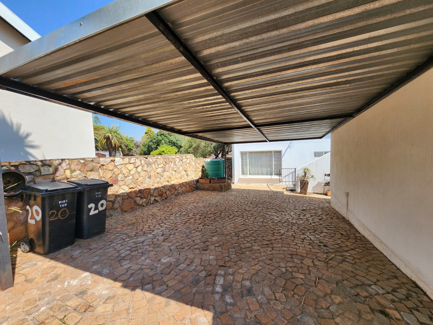 A carport that accommodates three to four vehicles