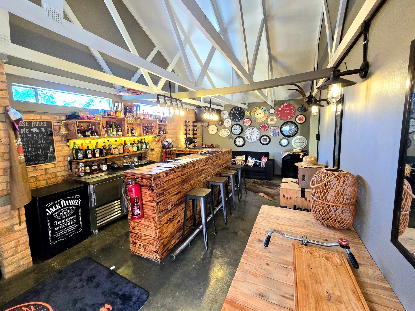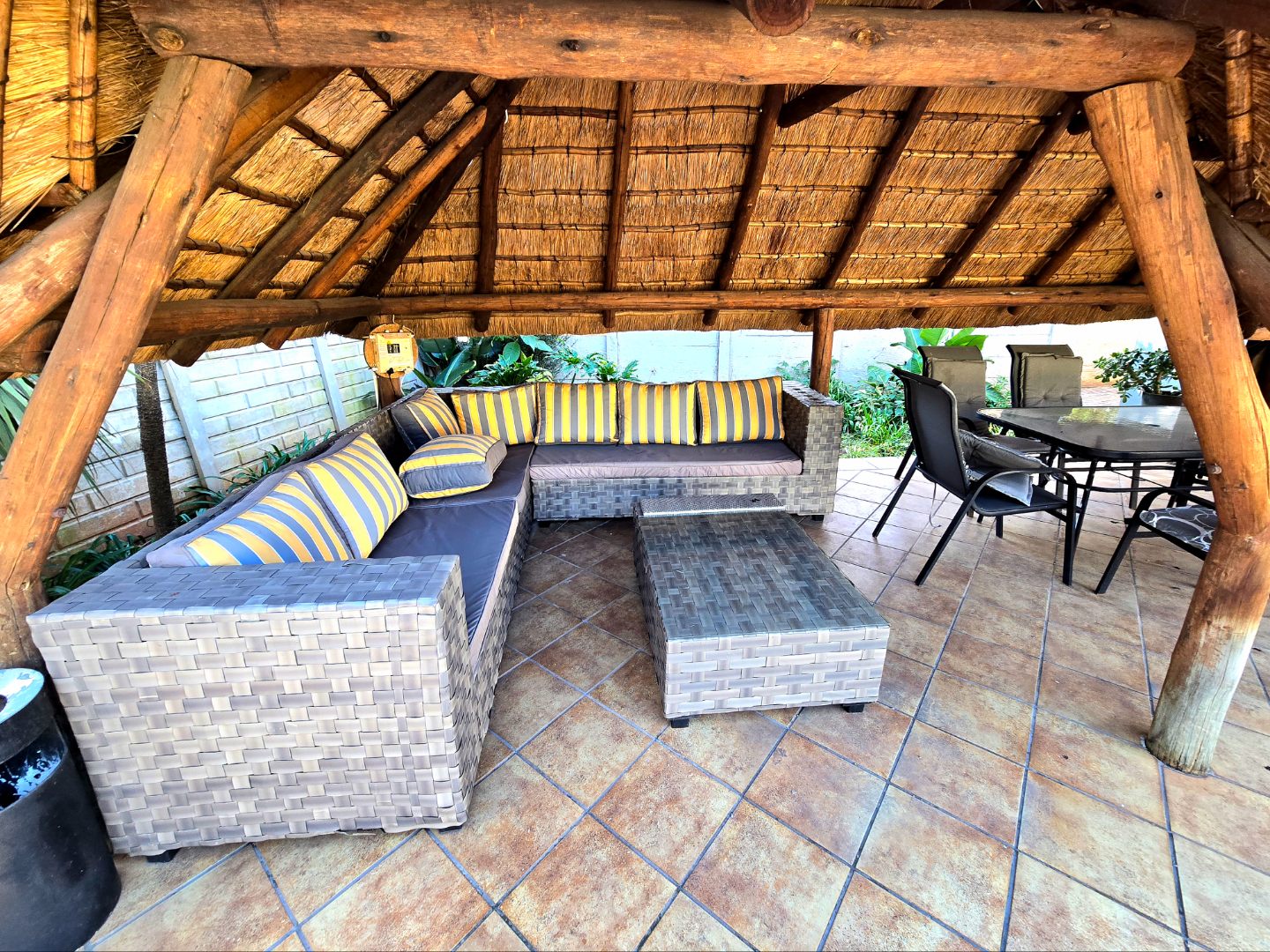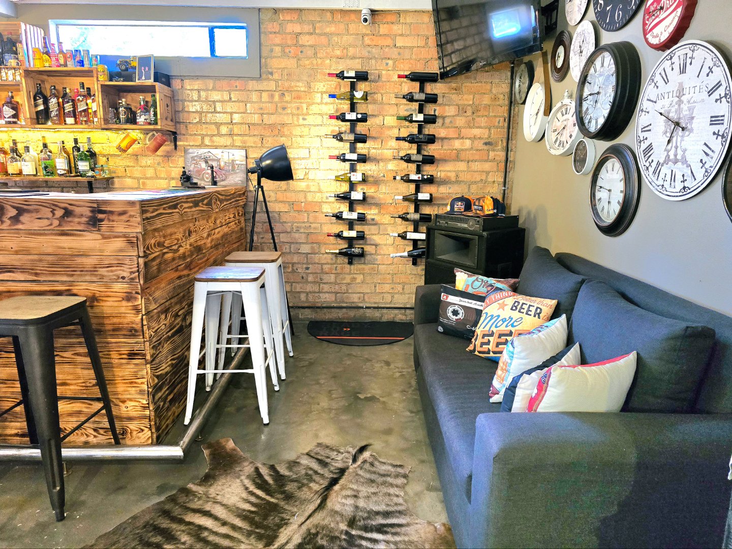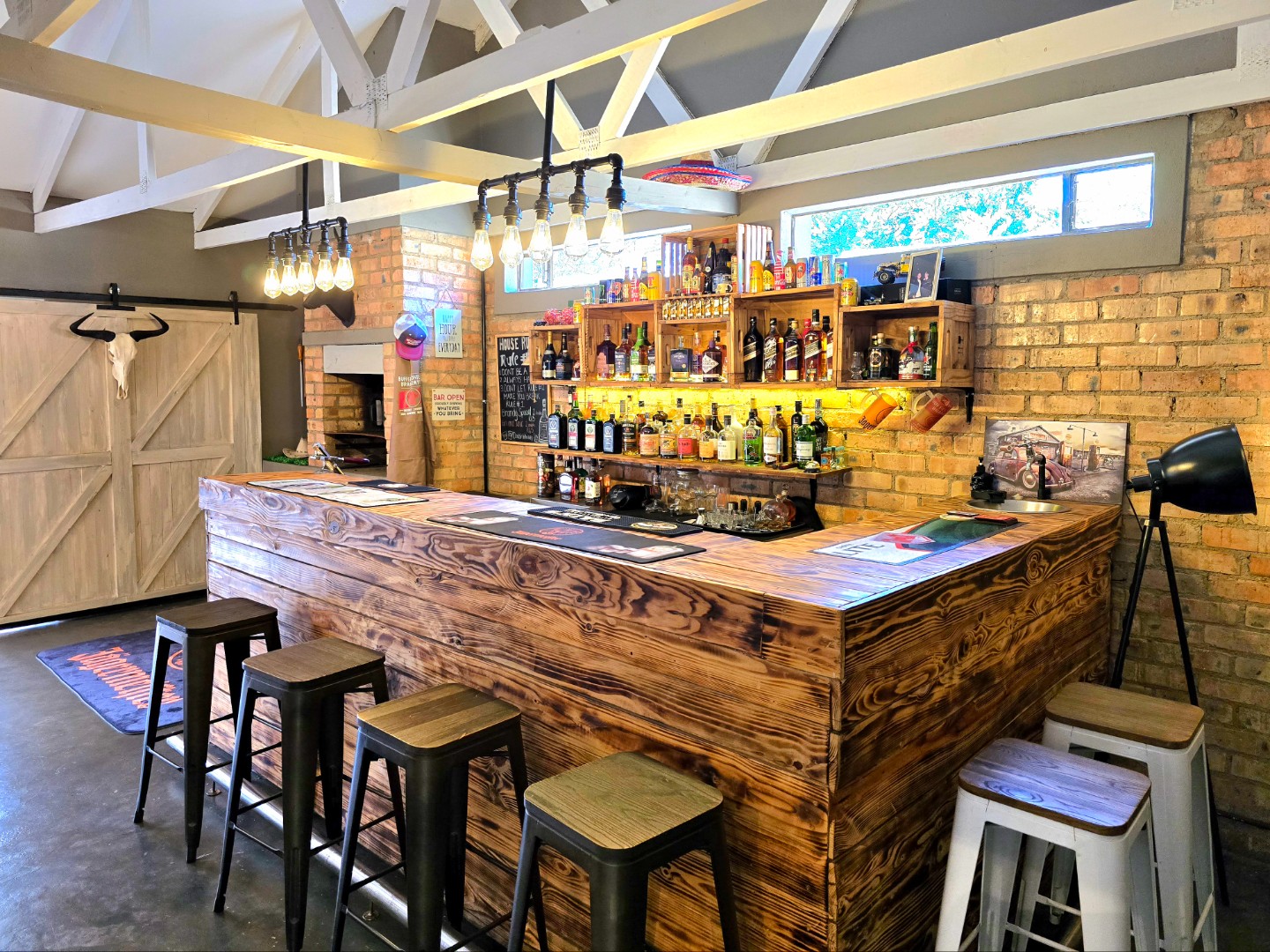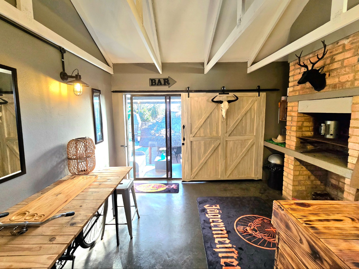 Now for the fun part, this home was made for entertaining. Inside, there’s a great bar area and built-in braai. Outside, things get even better: a lapa, pizza oven, second built-in braai, boma for those open-fire evenings, and even a guest toilet outside so everyone’s comfortable.