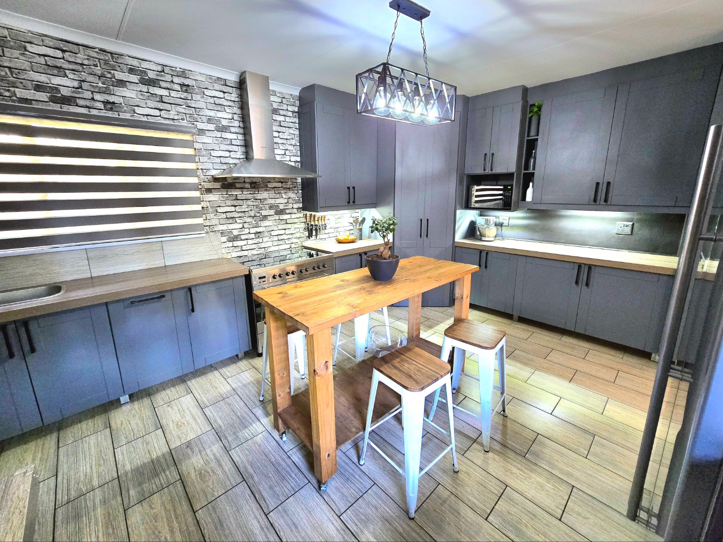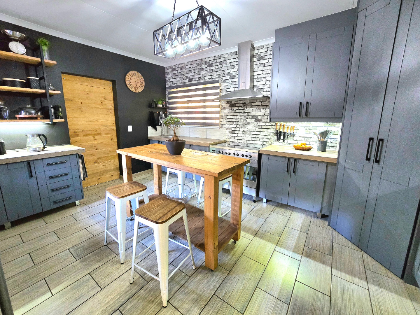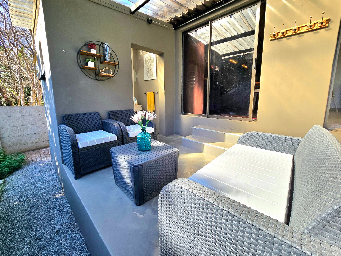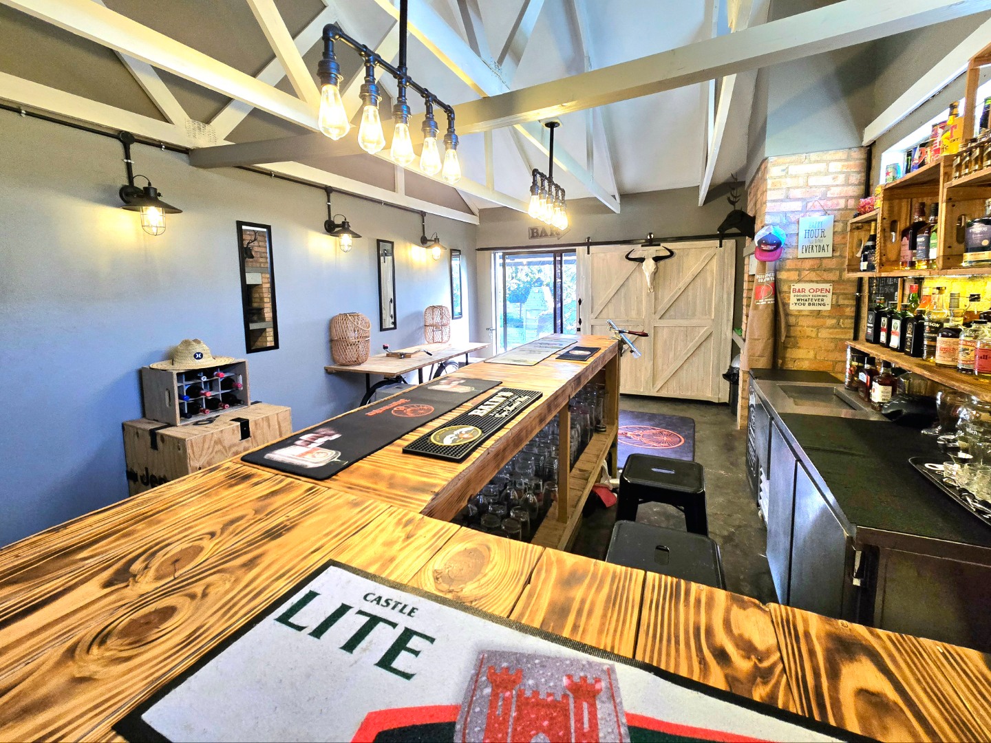 Now for the fun part, this home was made for entertaining. Inside, there’s a great bar area and built-in braai. Outside, things get even better: a lapa, pizza oven, second built-in braai, boma for those open-fire evenings, and even a guest toilet outside so everyone’s comfortable.
