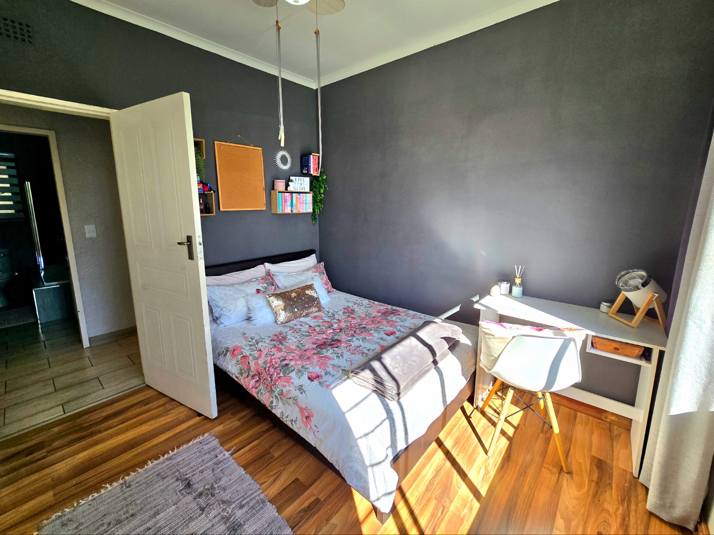 There are three spacious bedrooms and two neat bathrooms. The main bedroom has its own en suite bathroom. There’s also a study that could easily be turned into a fourth bedroom if needed.