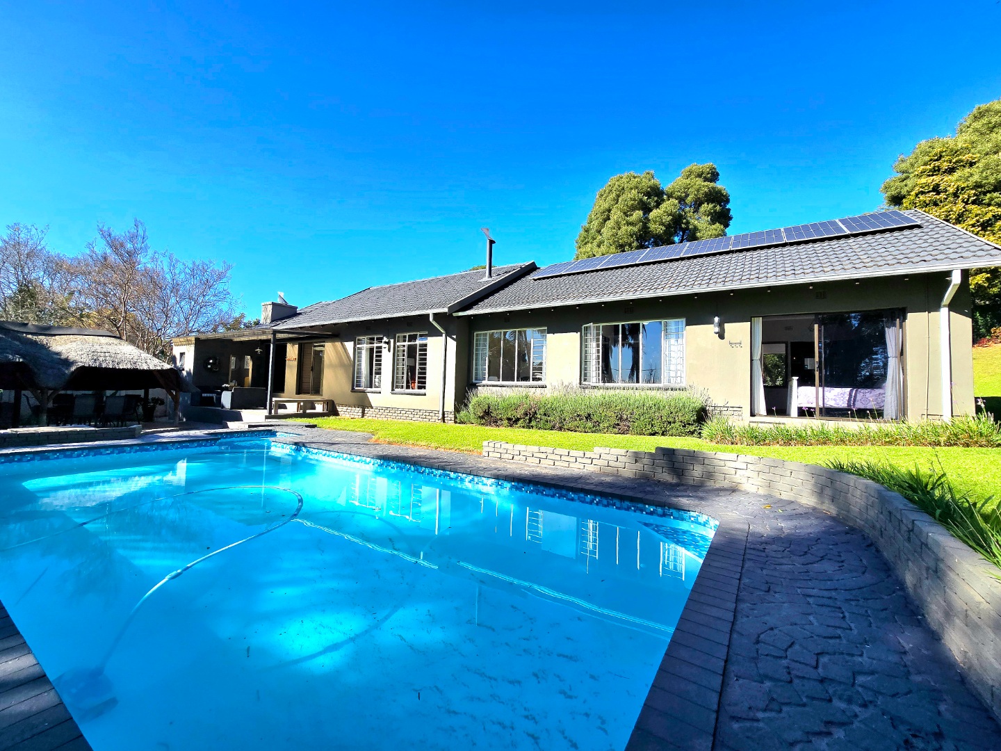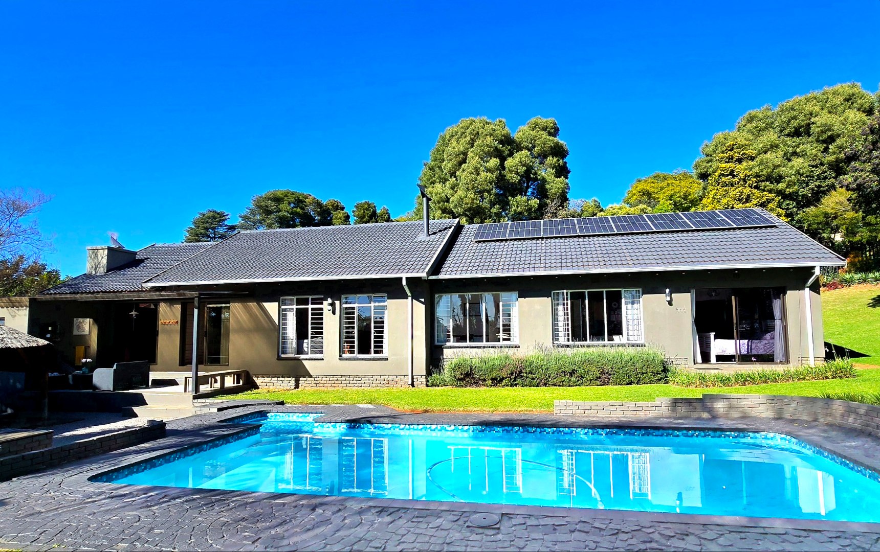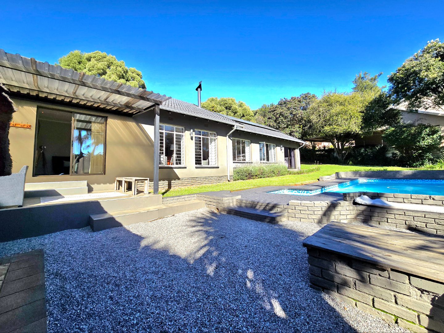 The pool is ideal for summer days, and here’s a bonus, Equipped with with eight solar panels and an 8kW battery backup system, available on a rent-to-own basis (optional) , That means you’ll enjoy more energy independence and fewer worries during loadshedding.