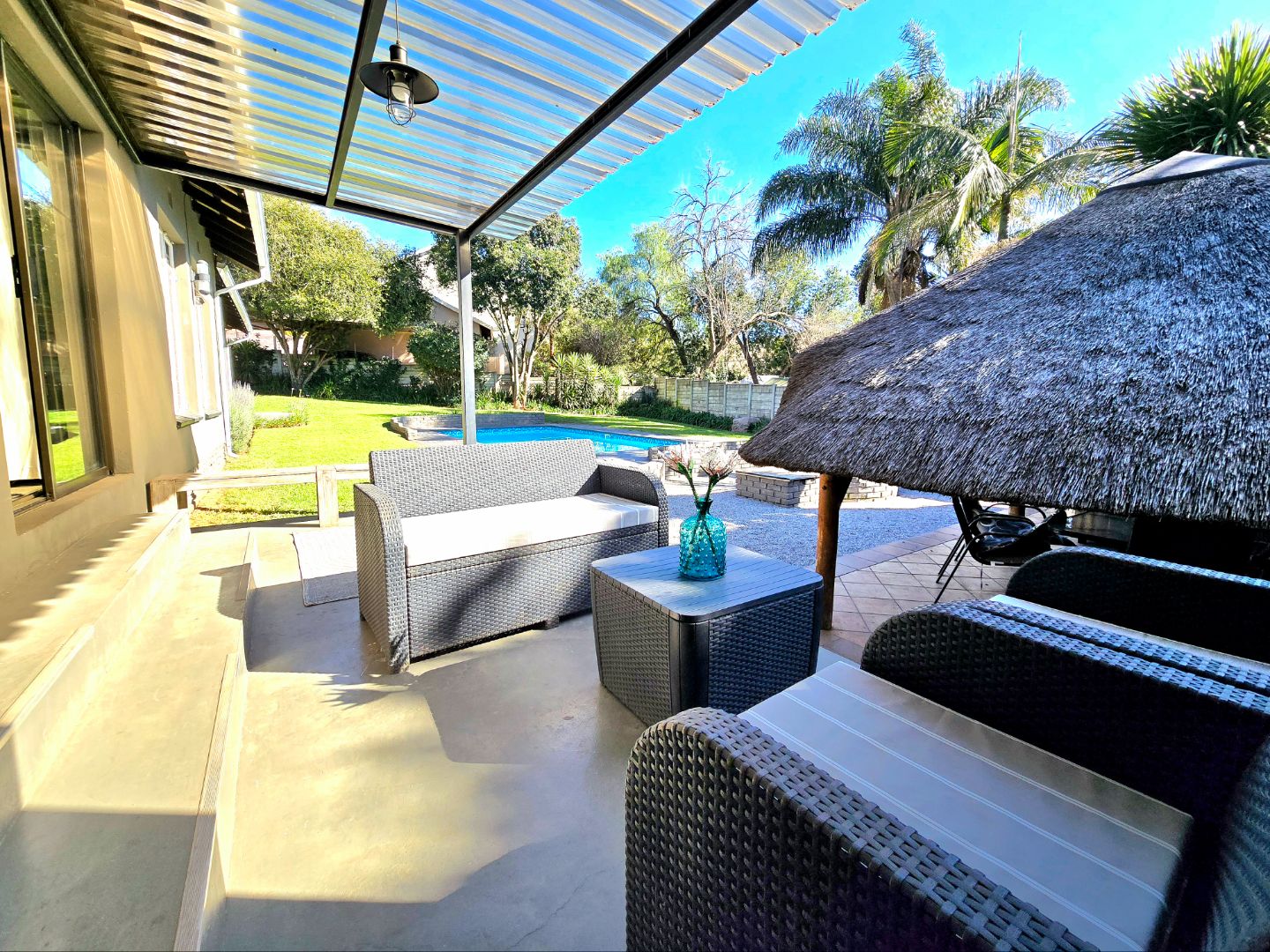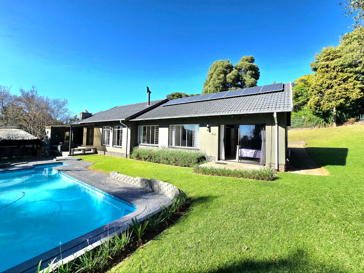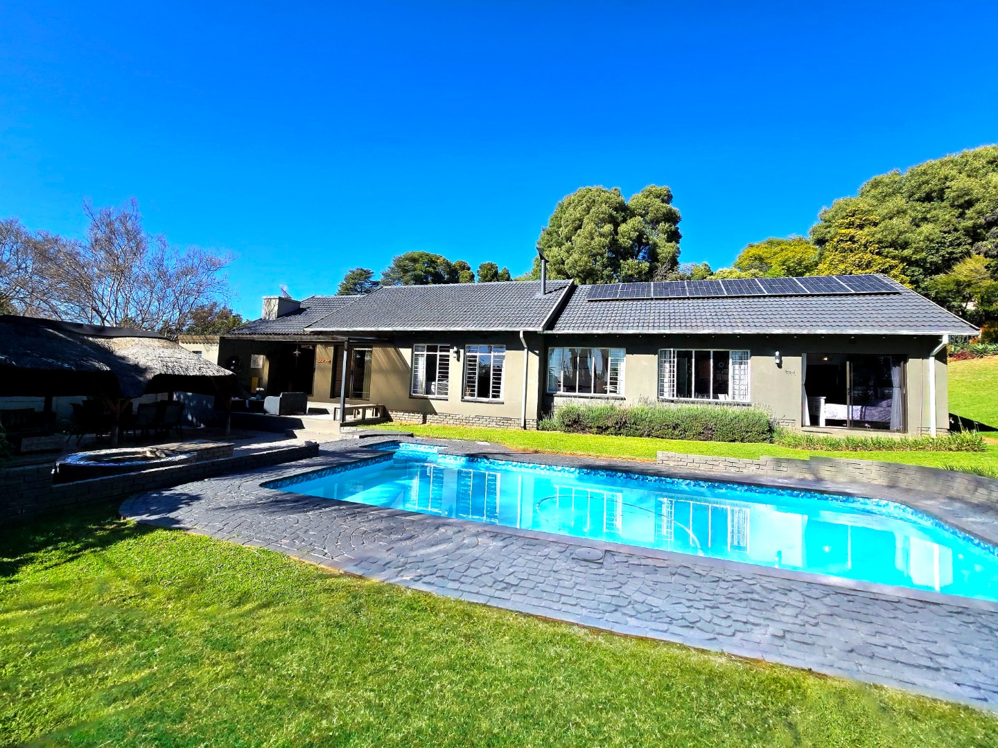 The pool is ideal for summer days, and here’s a bonus, Equipped with with eight solar panels and an 8kW battery backup system, available on a rent-to-own basis (optional) , That means you’ll enjoy more energy independence and fewer worries during loadshedding.