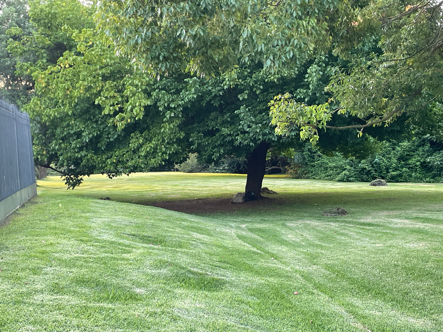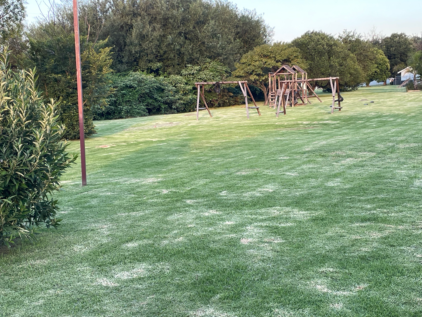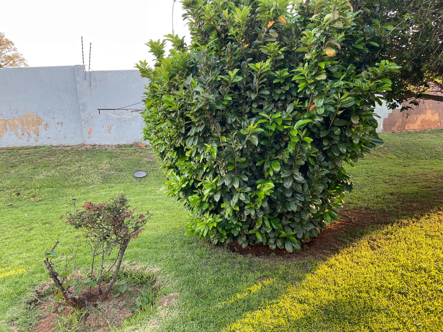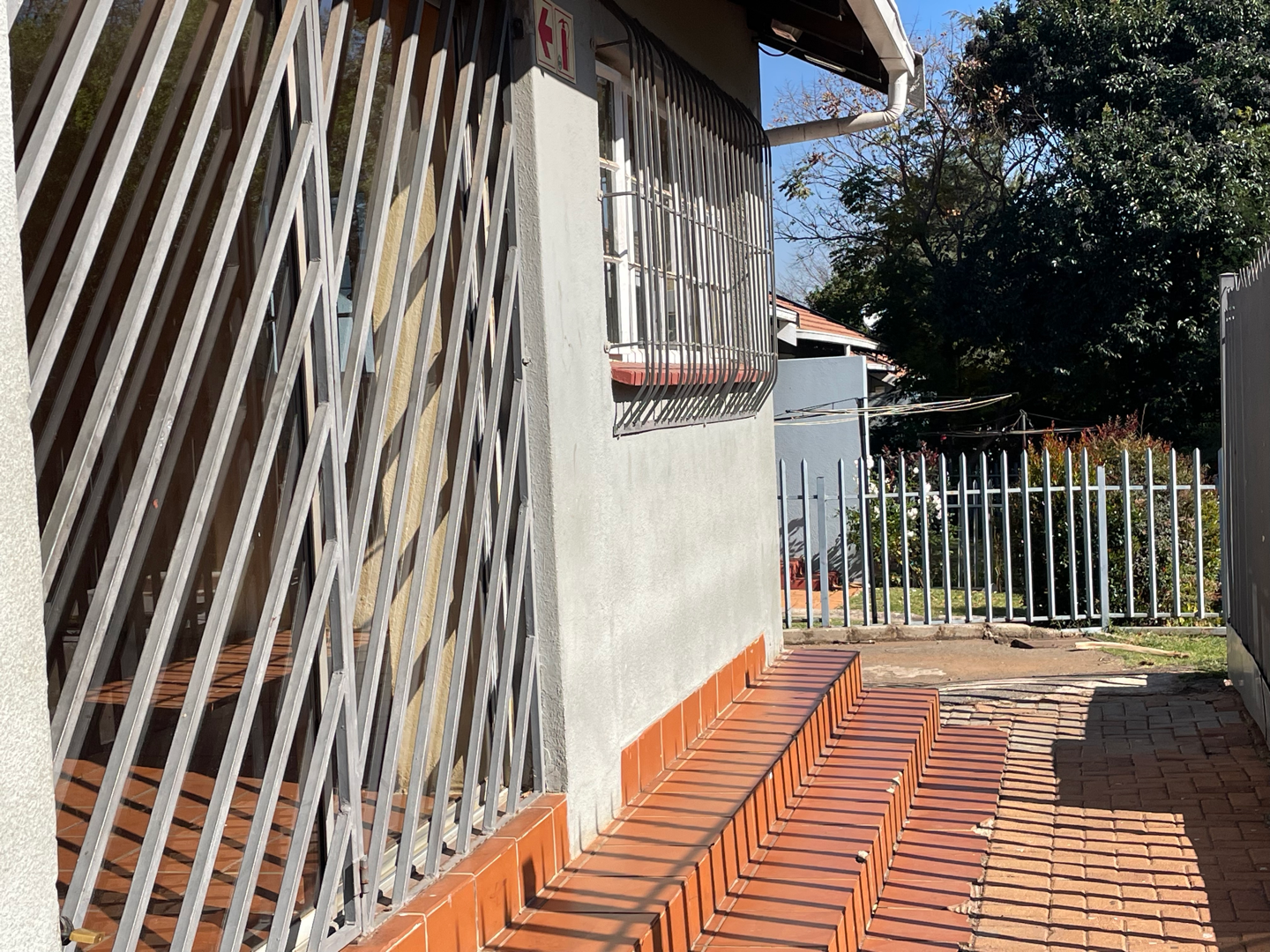 Step through the gate to a lush green lawn and neatly maintained driveways, surrounded by vibrant greenery.