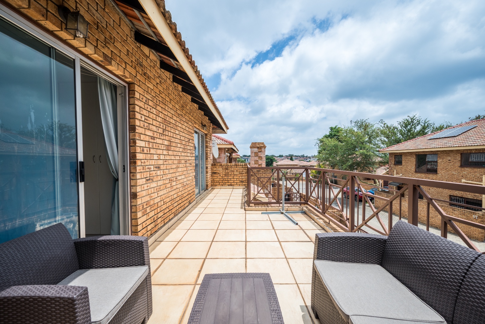 This stunning modern 183 sqm unit with pool in complex and is close to shops and schools!!!! The modern unit offers 3 large bedrooms with build-in-cupboards. The master bedroom with own full bathroom with bath and shower. The main bedroom leads onto large private balcony. The two other bedrooms share a family bathroom. The well fitted kitchen offers place for appliance and breakfast nook and granite tops. There is a gas stove in kitchen. There is a backdoor from kitchen to courtyard. The kitchen can fit double door fridge. The spacious living area offers dining and lounge area. The living area leads onto enclose patio with build in braai. There is a guest toilet downstairs. The double garage leads into unit. The one garage with drive through and carport at the back. The unit comes with own garden and automated gate. There is a pool in complex. This is a well maintain complex with 24-hour guard and excellent security. This complex is close to shops and schools. Phone today to view!!!!