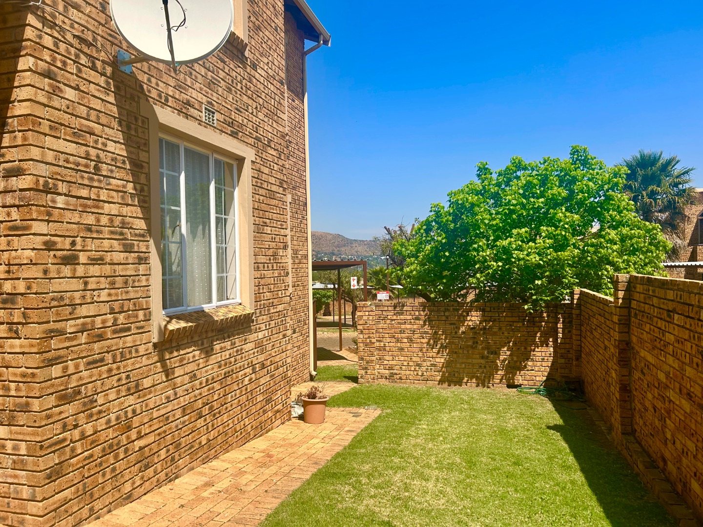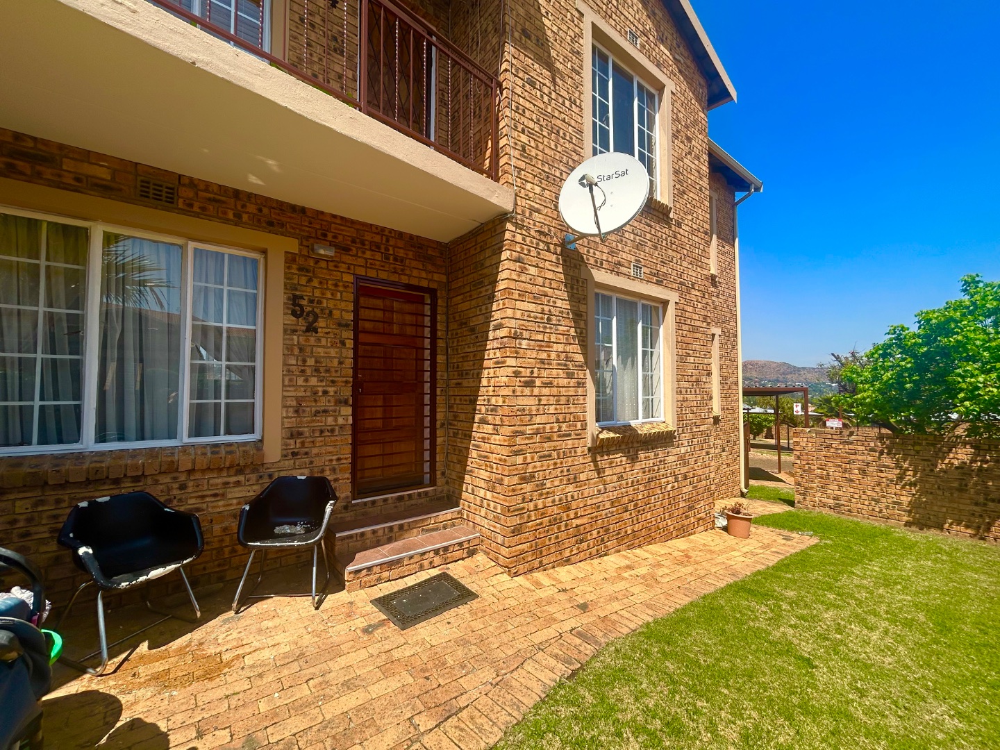 Discover modern living in this inviting 2-bedroom, 2-bathroom apartment located within a secure suburban complex in Strubensvallei, Roodepoort. The multi-story brick building boasts a well-maintained exterior with private balconies and covered carport parking, set amidst green landscaping. Enjoy distant mountain views from your private outdoor spaces, which include a paved patio and a small lawn area, offering a tranquil retreat.