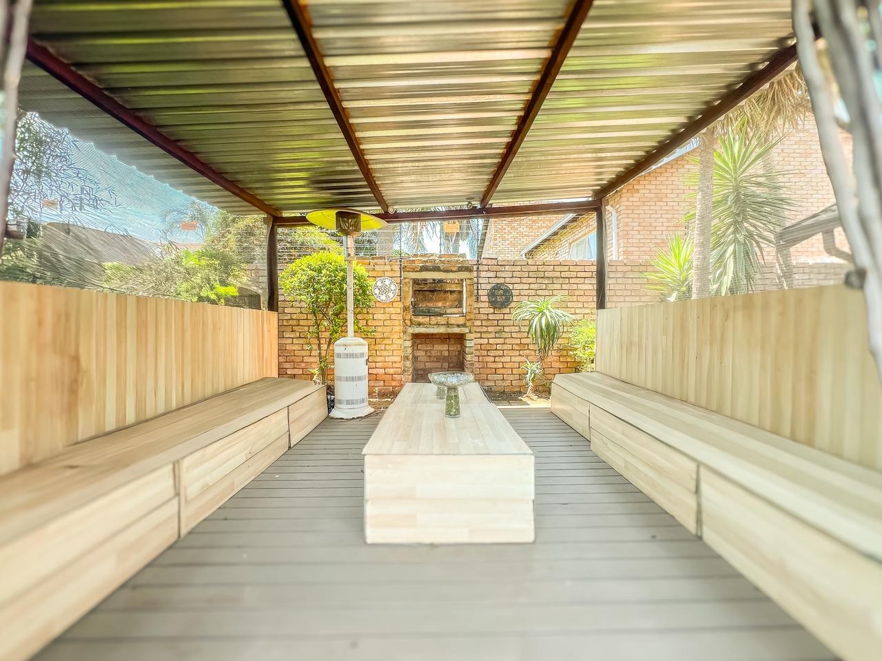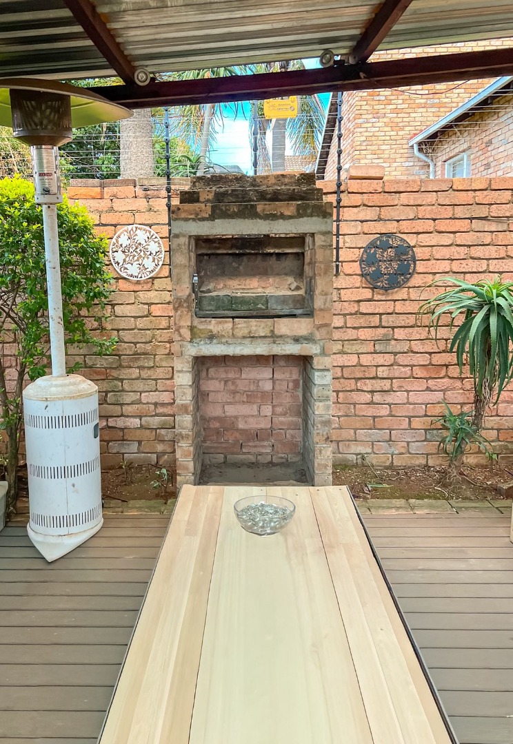 Step outside to a private backyard oasis, with a Deck & perfect for relaxation and entertaining. Lush garden surrounded by mature trees and shrubs, offering a natural and secluded outdoor living space. Enjoy Deck with the built-in brick braai/fireplace for gatherings.