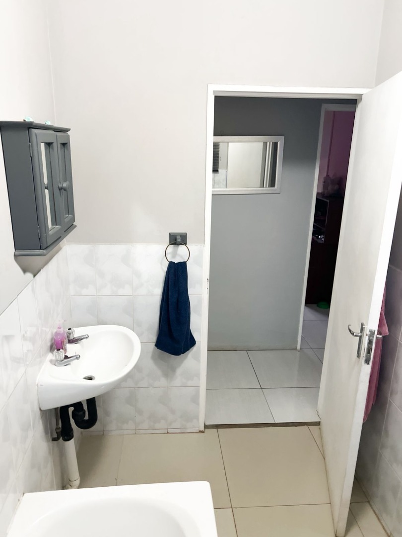 The property comprises three comfortable bedrooms and two functional bathrooms. Main Bedroom that can fit in a King Size bed and One bathroom includes a bath, while the other features a shower, corner basin and a wall-mounted cabinet, both designed for practicality.