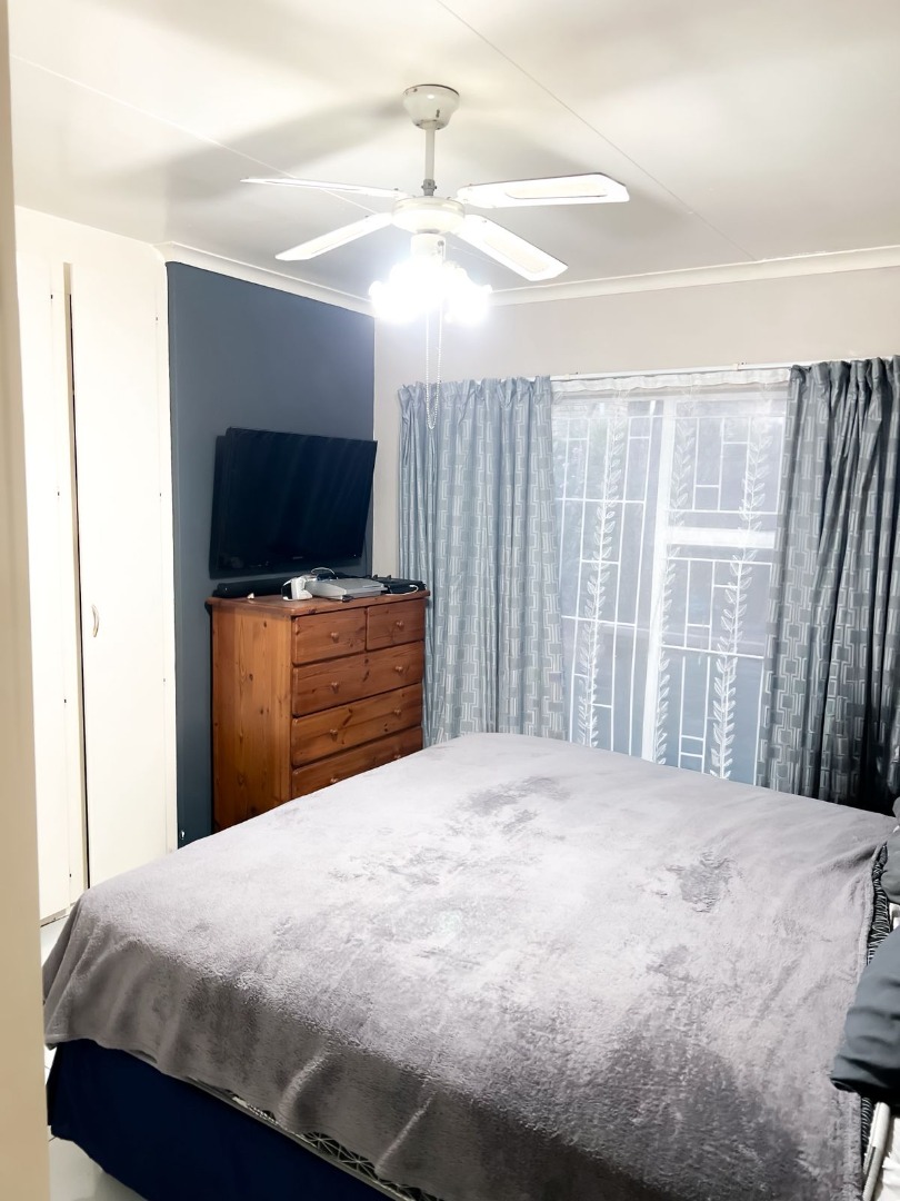 The living area is equipped with a ceiling fan for comfort and benefits from direct access to the private garden, allowing for an effortless indoor-outdoor flow.