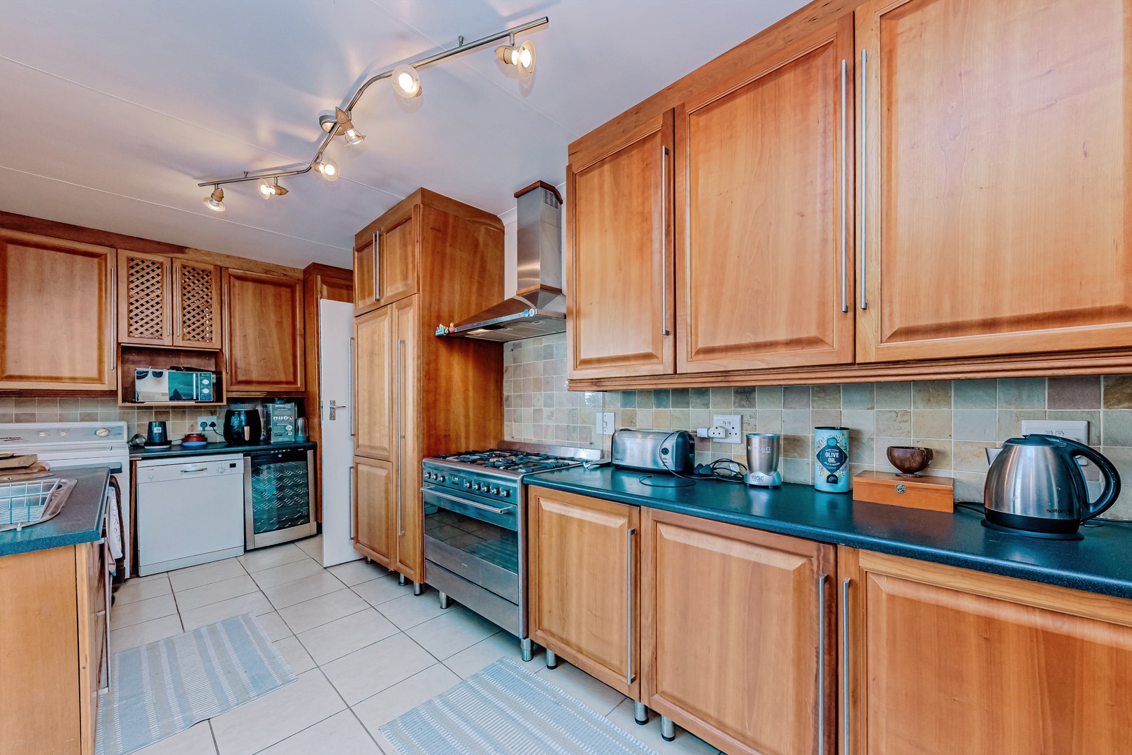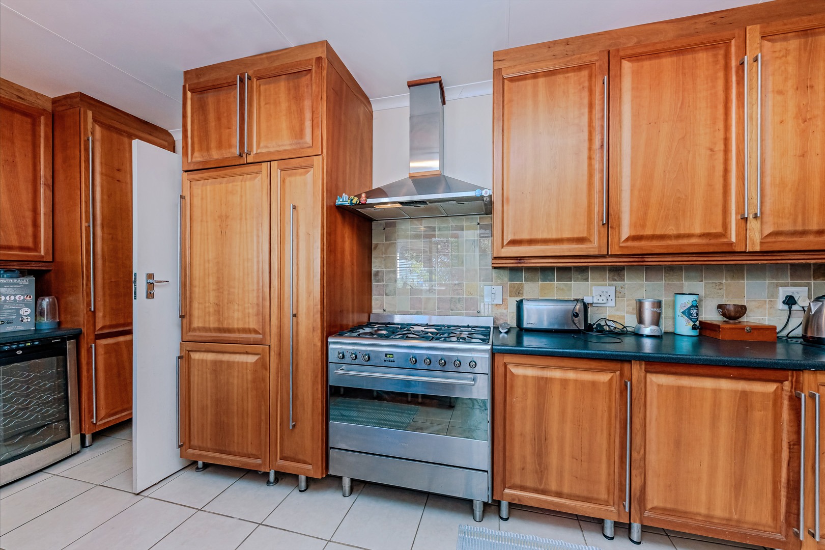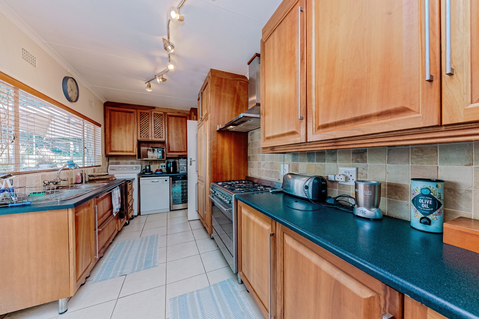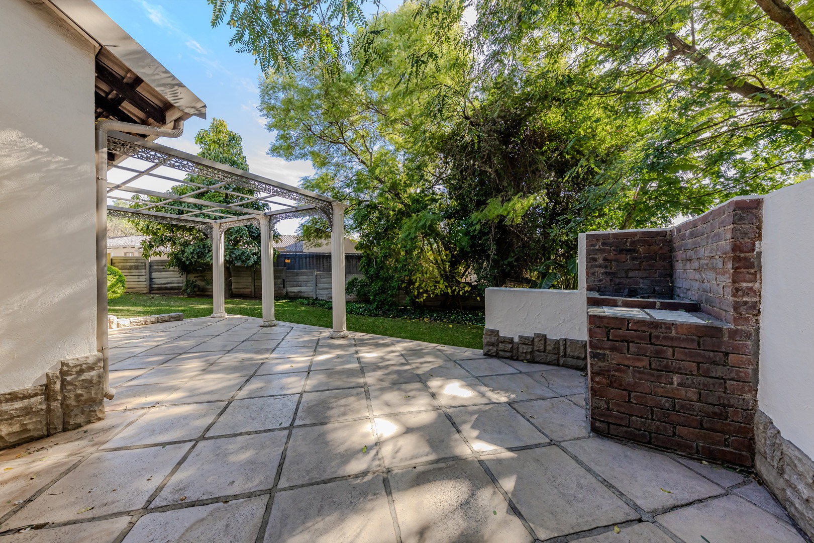 The kitchen is equipped with ample storage and a gas stove, making it functional and efficient for daily use or entertaining. Outside, the property features a large garden, ideal for family activities and outdoor enjoyment. A built-in braai area offers a great setting for social gatherings and weekend relaxation.