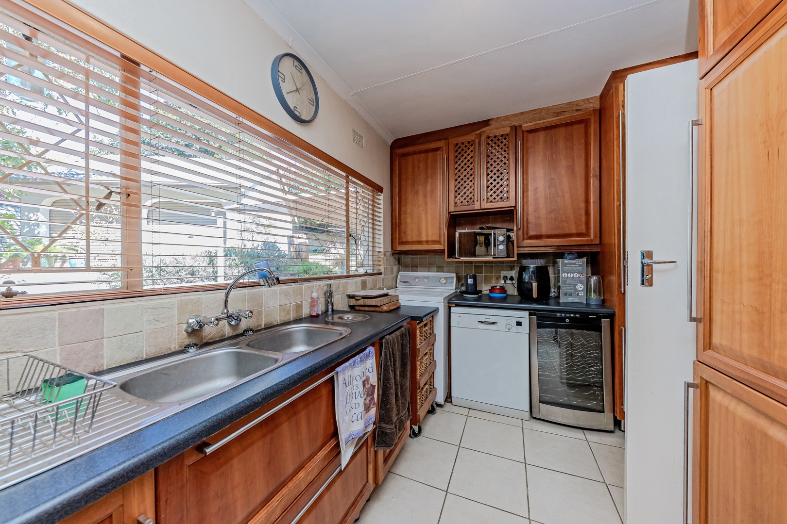 Additional features include a double garage, a covered carport, and a Wendy house that can be used for storage or as a utility space. The property is secure and conveniently located near schools, shopping centre's, and main transport routes.