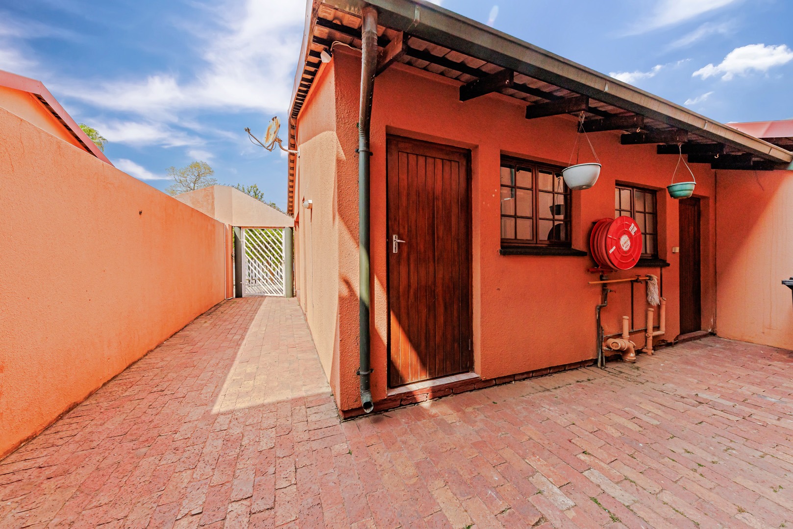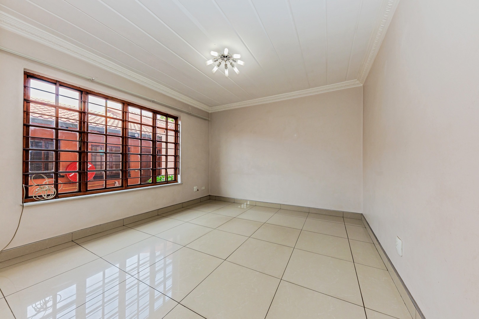 The entrance sets the tone with a brick-paved courtyard leading to a covered, tiled patio, offering both curb appeal and peace of mind. Security has been thoughtfully considered with sturdy gates, burglar bars, and an internal staircase gate, ensuring a safe and secure environment.