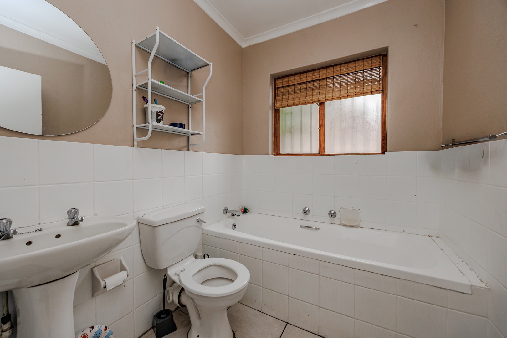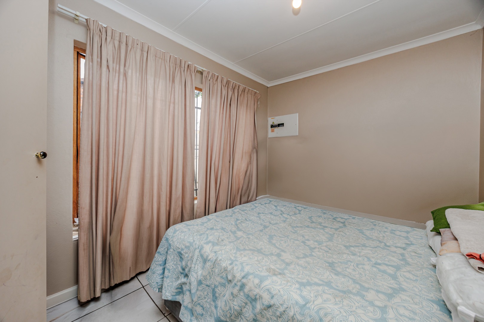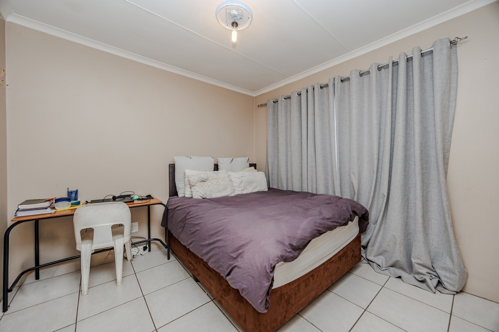 Each of the three bedrooms offers comfortable living, complemented by two well-appointed bathrooms. The property prioritises security with robust bars on windows and doors, providing peace of mind. A dedicated utility room offers additional convenience for laundry needs.