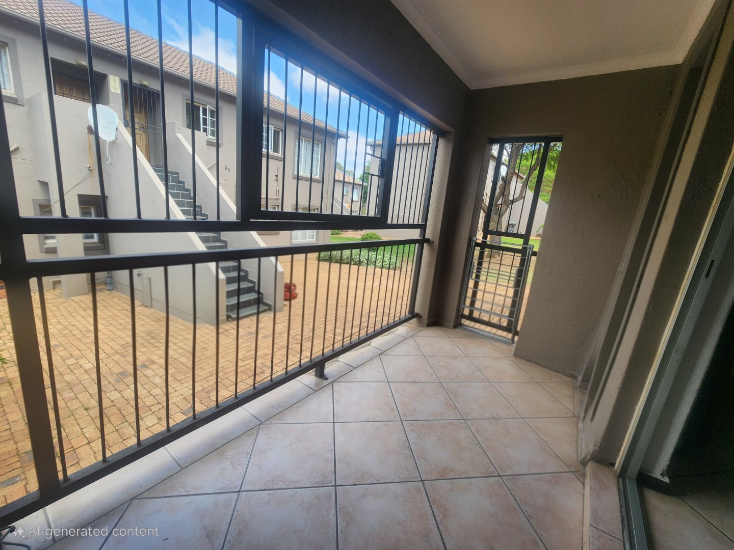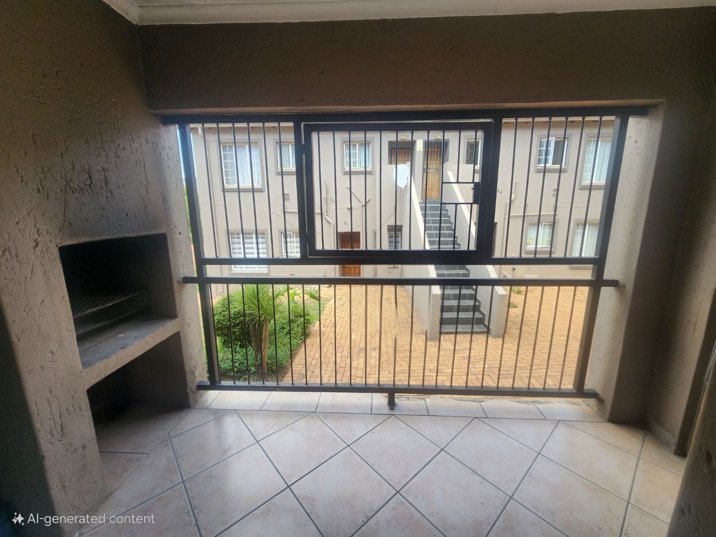 One of the best bits? The apartment is on the ground floor, so no steps to worry about — perfect for easy access and everyday convenience. You’ll also enjoy your own private balcony, featuring a built-in braai for those lekker South African cookouts. While the security bars offer added safety, they also provide a glimpse of the communal courtyard and surrounding area.