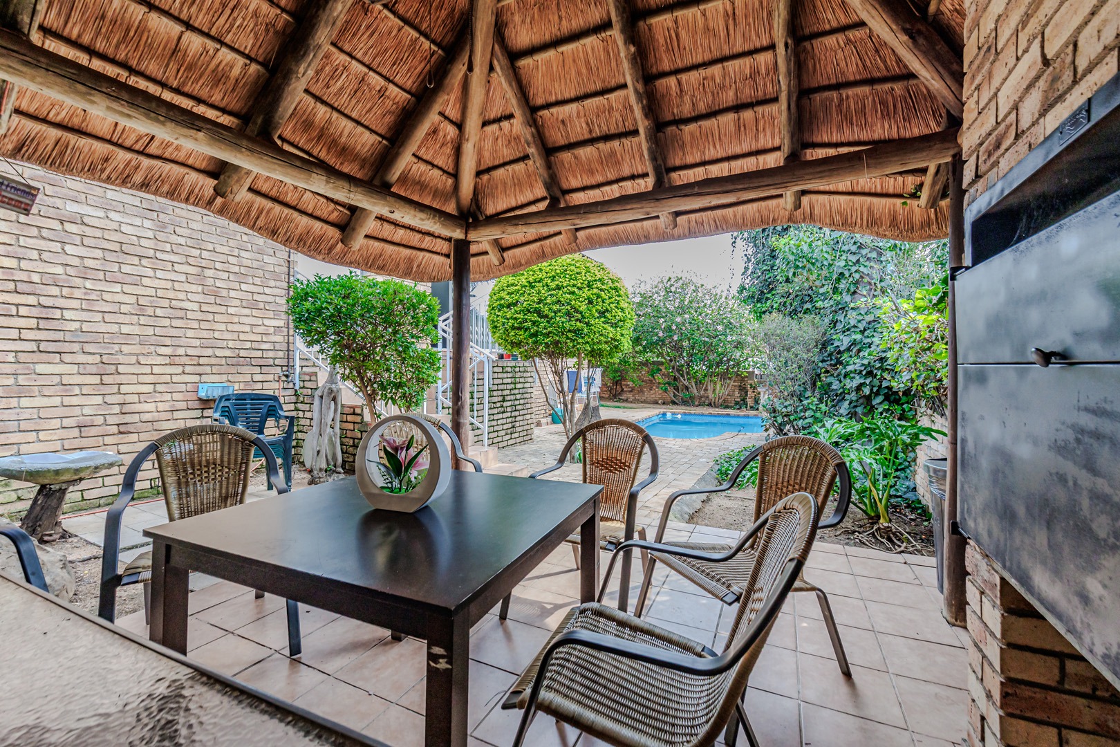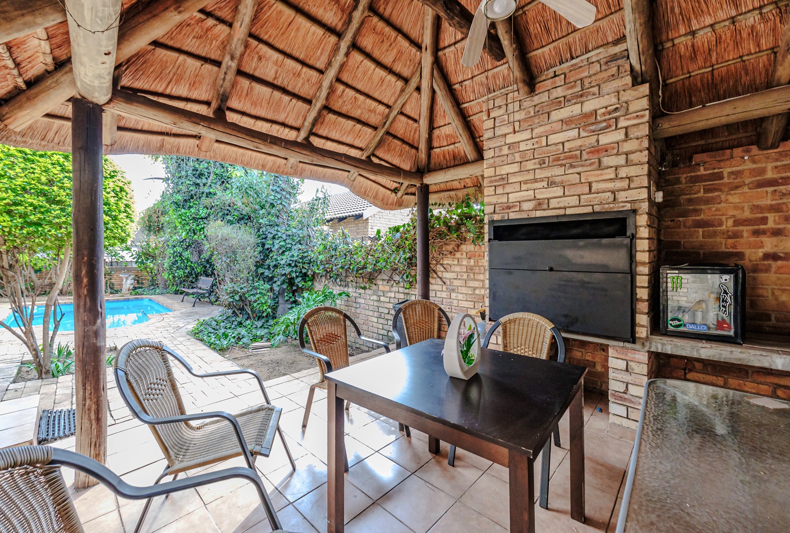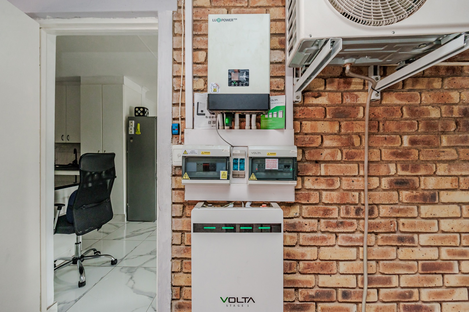 Adding to the convenience and peace of mind, this home includes a modern backup power system, featuring a Luxpower inverter and Volta battery, ensuring uninterrupted electricity supply. The property is further enhanced by a solar geyser, contributing to energy efficiency and reduced utility costs. Security is also a priority, with security gates installed on the balcony/patio access points. The property further benefits from two dedicated garages, offering secure parking and additional storage solutions.