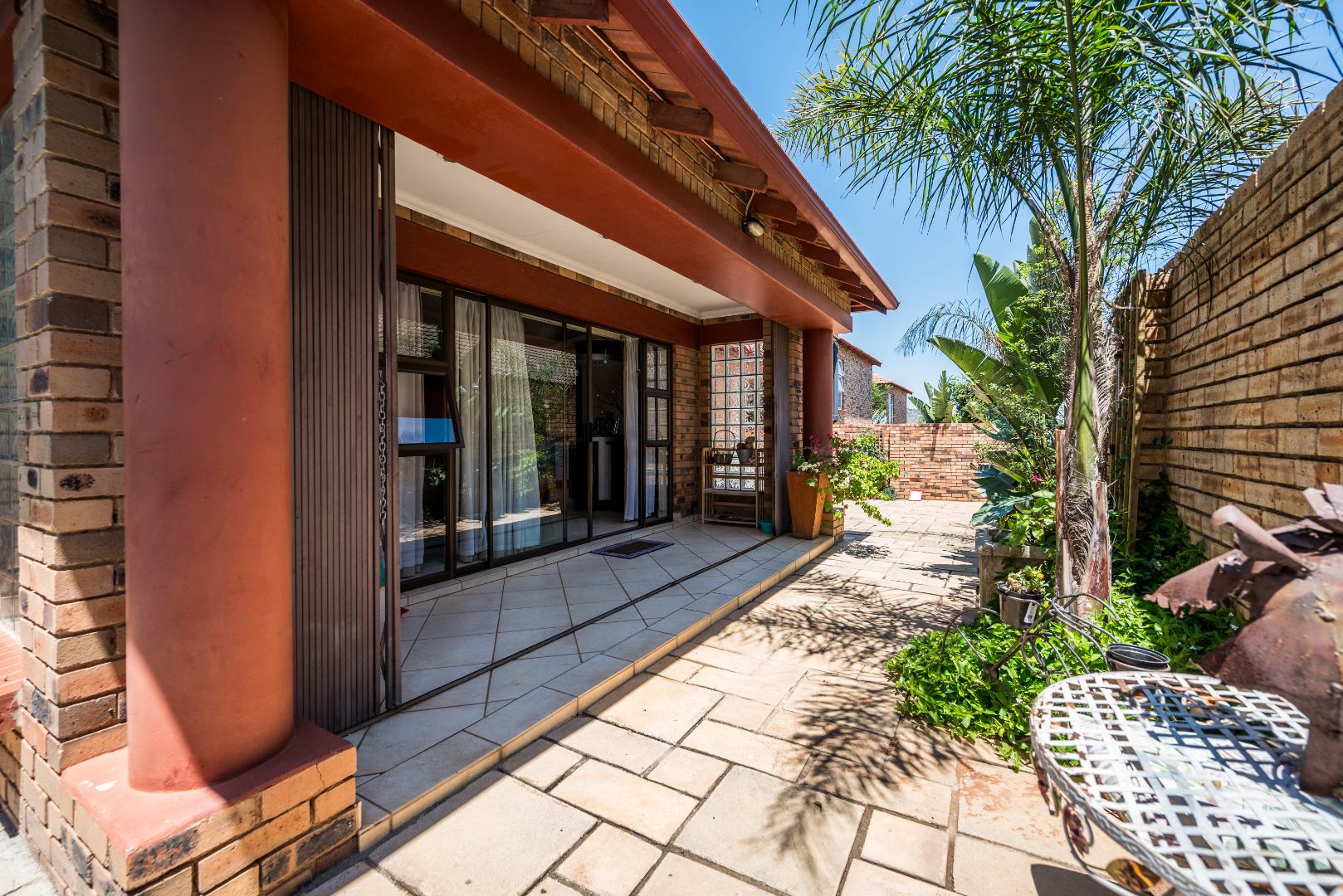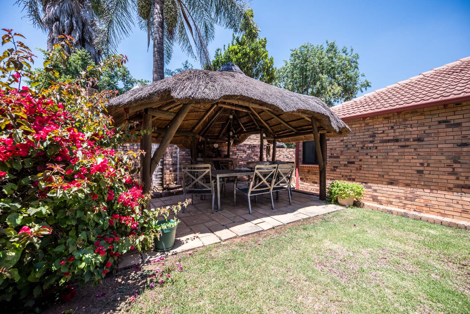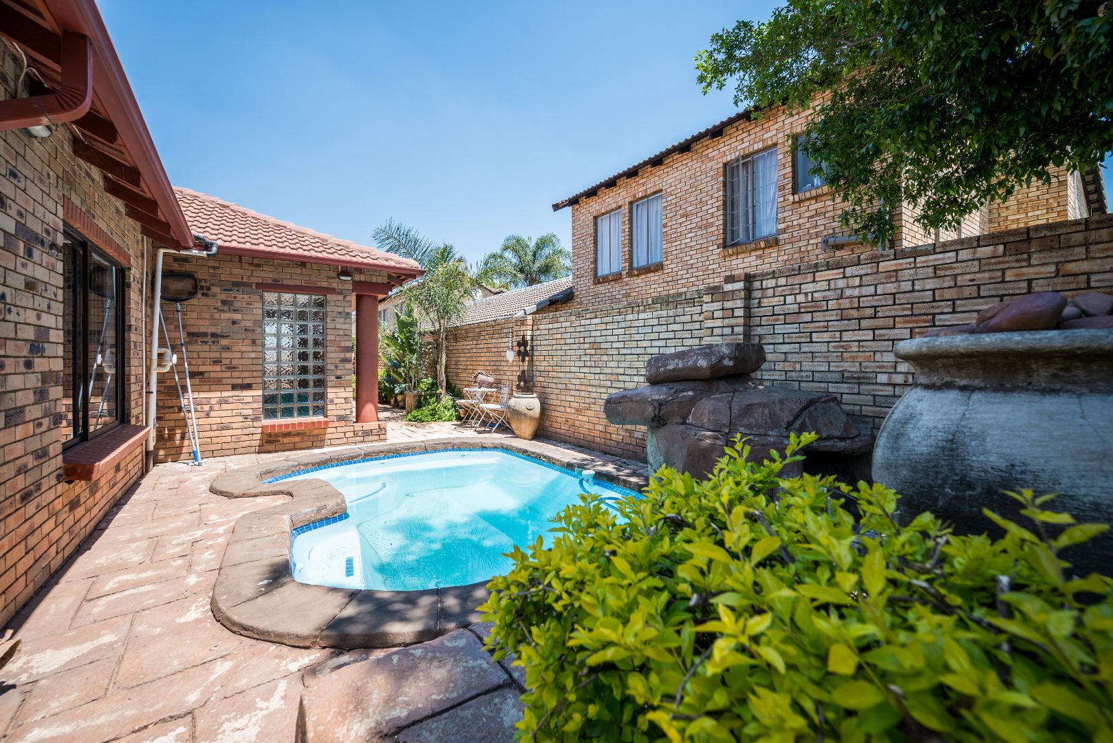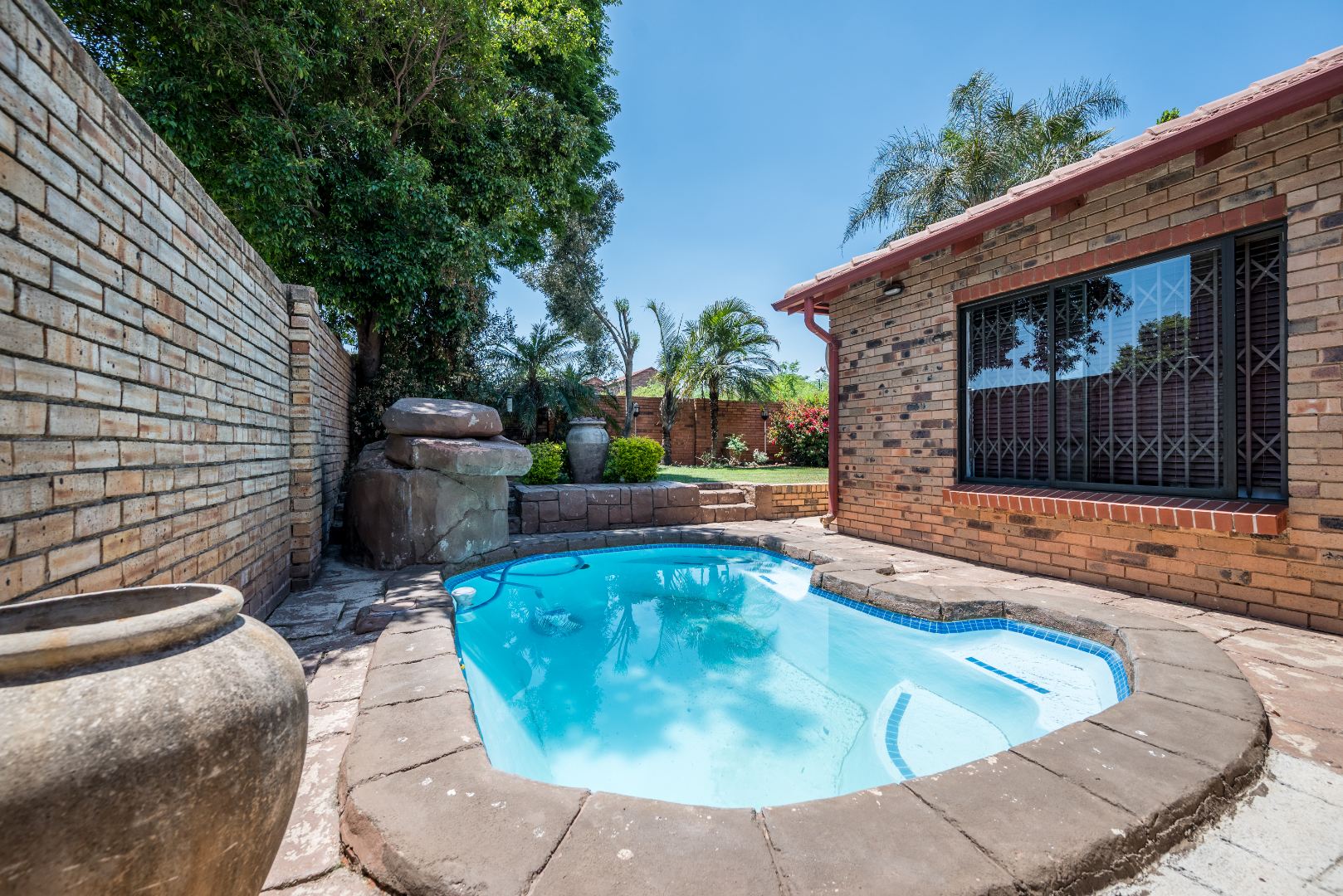 This 172 m2 meter unit with Lapa and pool set in large garden is for sale. This unit offers 2 large sunny bedrooms with build-in-cupboards. The main bedroom with aircon offers full on-suite-bathroom with bath and shower. The second bedroom with own family bathroom. There is a study. There is a gourmet kitchen with lots of cupboards and granite tops. There is a separate scullery with place for appliance and double door fridge. The living area offers dining and separate lounge area that leads onto patio with sliding doors. There is a large garden with sparkling pool and Lapa. Double automated garage and extra parking. This unit is in Security Estate with 24-hour security and play park for children. This is a must view property, phone today to view!!!!!