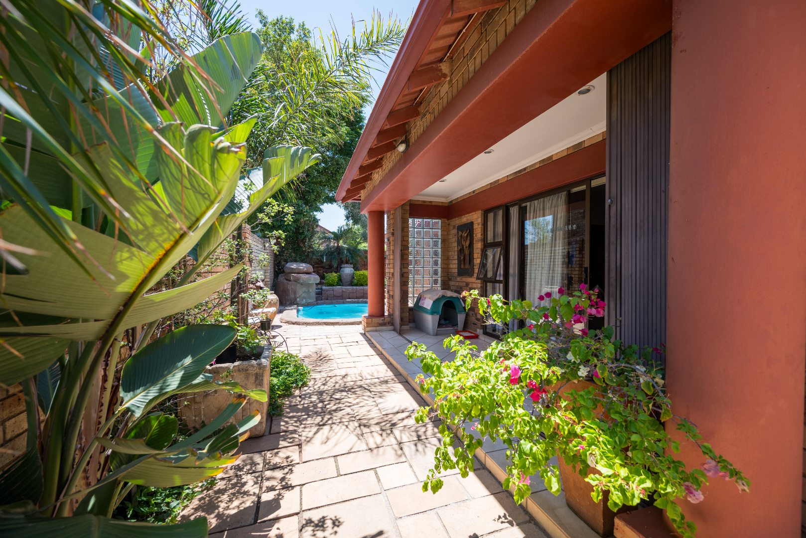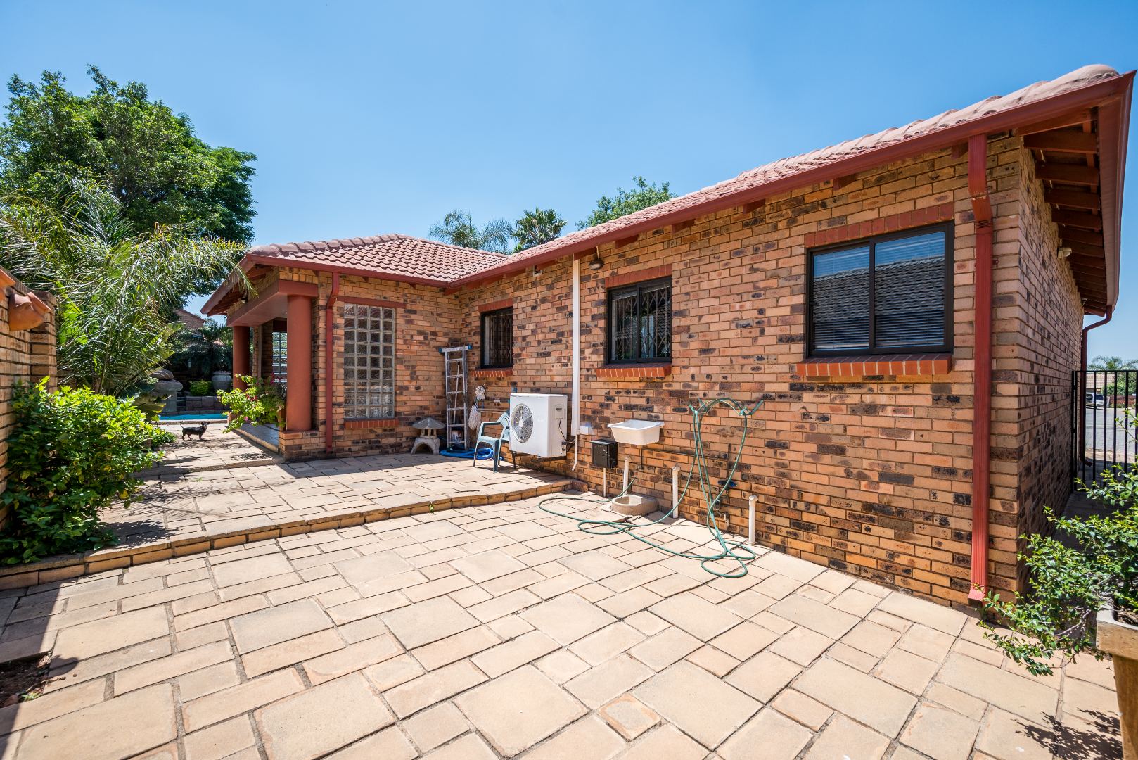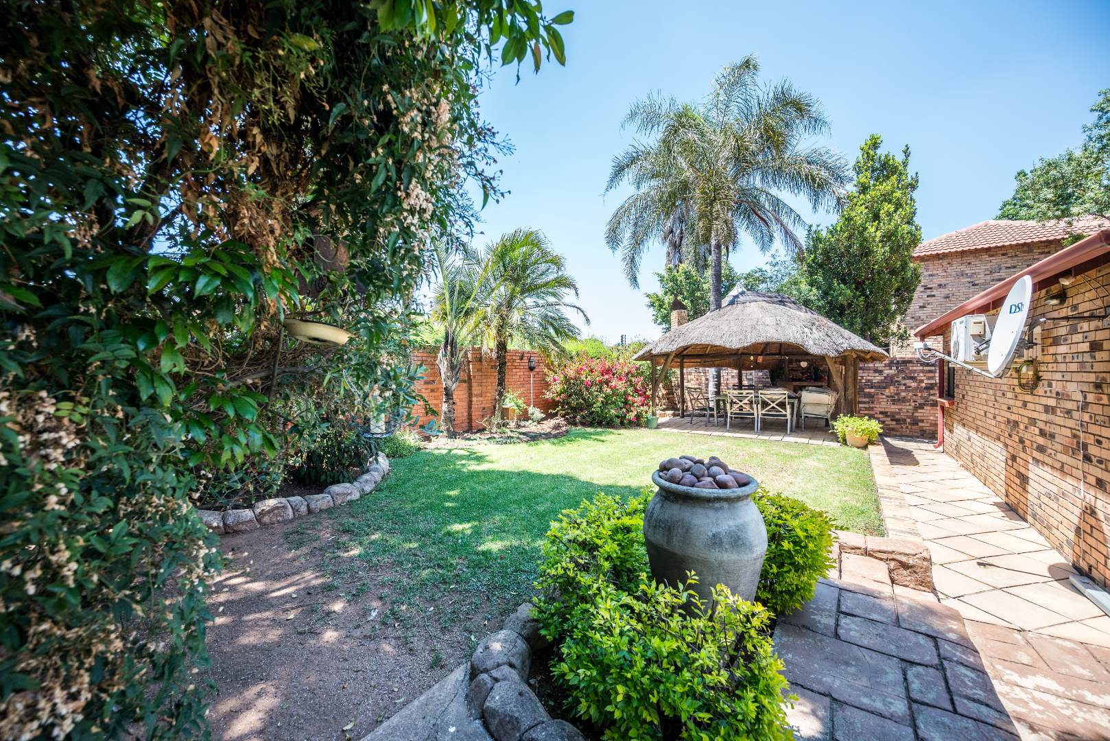 This 172 m2 meter unit with Lapa and pool set in large garden is for sale. This unit offers 2 large sunny bedrooms with build-in-cupboards. The main bedroom with aircon offers full on-suite-bathroom with bath and shower. The second bedroom with own family bathroom. There is a study. There is a gourmet kitchen with lots of cupboards and granite tops. There is a separate scullery with place for appliance and double door fridge. The living area offers dining and separate lounge area that leads onto patio with sliding doors. There is a large garden with sparkling pool and Lapa. Double automated garage and extra parking. This unit is in Security Estate with 24-hour security and play park for children. This is a must view property, phone today to view!!!!!