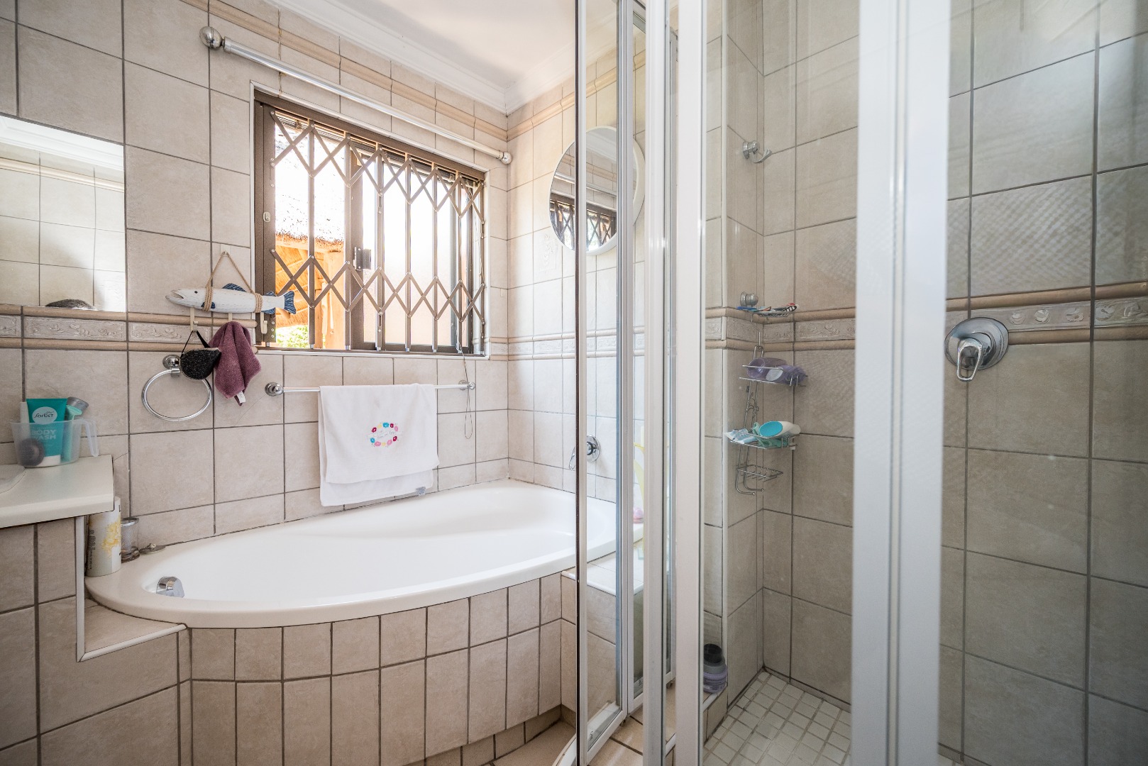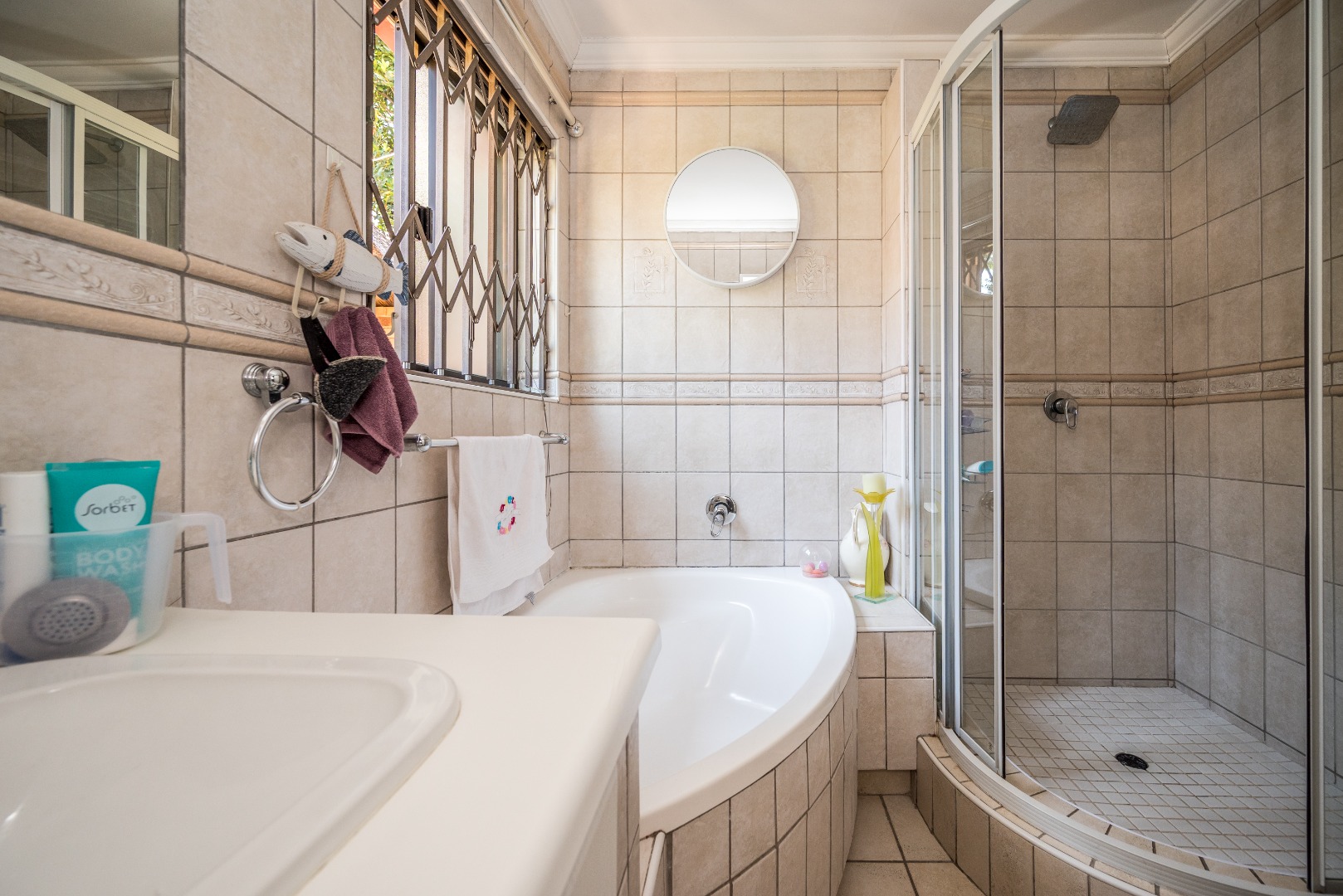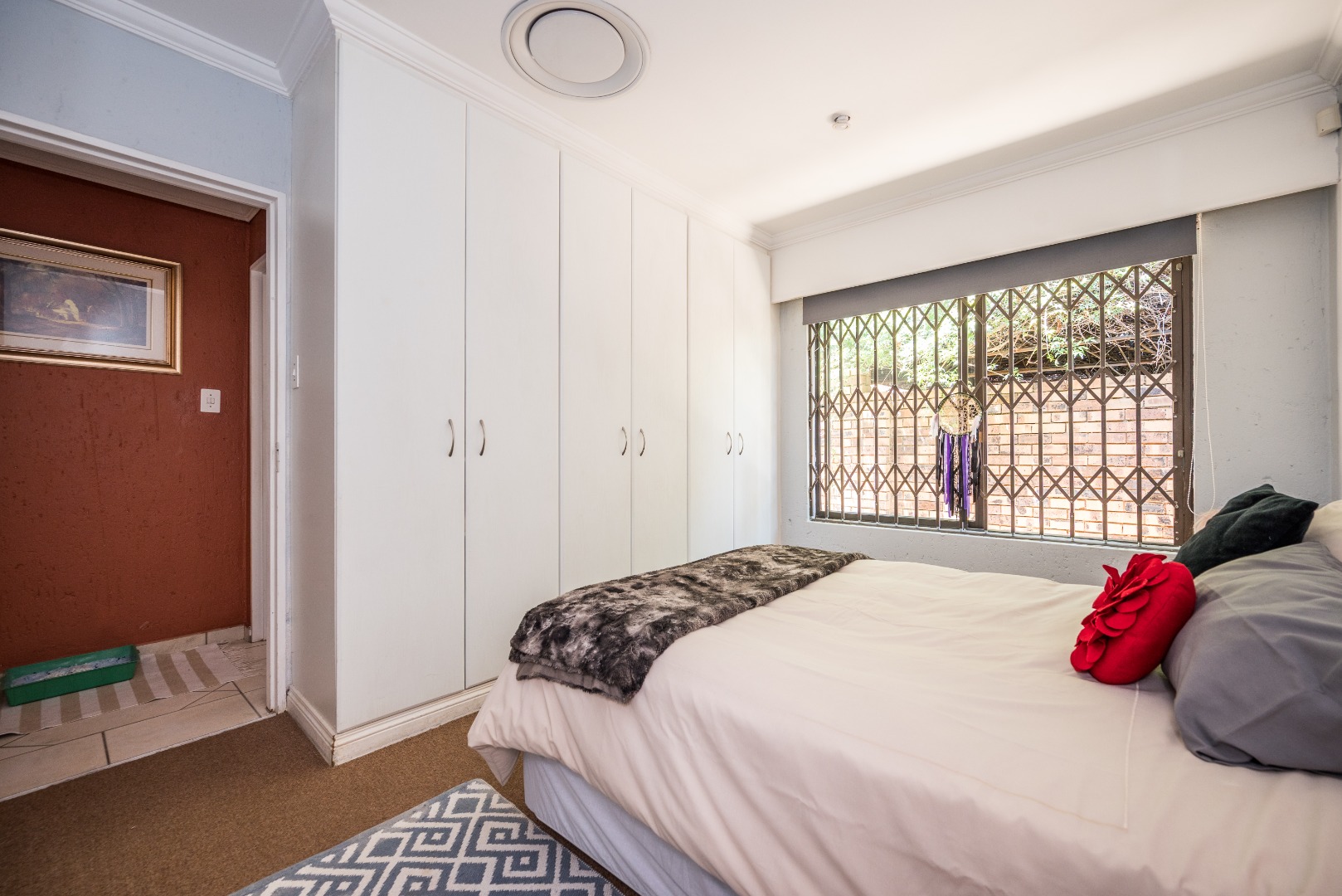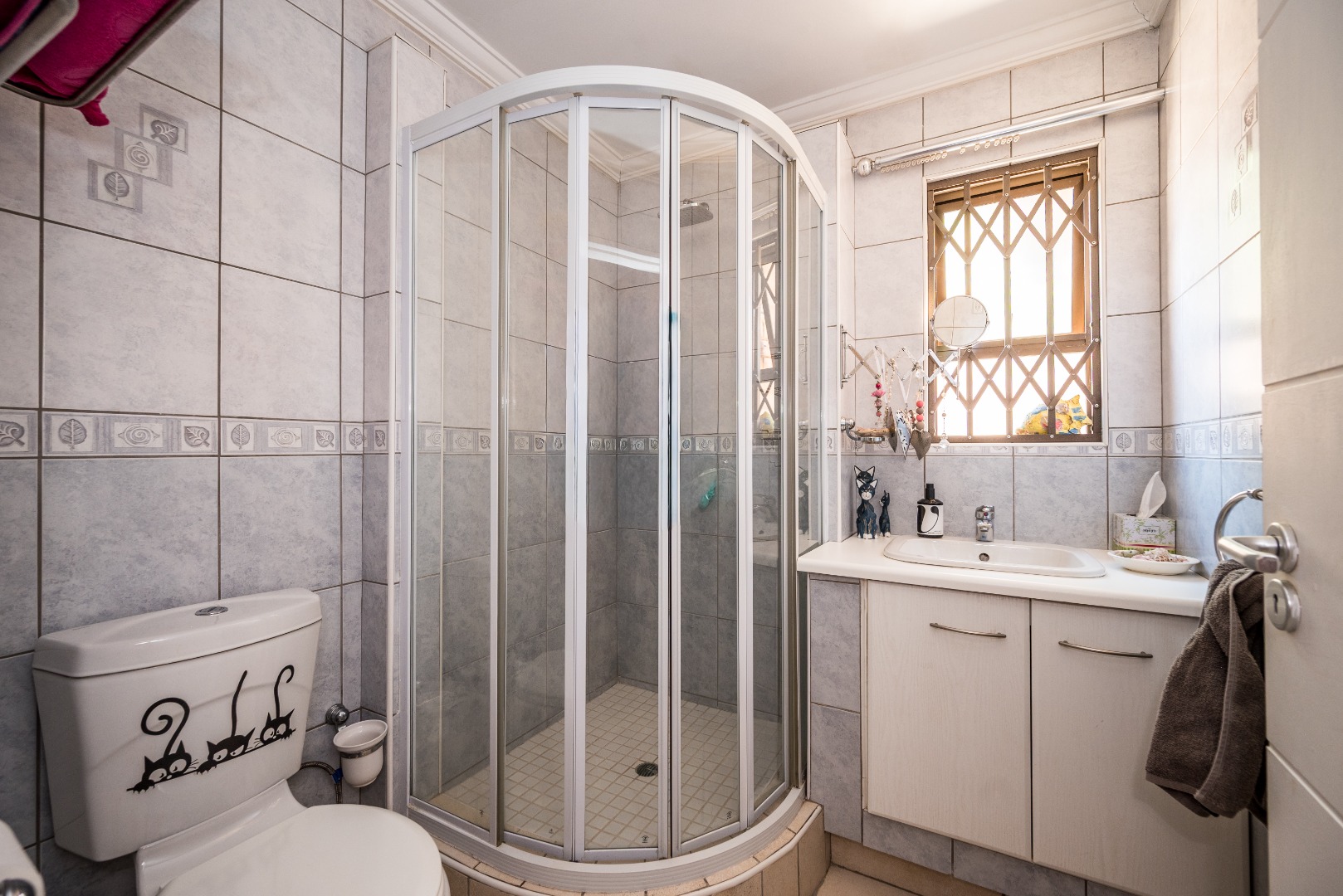 This 172 m2 meter unit with Lapa and pool set in large garden is for sale. This unit offers 2 large sunny bedrooms with build-in-cupboards. The main bedroom with aircon offers full on-suite-bathroom with bath and shower. The second bedroom with own family bathroom. There is a study. There is a gourmet kitchen with lots of cupboards and granite tops. There is a separate scullery with place for appliance and double door fridge. The living area offers dining and separate lounge area that leads onto patio with sliding doors. There is a large garden with sparkling pool and Lapa. Double automated garage and extra parking. This unit is in Security Estate with 24-hour security and play park for children. This is a must view property, phone today to view!!!!!