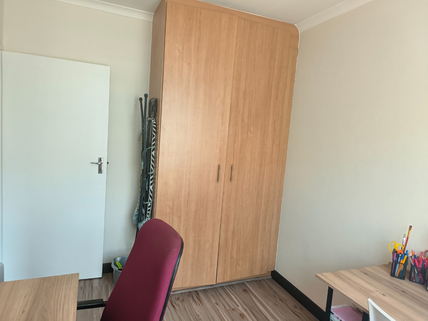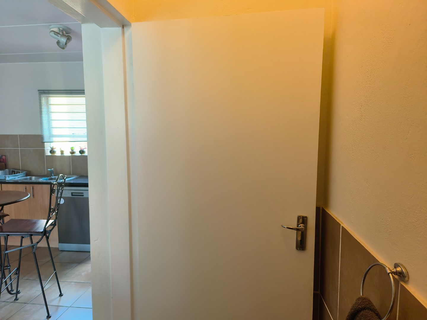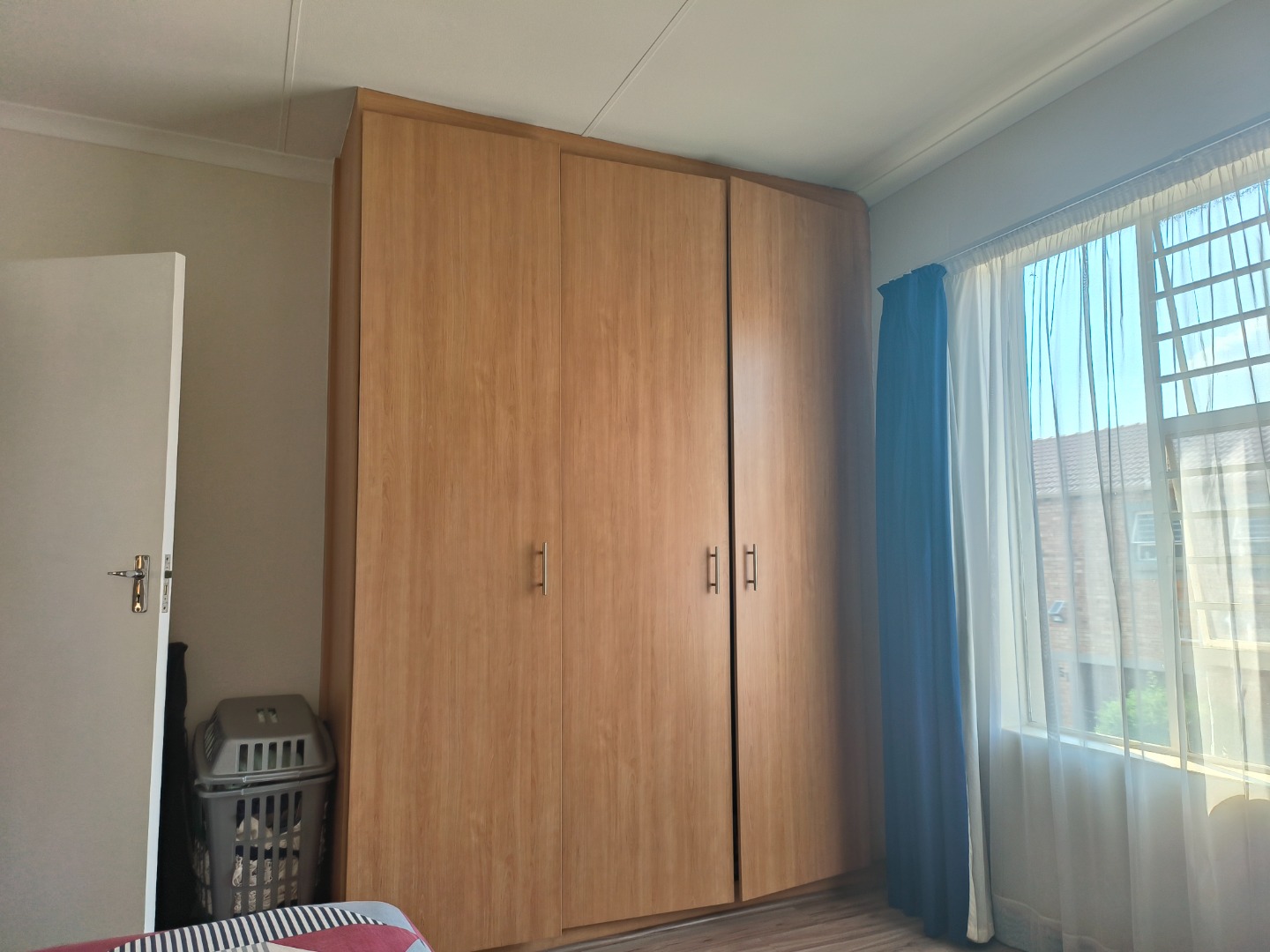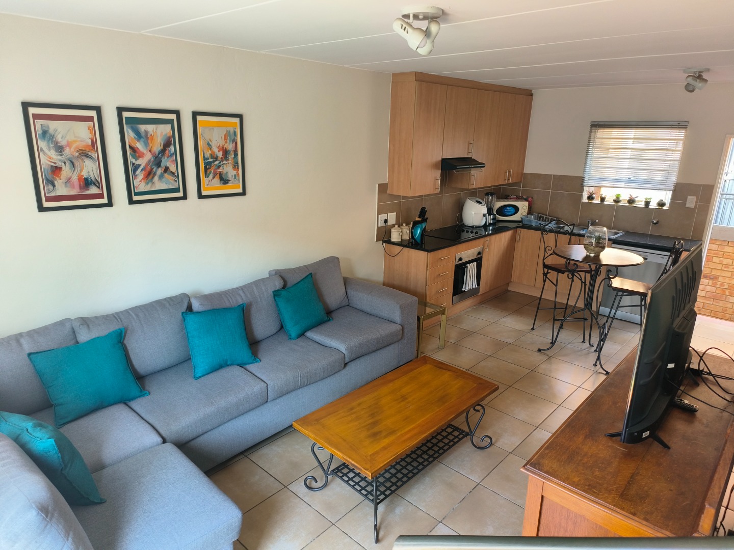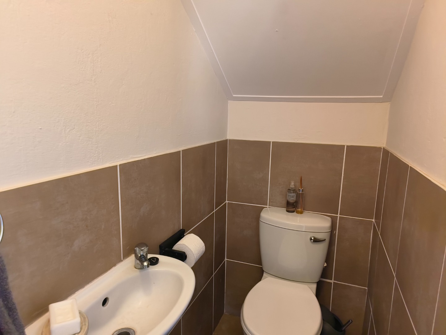 This neatly presented unit, with all bedrooms upstairs, offers complete privacy. Downstairs, find an open-plan lounge and kitchen with plenty of space to add a small dining table, the perfect eat- in kitchen. Also, boasting a pantry cupboard, space for 2 water appliances, and a double fridge-freezer combination, an extractor fan with oven and hob. The lounge is spacious and leads to the garden. A guest toilet is located downstairs.