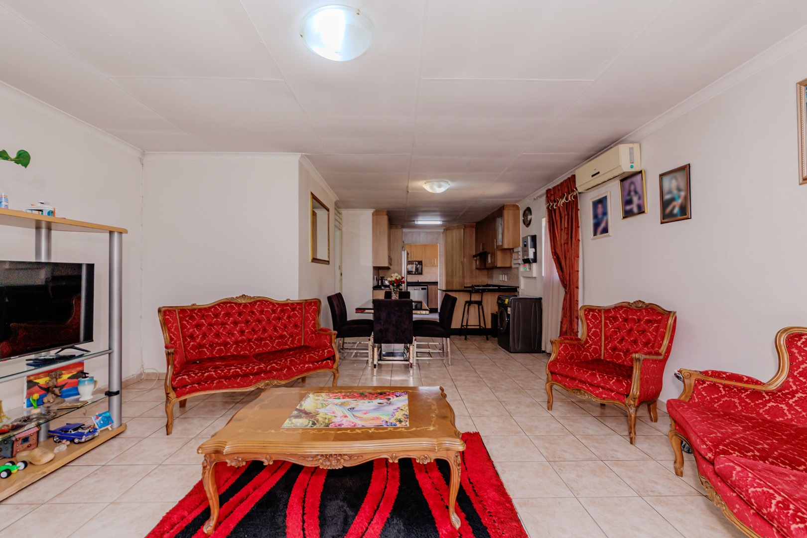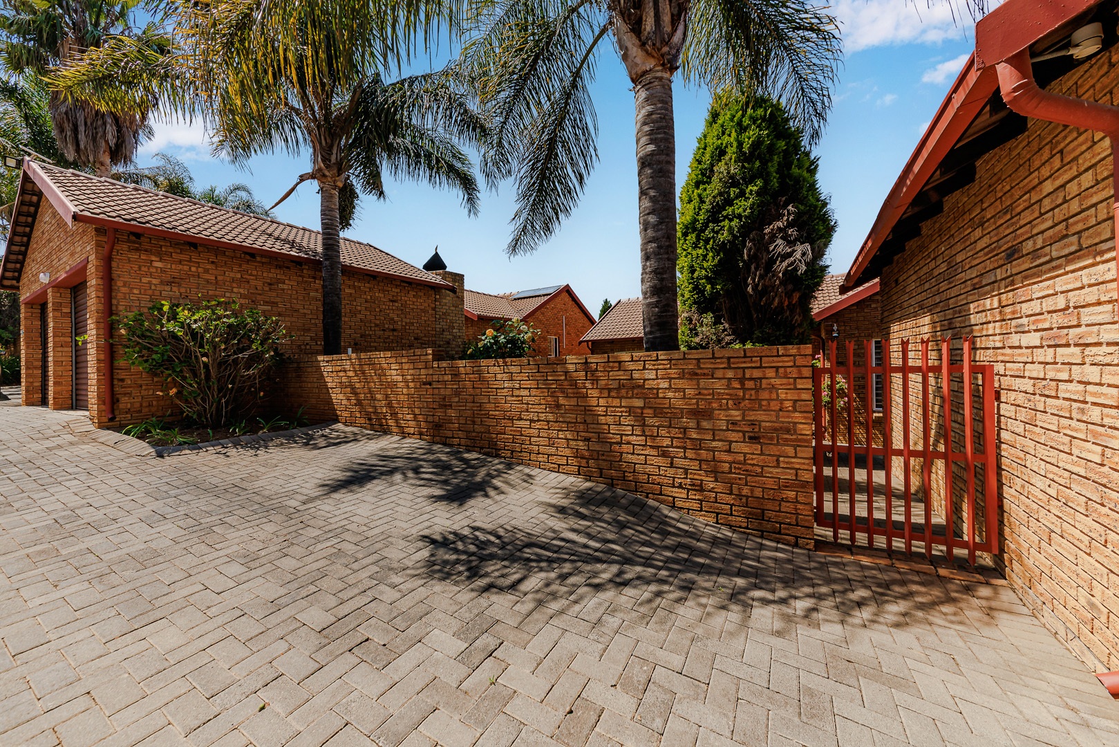 Discover this welcoming 3-bedroom, 2-bathroom residence located in the desirable suburb of Wilgeheuwel, Roodepoort. The home immediately impresses with its durable facebrick construction and neatly paved herringbone driveway leading to a spacious double garage. Mature palm trees frame the entrance, adding natural shade and enhancing the property’s kerb appeal.