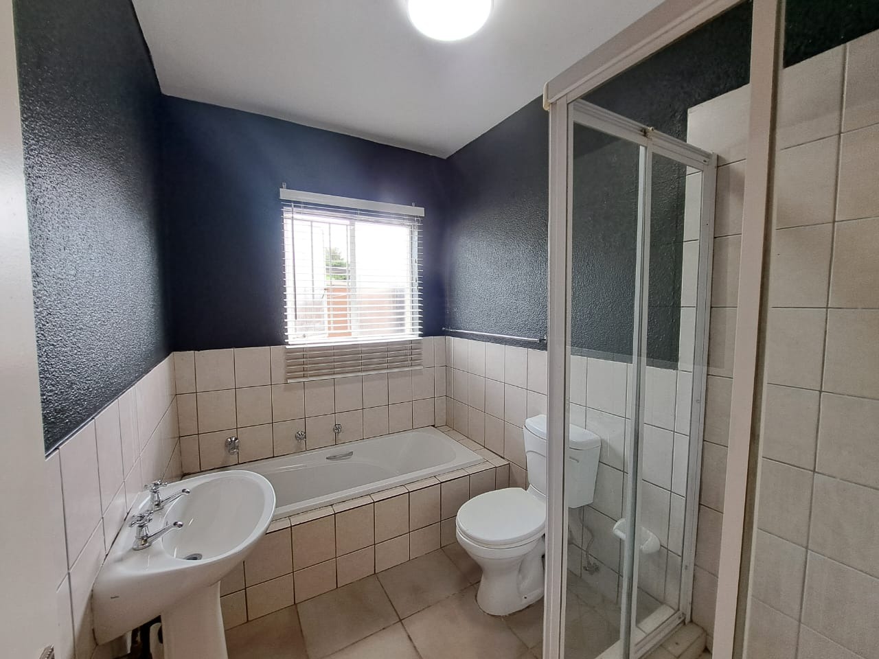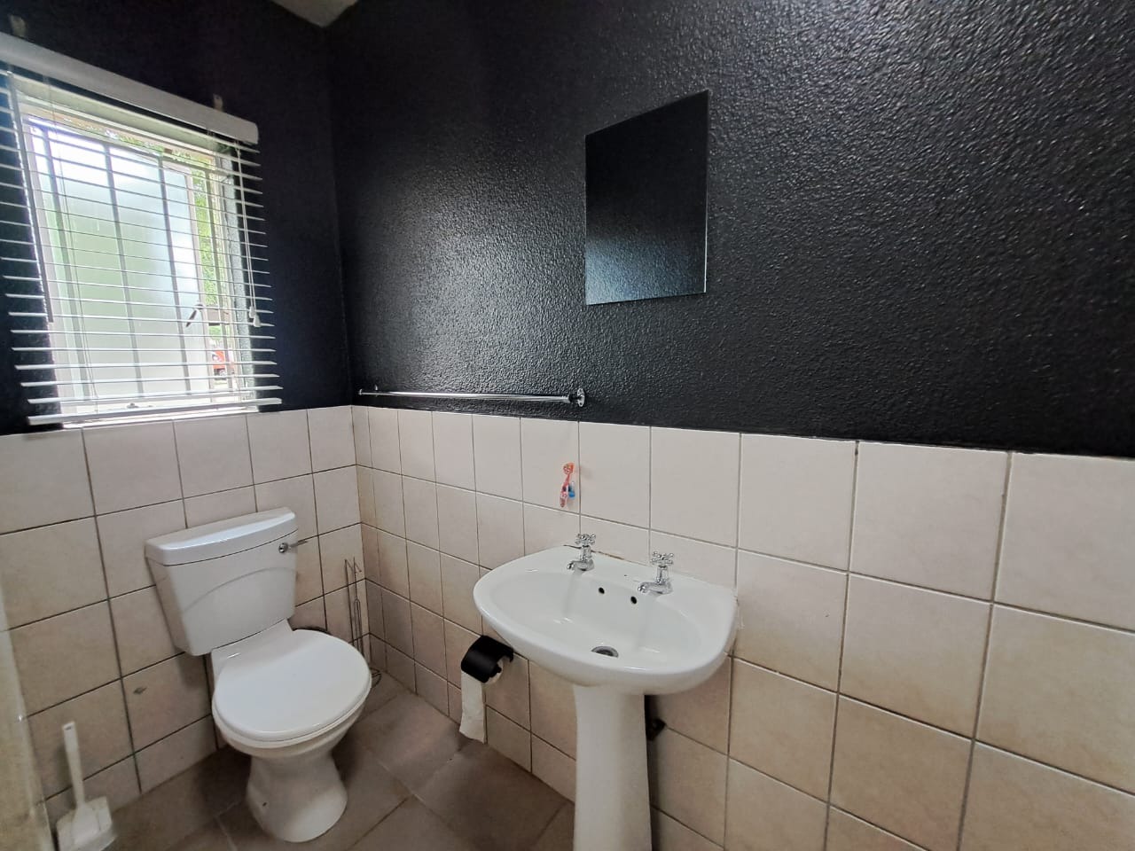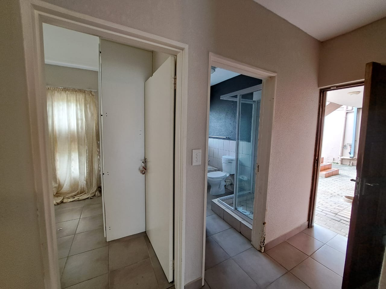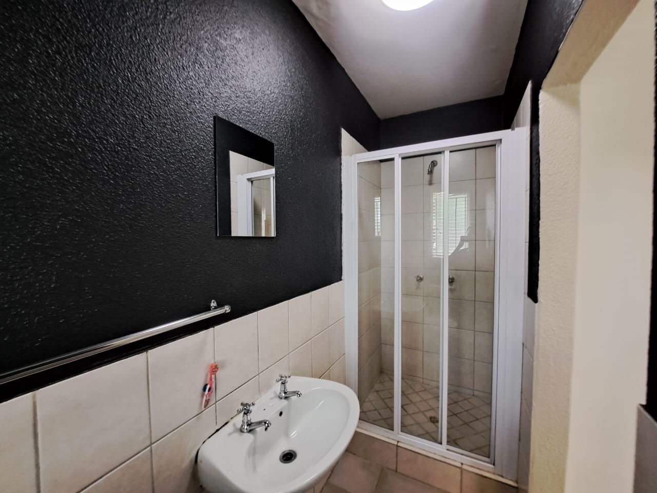 The home offers three well-proportioned bedrooms, each designed for comfort and practicality. These rooms benefit from good natural light, tiled flooring, and built-in wardrobes, providing essential storage solutions. The property includes two bathrooms, one featuring a compact shower cubicle and toilet, and another with a private sink/vanity area, ensuring convenience for residents.