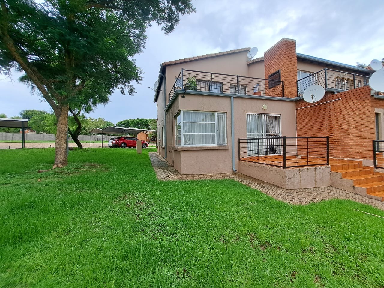 Discover this inviting multi-story residence located in the vibrant Willowbrook suburb of Roodepoort. This property presents a practical and comfortable living environment, featuring a light-colored exterior with subtle exposed brick accents and a welcoming tiled patio/balcony, perfect for outdoor relaxation. Paved pathways and surrounding green spaces with mature trees enhance the kerb appeal, offering a pleasant first impression.